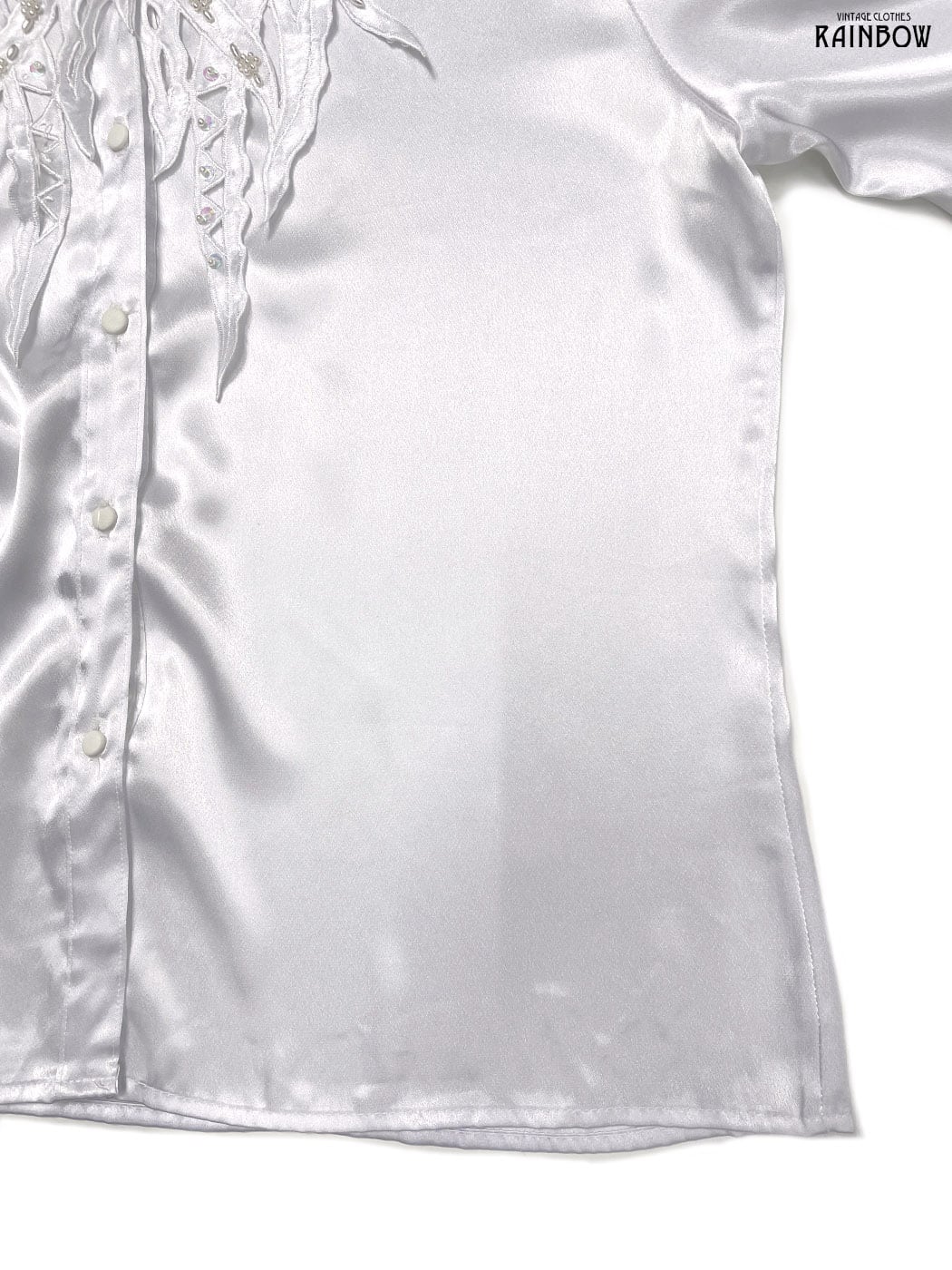 #ブラウス #bブラウス #ロングスリーブ #白 #無地 #スパンコール #パール #スカラップ #刺繍 #ビジュー #前開き #ガーリー #ヴィンテージ #刺繍シャツ