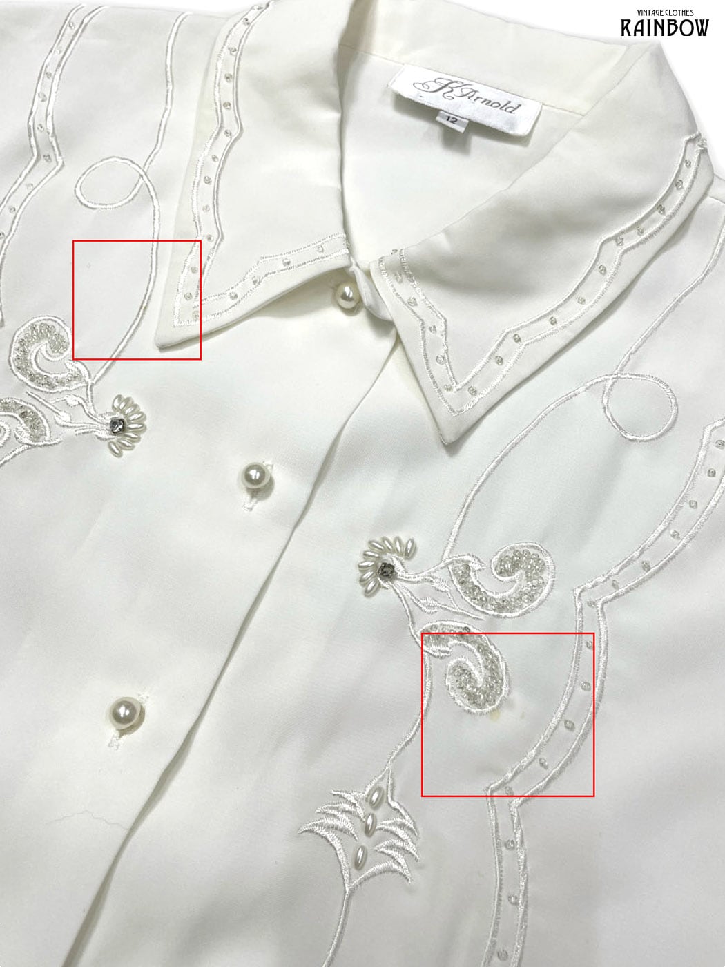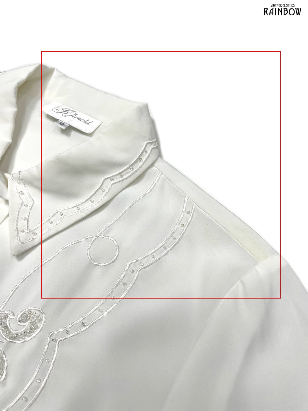 古着 K Arnold ビーズ パール 刺繍 ビジュー 前開き 無地 長袖 ブラウス 白 (ttu2510263)