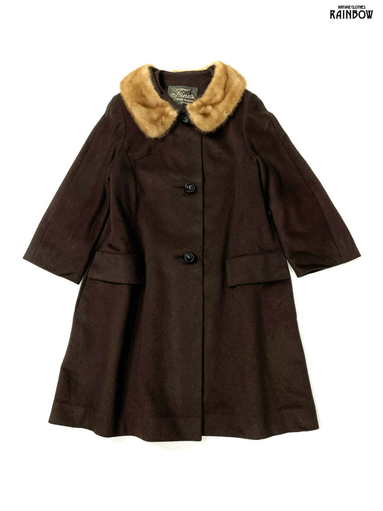 #アウター #ヘビーコート #ロングスリーブ #茶 #無地 #ファー #シンプル #ウール #ファー付きアウター