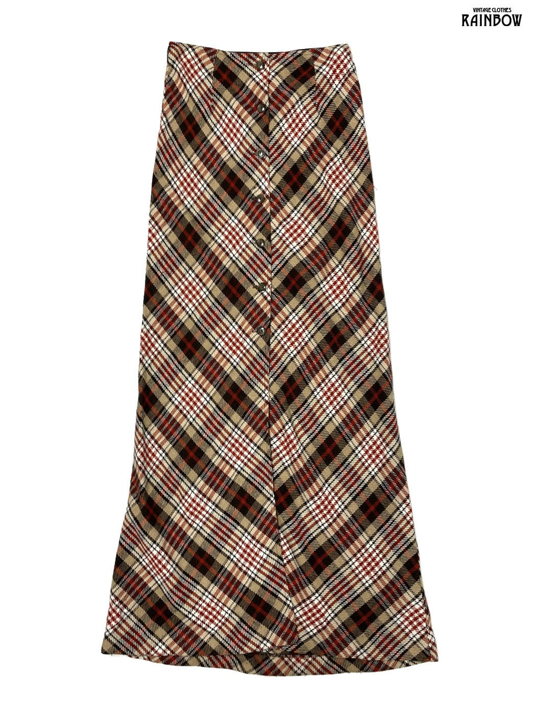 #スカート #ロング丈 #タイト #オレンジ #チェック柄 #ウール #秋冬チェック柄スカート