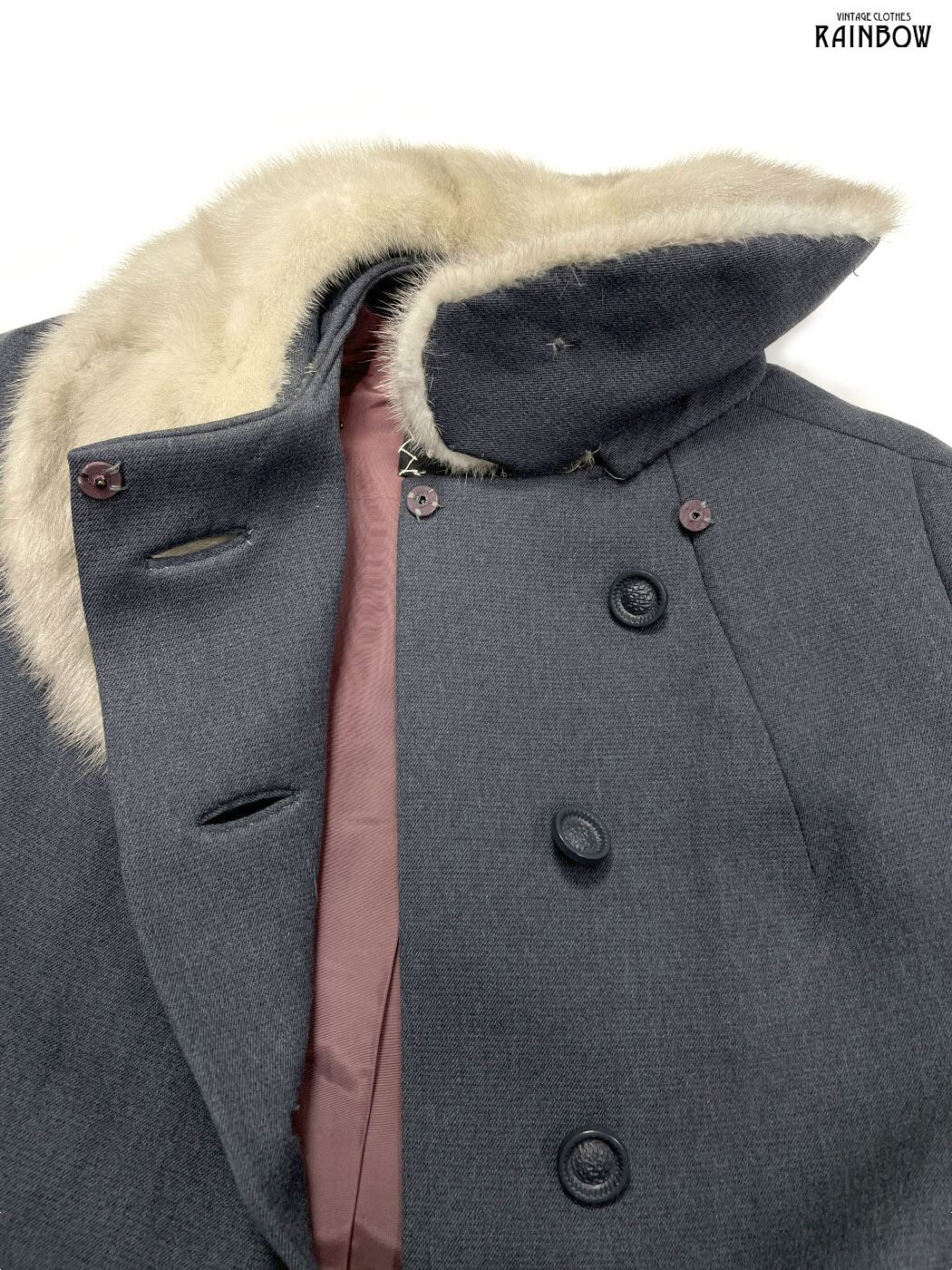 #アウター #ヘビーコート #ロングスリーブ #グレー #無地 #ファー #前開き #ユニオンメイド #ガーリー #ヴィンテージ #コットン #ウール #ファー付きアウター