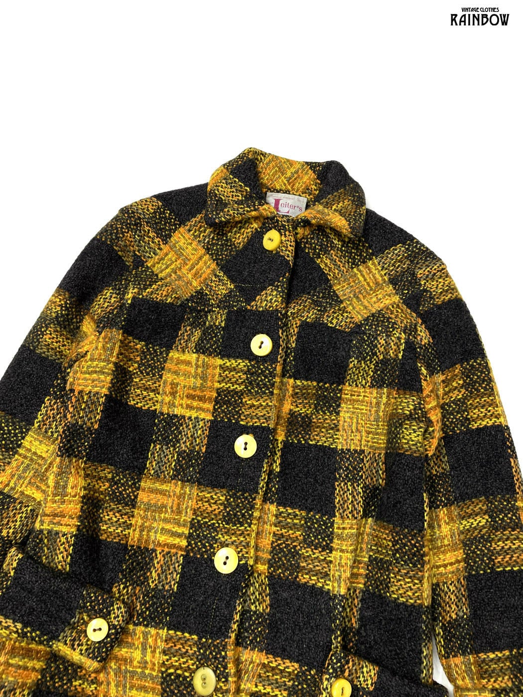 #アウター #ヘビーコート #ロングスリーブ #黒 #黄 #チェック柄 #ツイード #ウール #ウールコート
