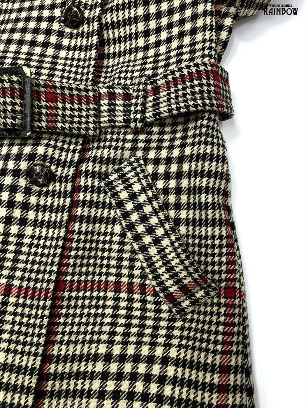 #アウター #ヘビーコート #ロングスリーブ #グレー #チェック柄 #ベルト付き #ピュアウール #ウールコート
