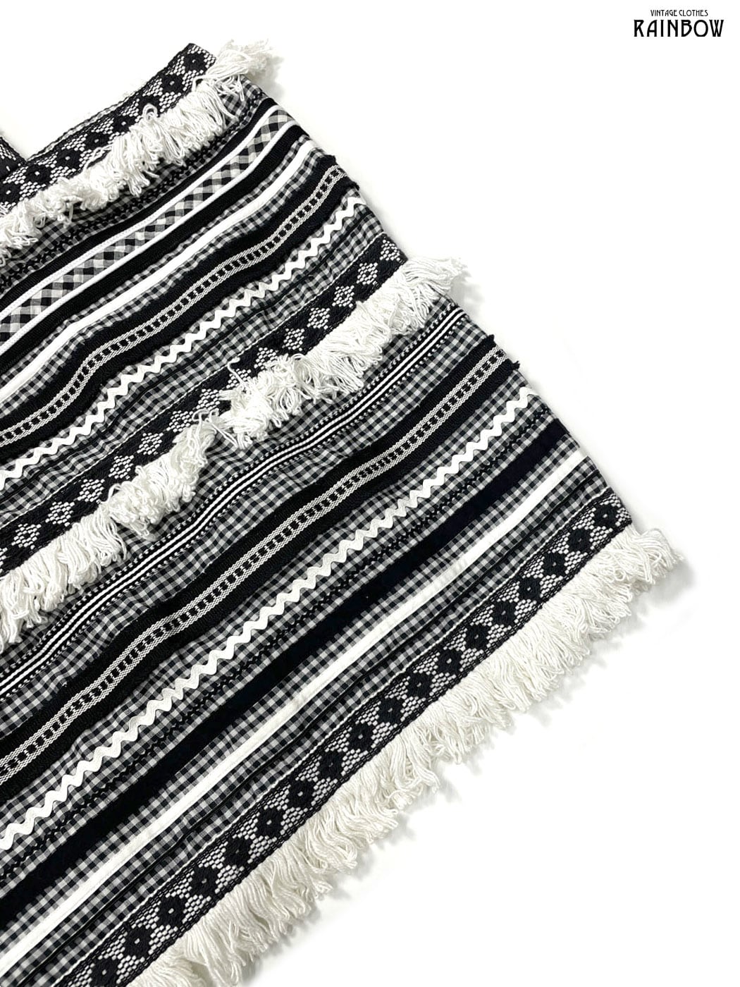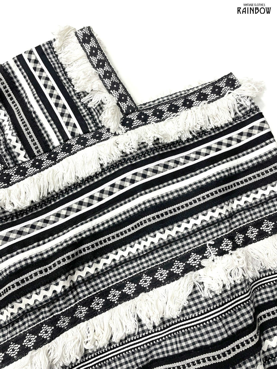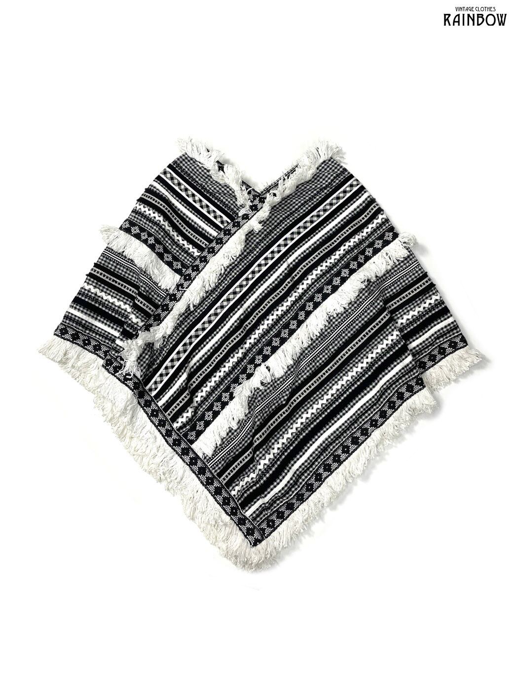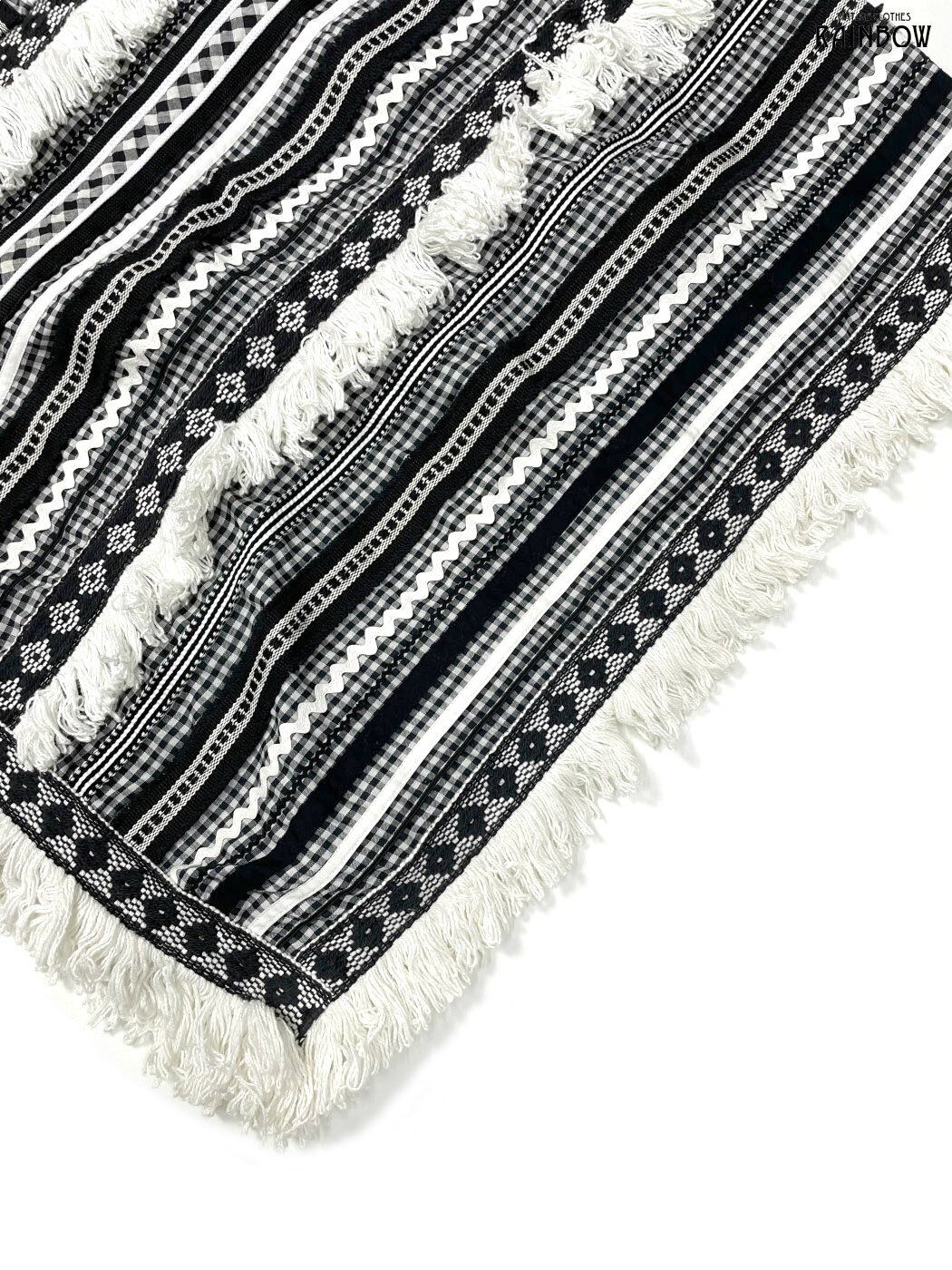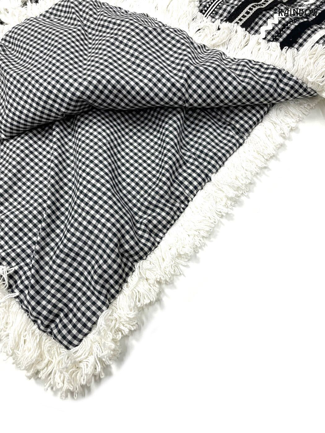 #アウター #羽織り #黒 #白 #チェック柄 #刺繍 #フリンジ #クラシック #コットン #ポンチョ・ケープ
