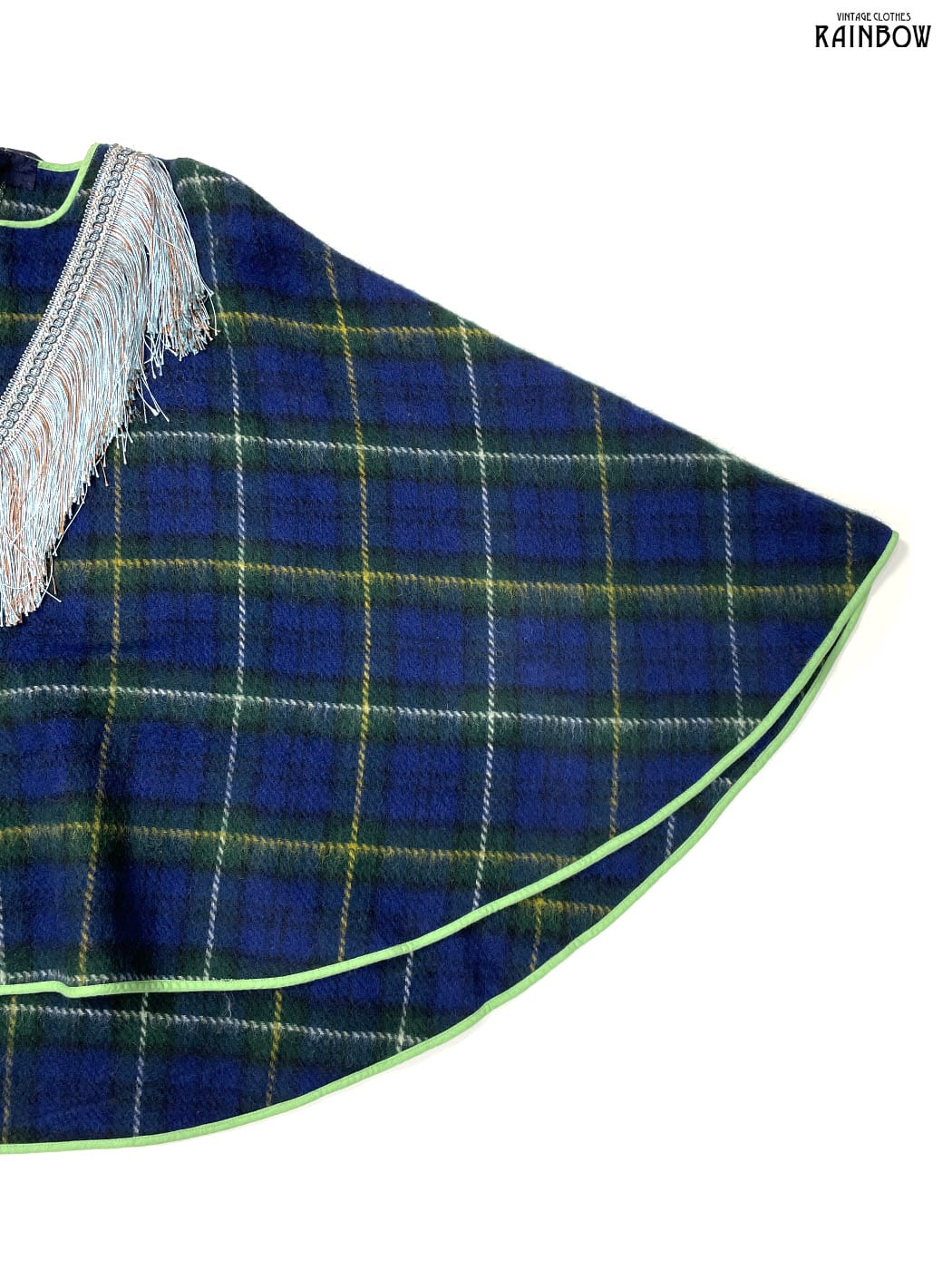 #アウター #羽織り #ロングスリーブ #青 #緑 #チェック柄 #刺繍 #フリンジ #クラシック #ウール #ポンチョ・ケープ