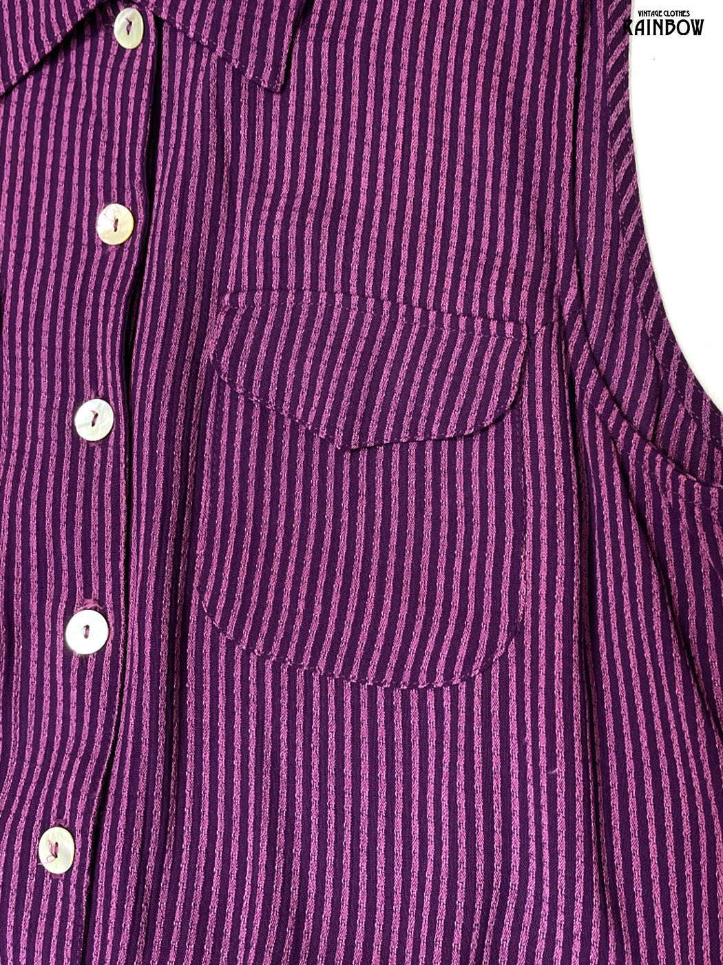古着 impressions アメリカ製 シェルボタン 前開き スリット ストライプ柄 ロング丈 ノースリーブ ワンピース 紫 (otu2511005)
