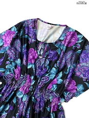 #ワンピース #ハーフスリーブ #ロング丈 #紫 #花柄 #総柄 #アメリカ製 #リボン #クラシック #半袖花柄ワンピース