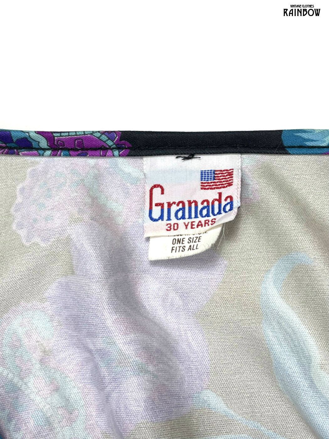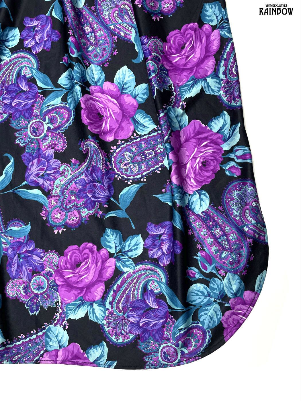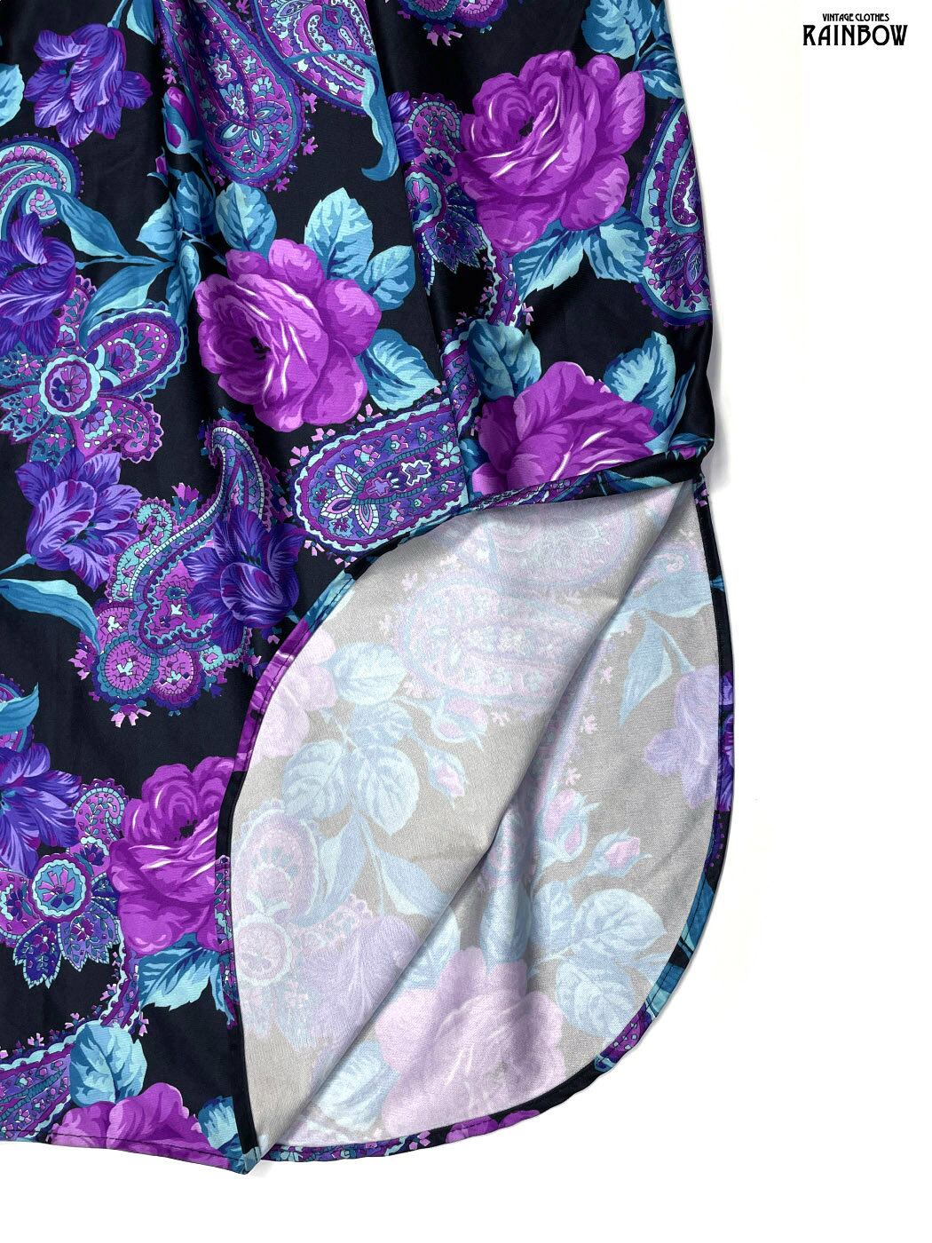 古着 Granada アメリカ製 リボン 花柄 総柄 ロング丈 半袖 ワンピース 紫 黒 (otu2511006)