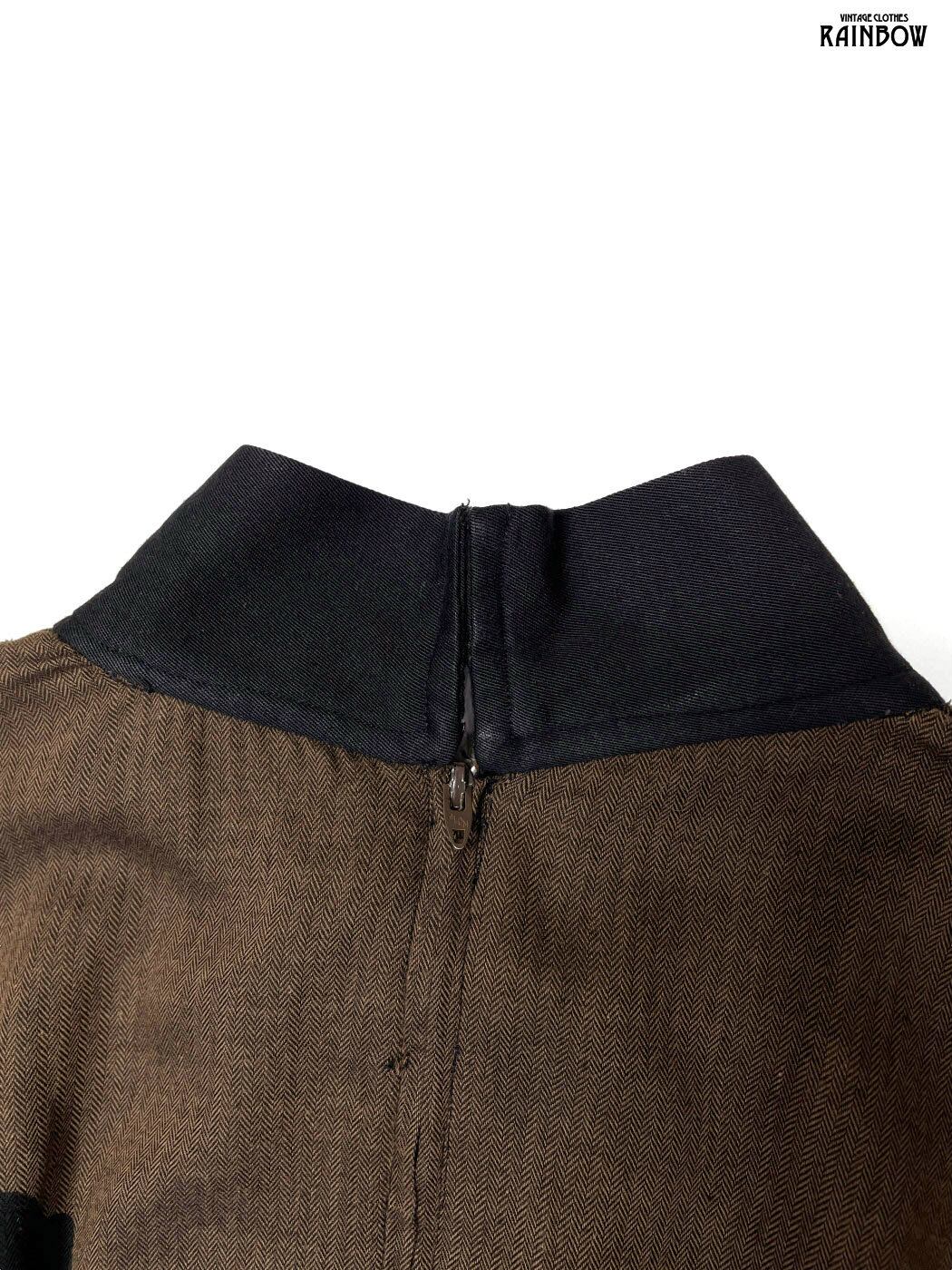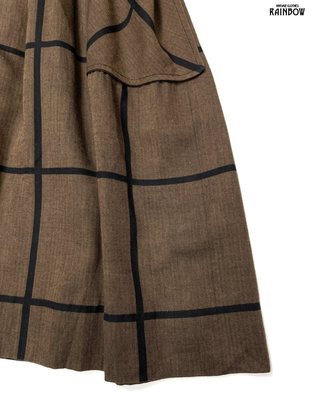 古着 Donna Morgan ドナモーガン TALONジップ ハイネック 花柄 チェック柄 ロング丈 長袖 ワンピース 茶 (otu2511012)