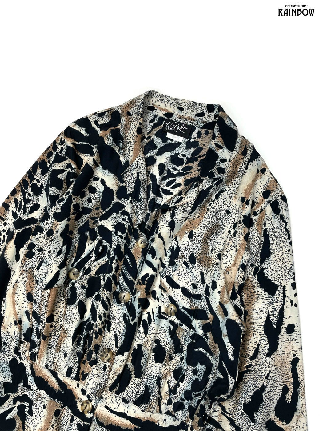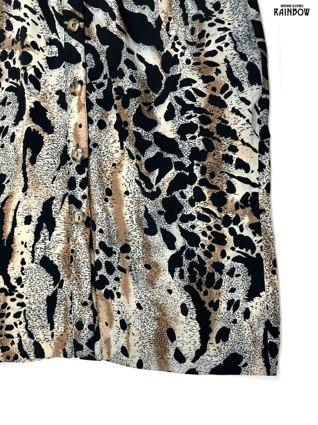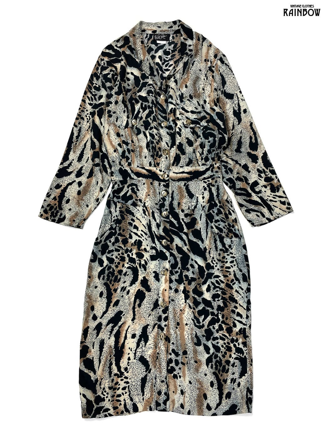#ワンピース #ロングスリーブ #ロング丈 #ウエスト切り替え #茶 #グレー #総柄 #レオパード柄 #前開き #クラシック #レーヨン #長袖総柄ワンピース