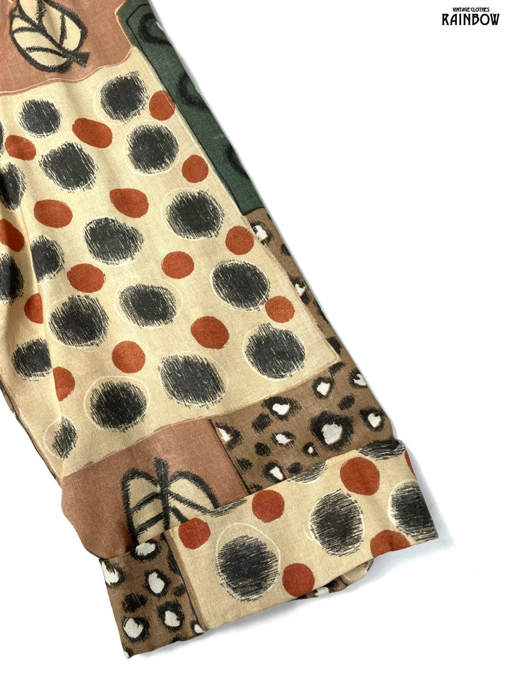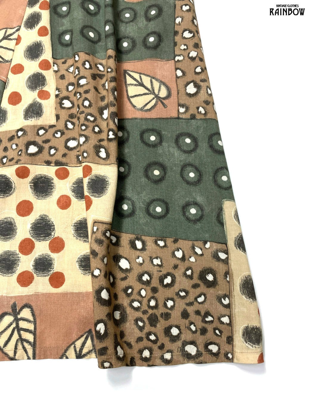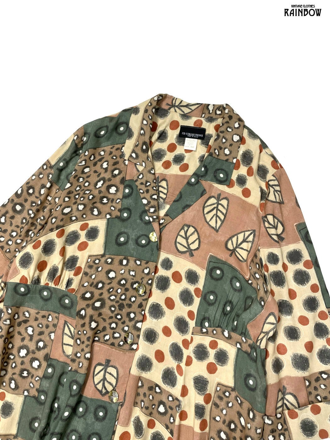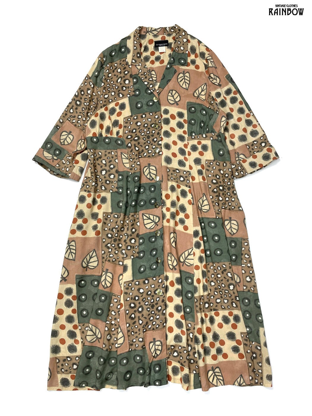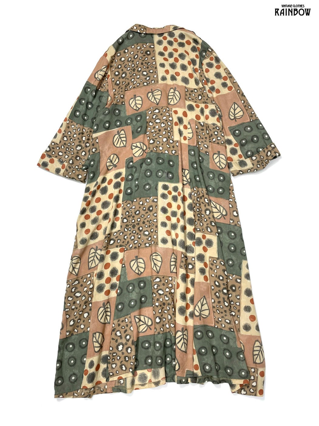 #ワンピース #ロングスリーブ #ロング丈 #茶 #総柄 #アメリカ製 #前開き #レーヨン #長袖総柄ワンピース