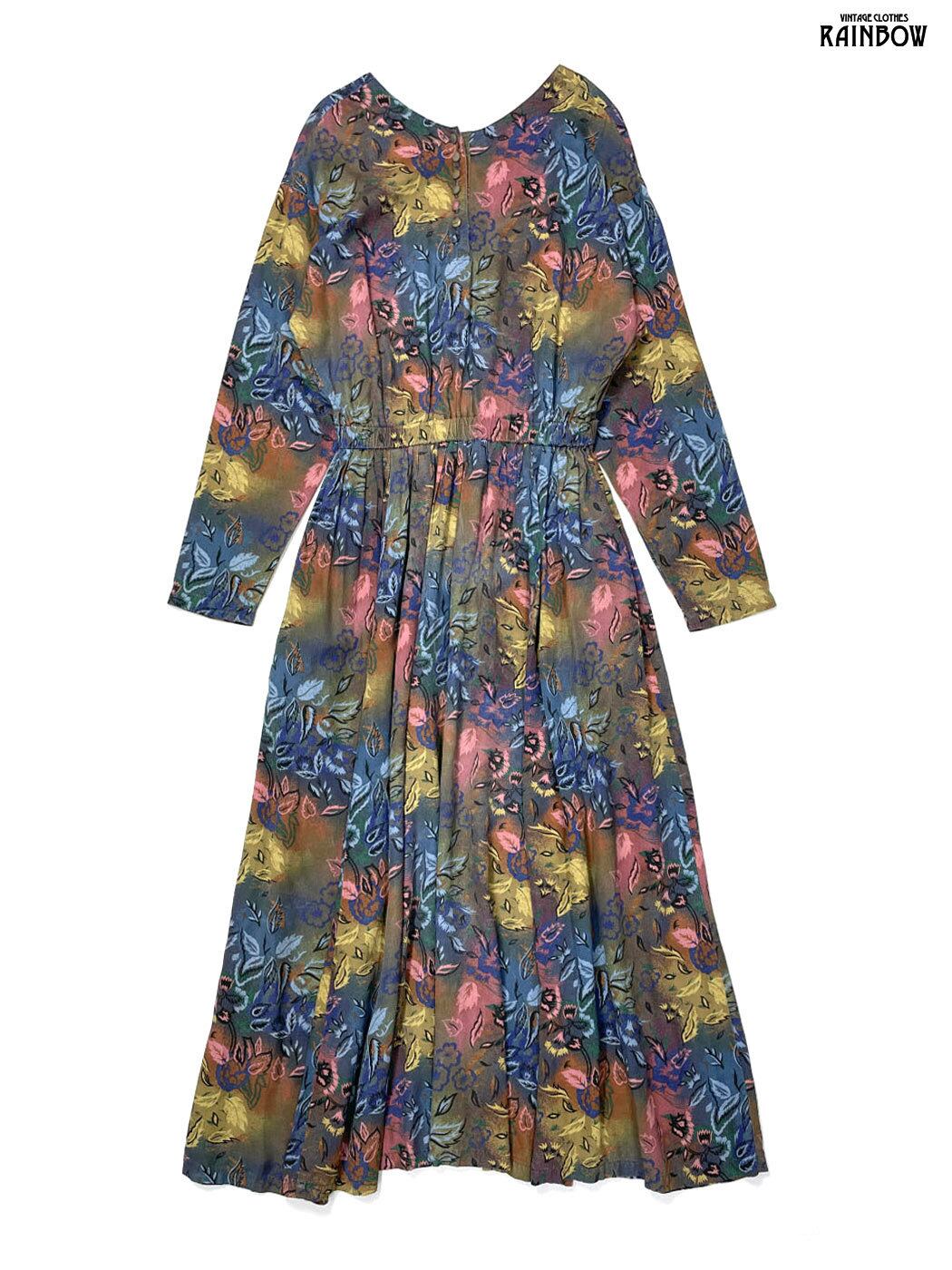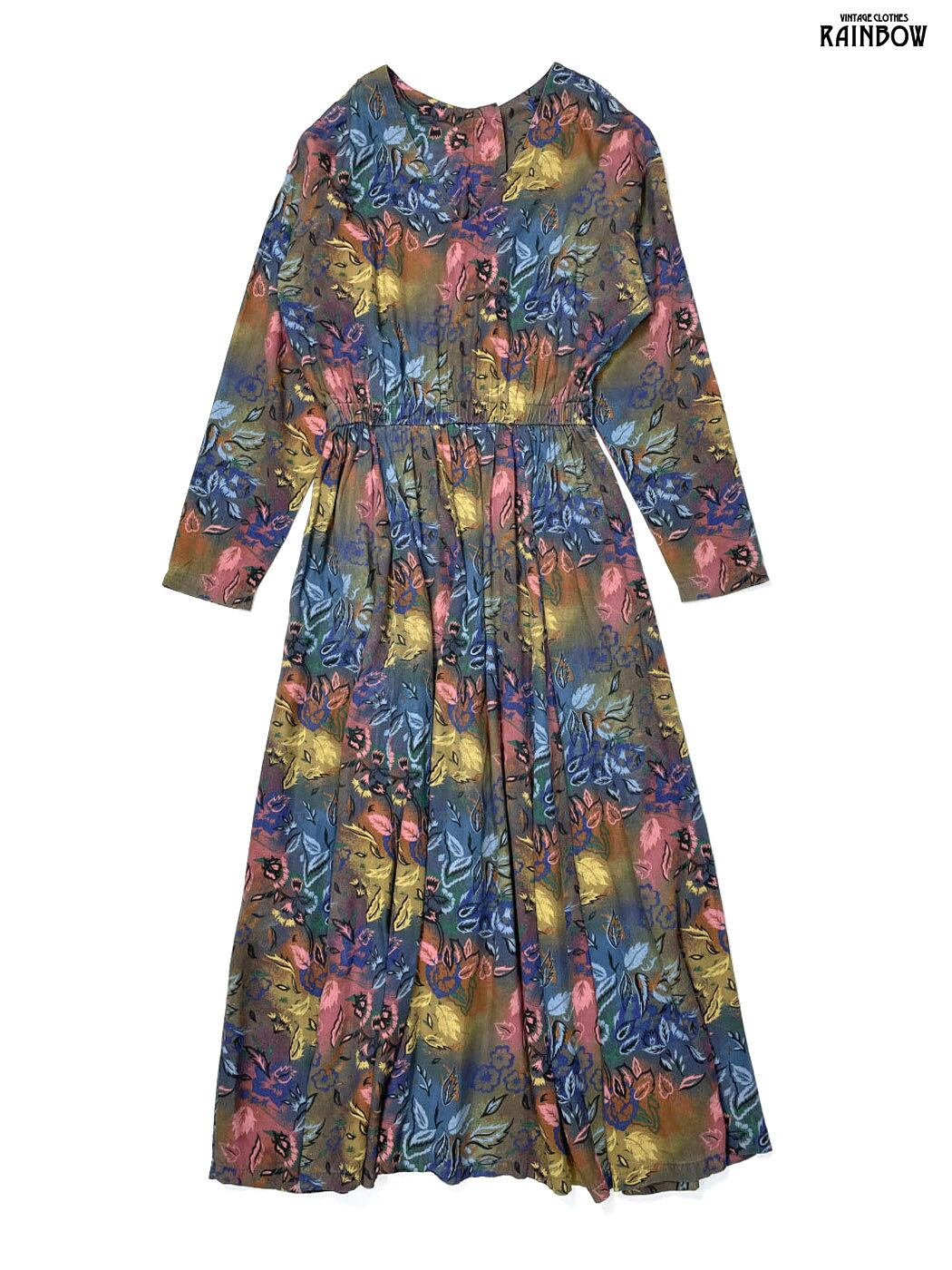#ワンピース #ロングスリーブ #ロング丈 #カーキ #花柄 #アメリカ製 #レーヨン #長袖花柄ワンピース