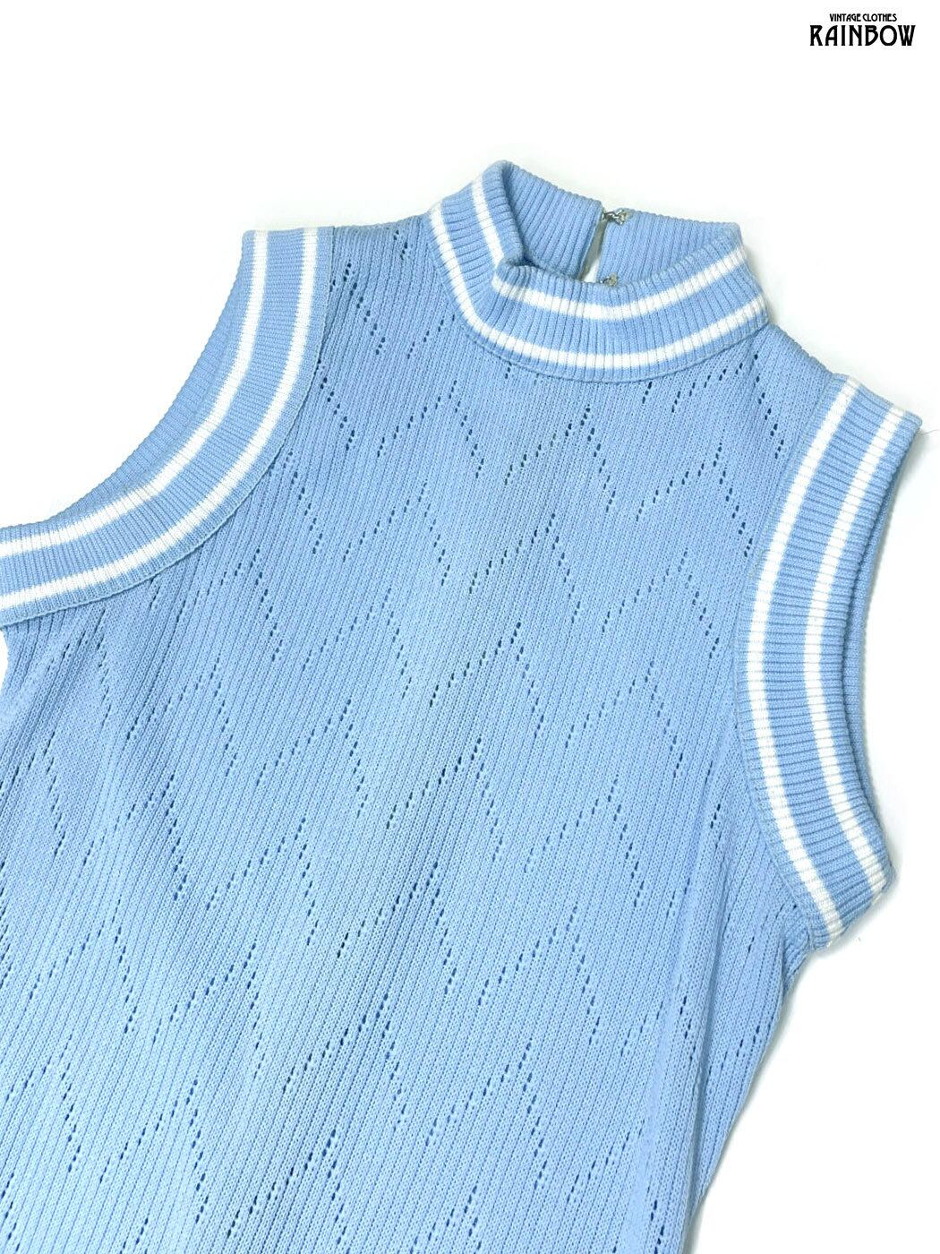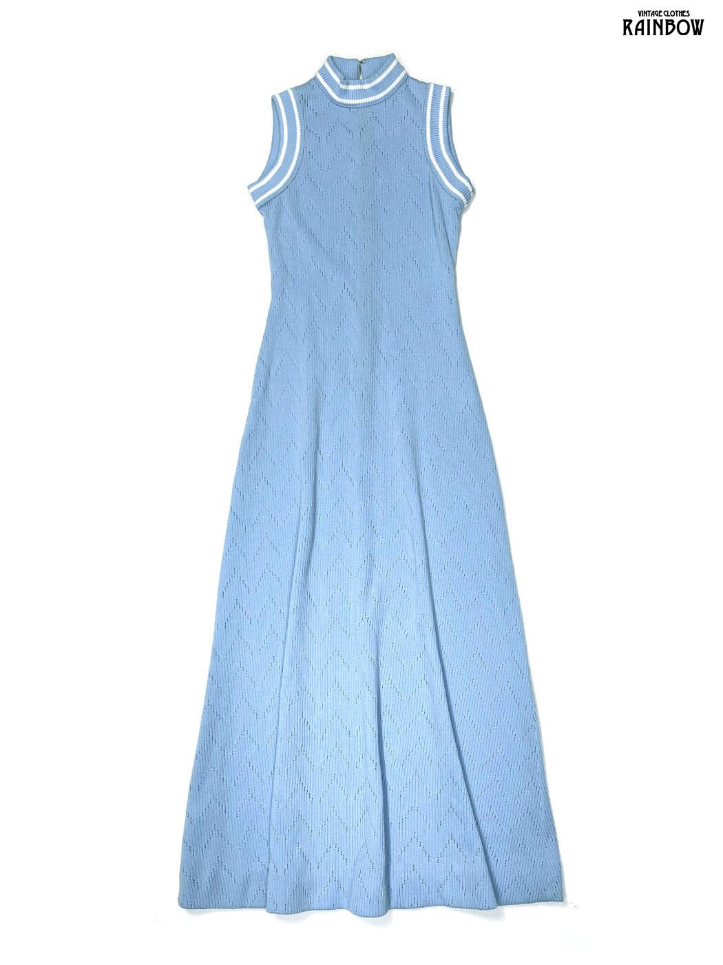 古着 無地 ロング丈 長袖 ニット セットアップ 青 水色 (otu2511023)