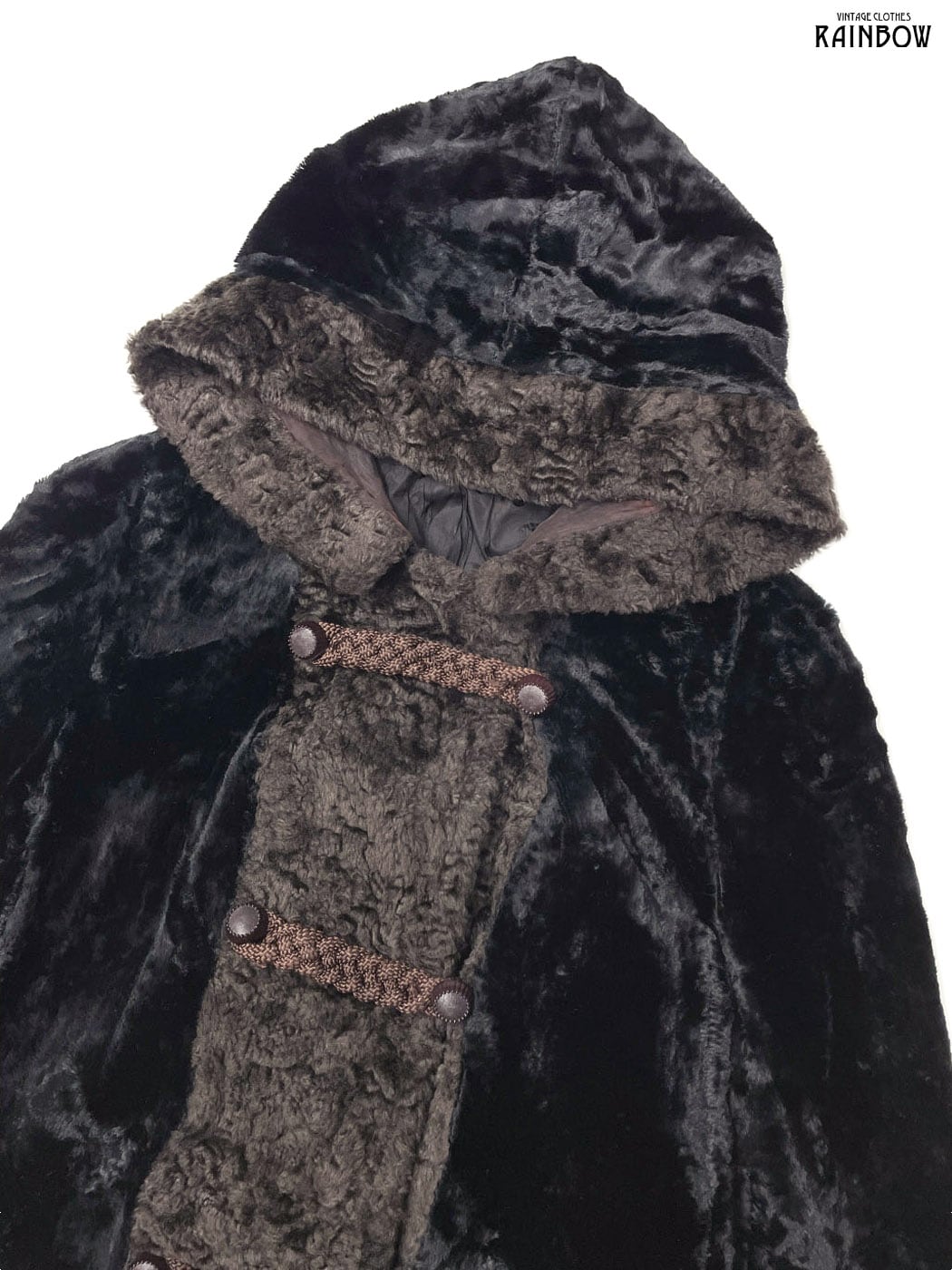 #アウター #羽織り #ロングスリーブ #黒 #茶 #無地 #フード付 #前開き #ヴィンテージ #ボア #ファー #ポンチョ・ケープ
