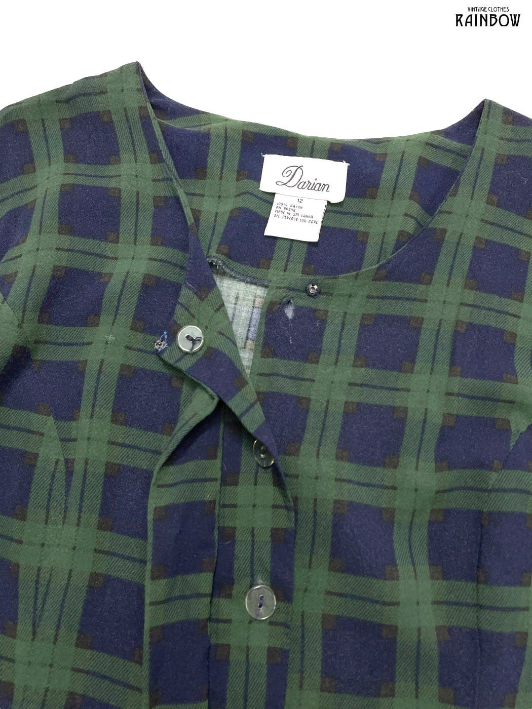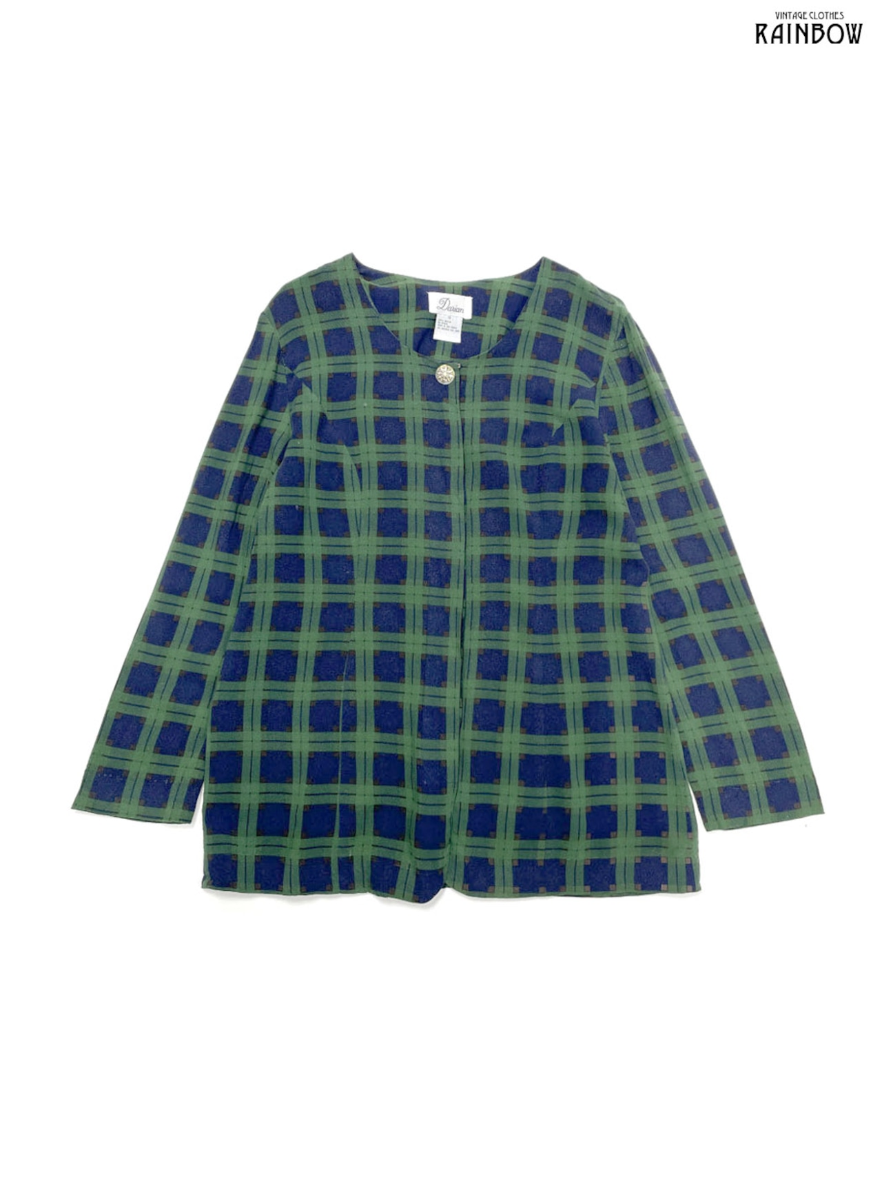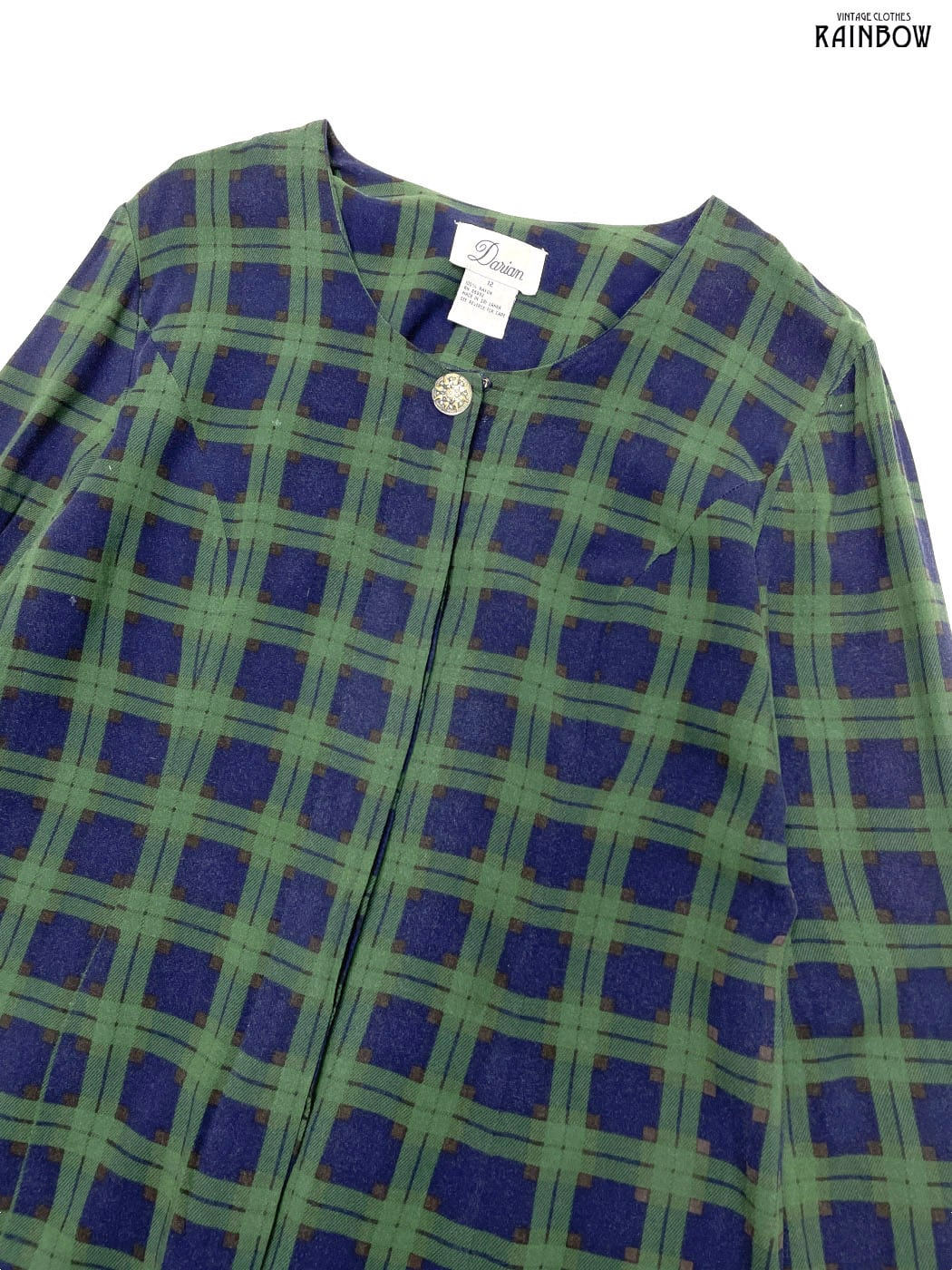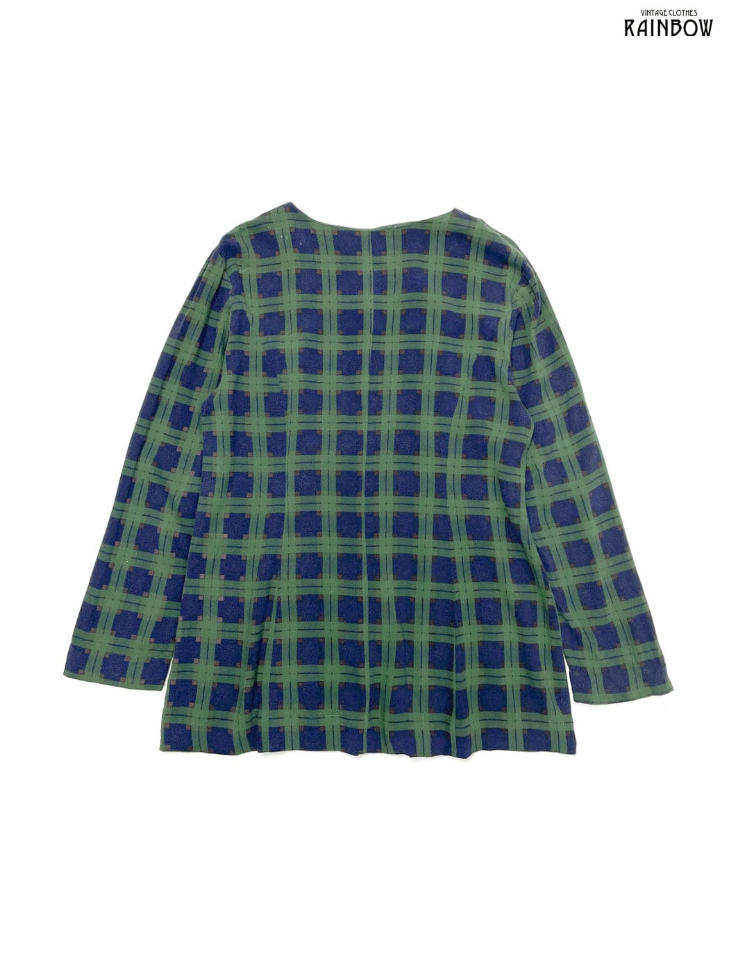 #ブラウス #bブラウス #ロングスリーブ #緑 #チェック柄 #前開き #クラシック #レーヨン #チェック柄シャツ
