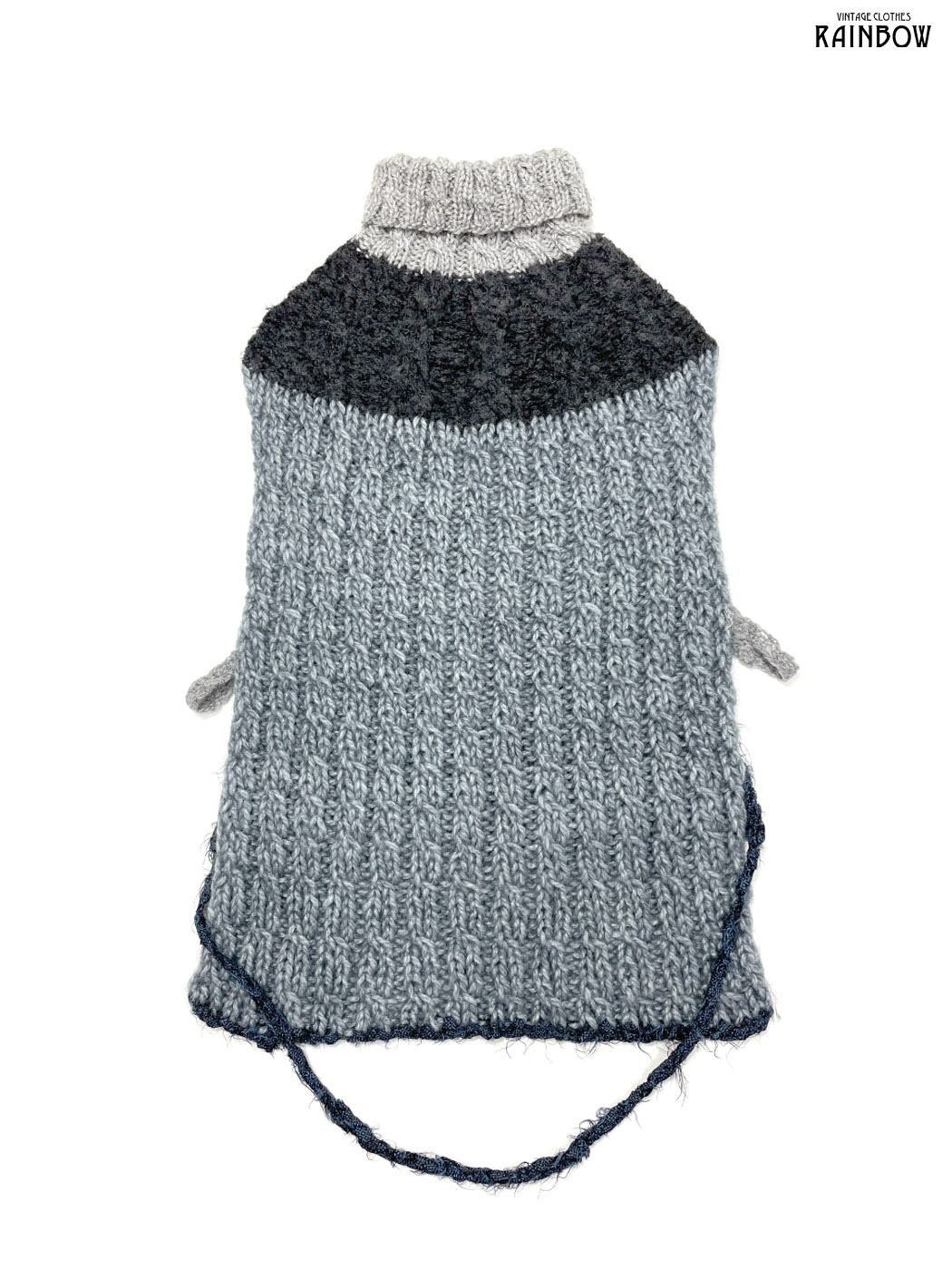 古着 ハイネック 無地 ウール ノースリーブ ニット ベスト グレー 水色 (ttu2511058)