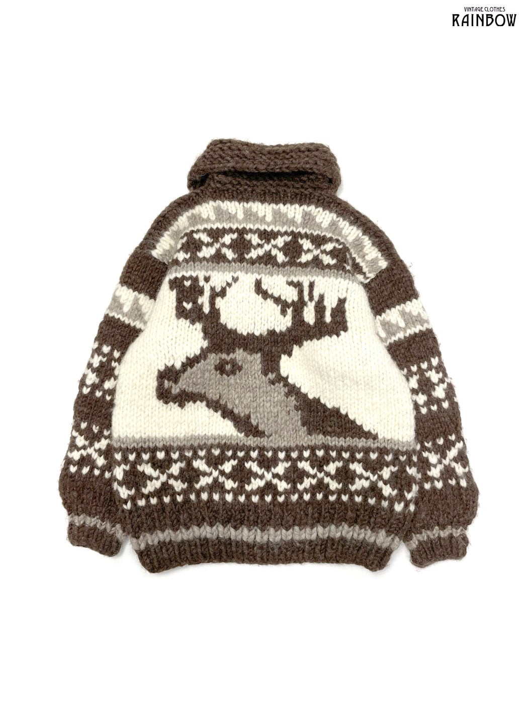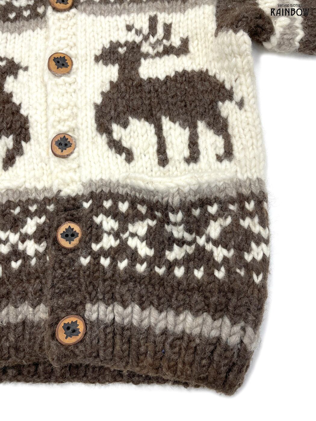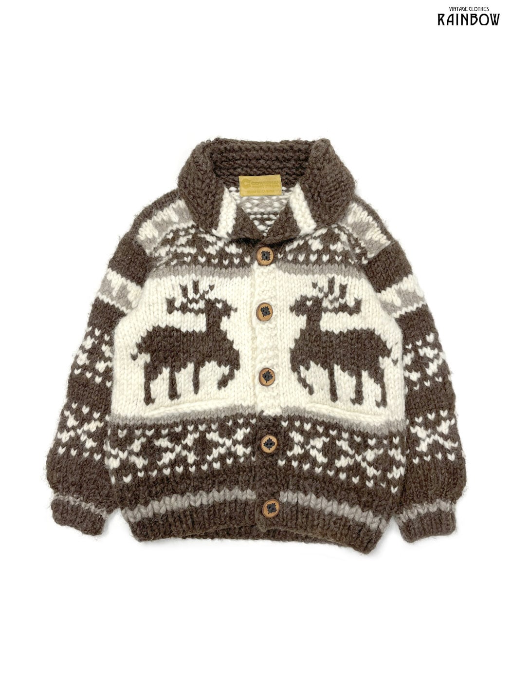 #ニット #カーディガン #ロングスリーブ #茶 #総柄 #ノルディック柄 #トナカイ #カナダ製 #前開き #ヴィンテージ #ウール #ノルディック柄ニット