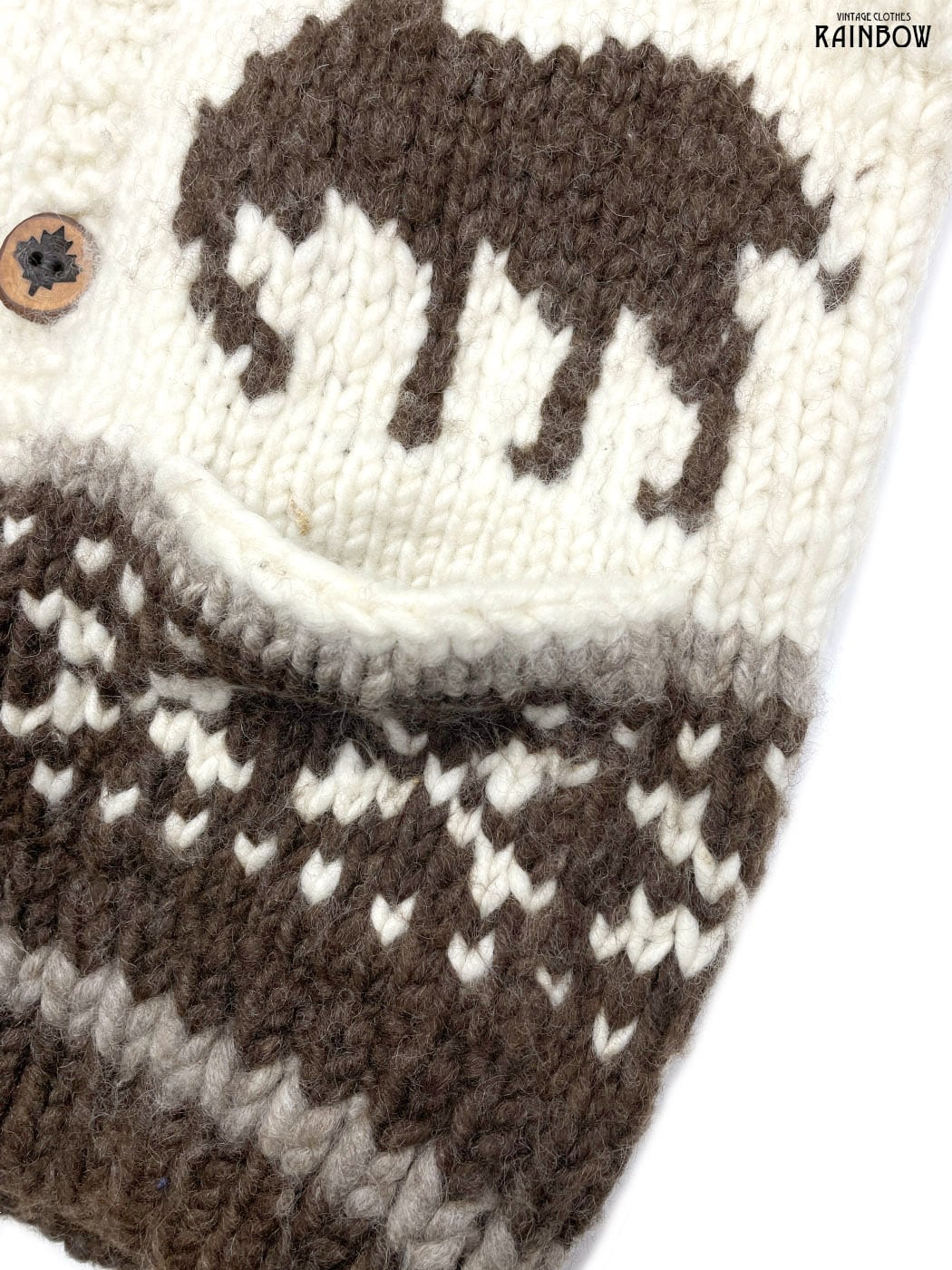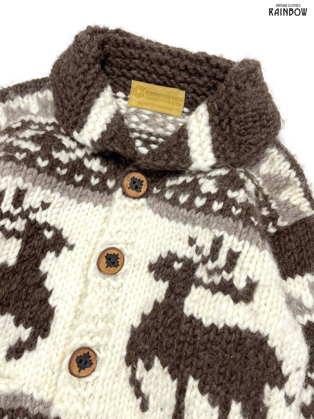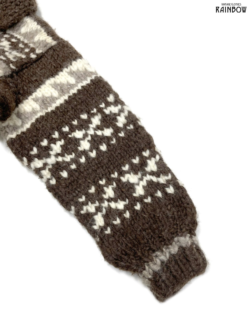 #ニット #カーディガン #ロングスリーブ #茶 #総柄 #ノルディック柄 #トナカイ #カナダ製 #前開き #ヴィンテージ #ウール #ノルディック柄ニット