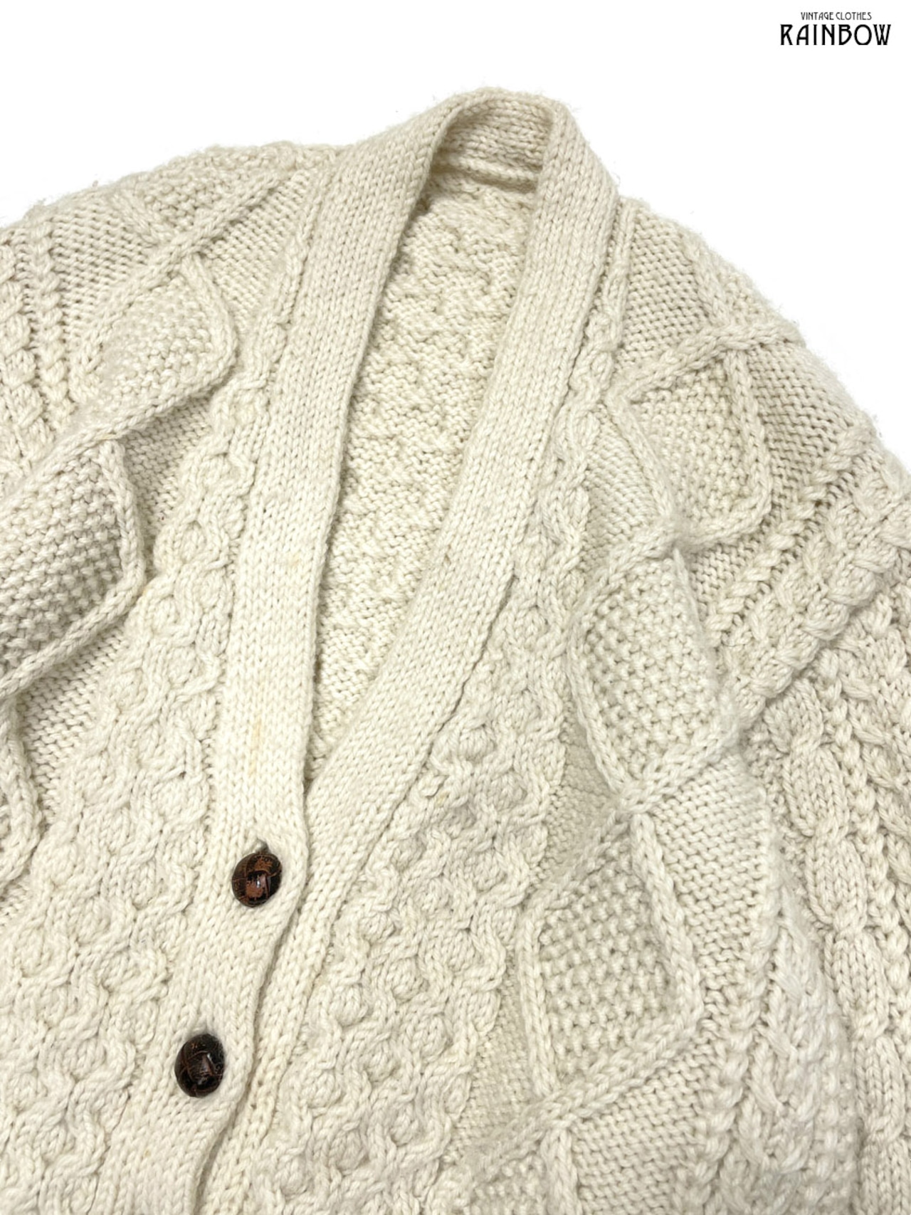 #ニット #カーディガン #ロングスリーブ #白 #生成り #無地 #ケーブルニット #前開き #ナチュラル #シンプル #ニット地 #無地カーディガン
