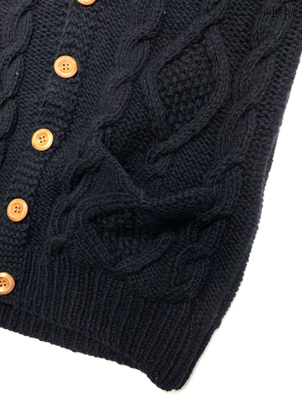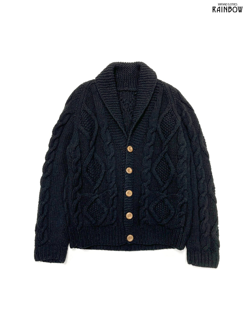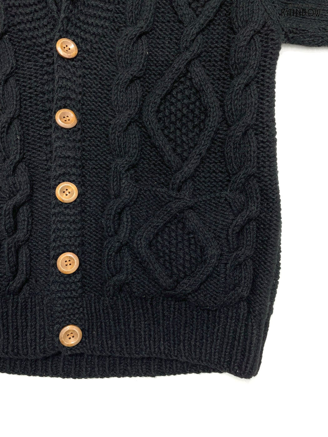 #ニット #カーディガン #ロングスリーブ #黒 #無地 #前開き #ケーブルニット #シンプル #ニット地 #無地カーディガン