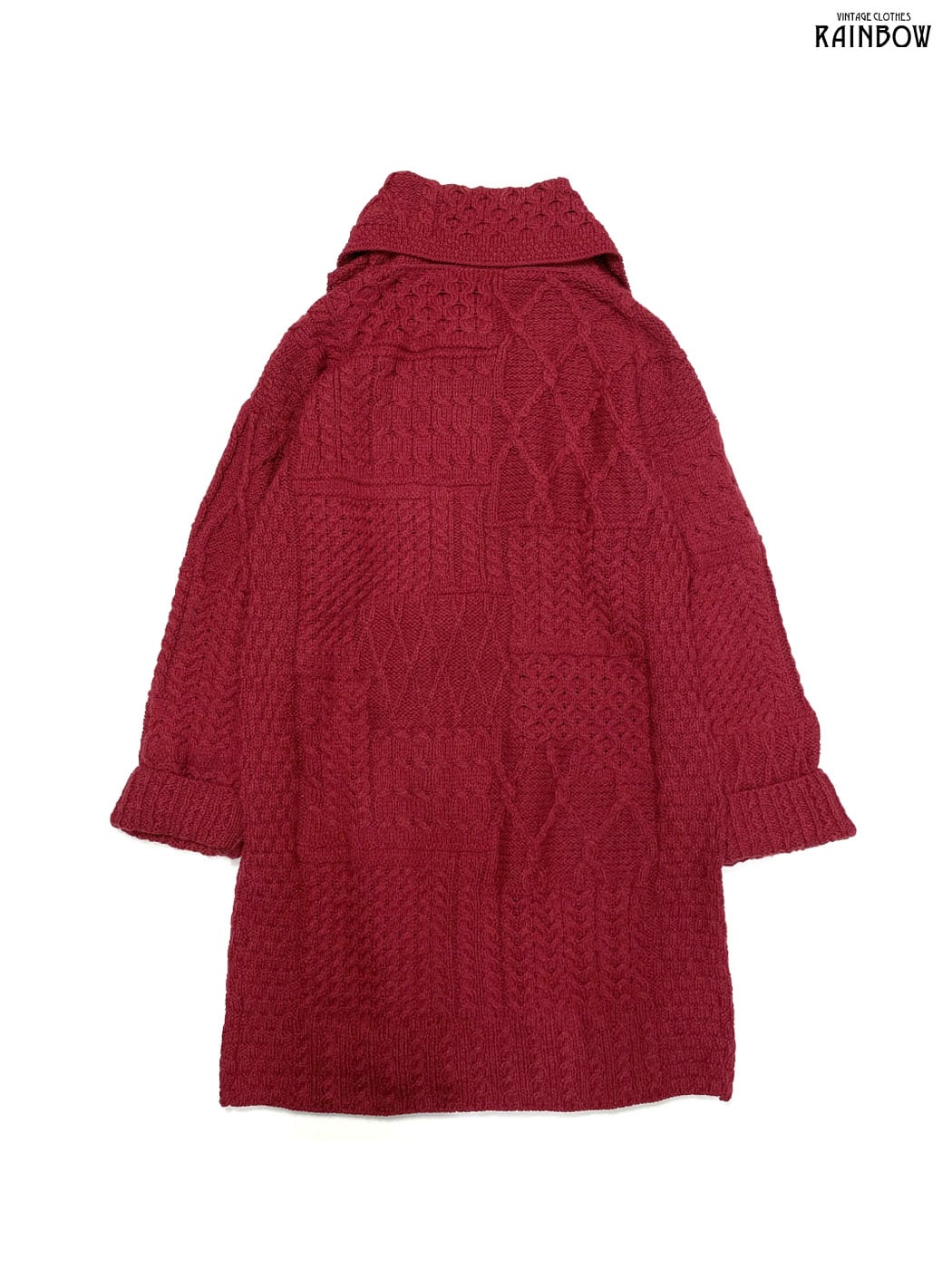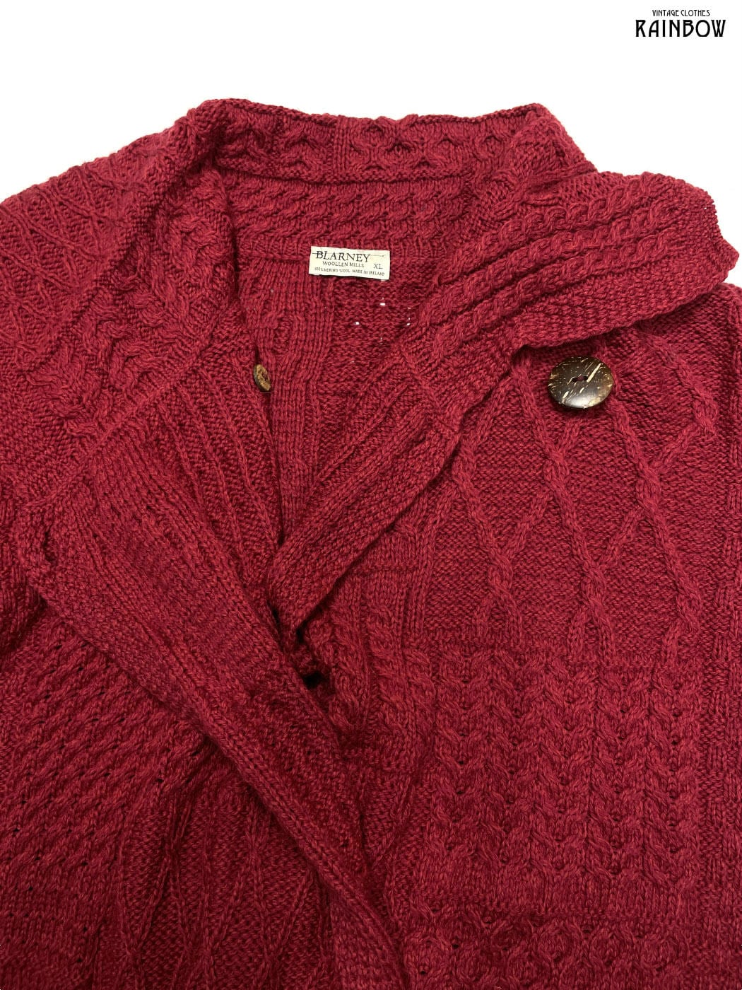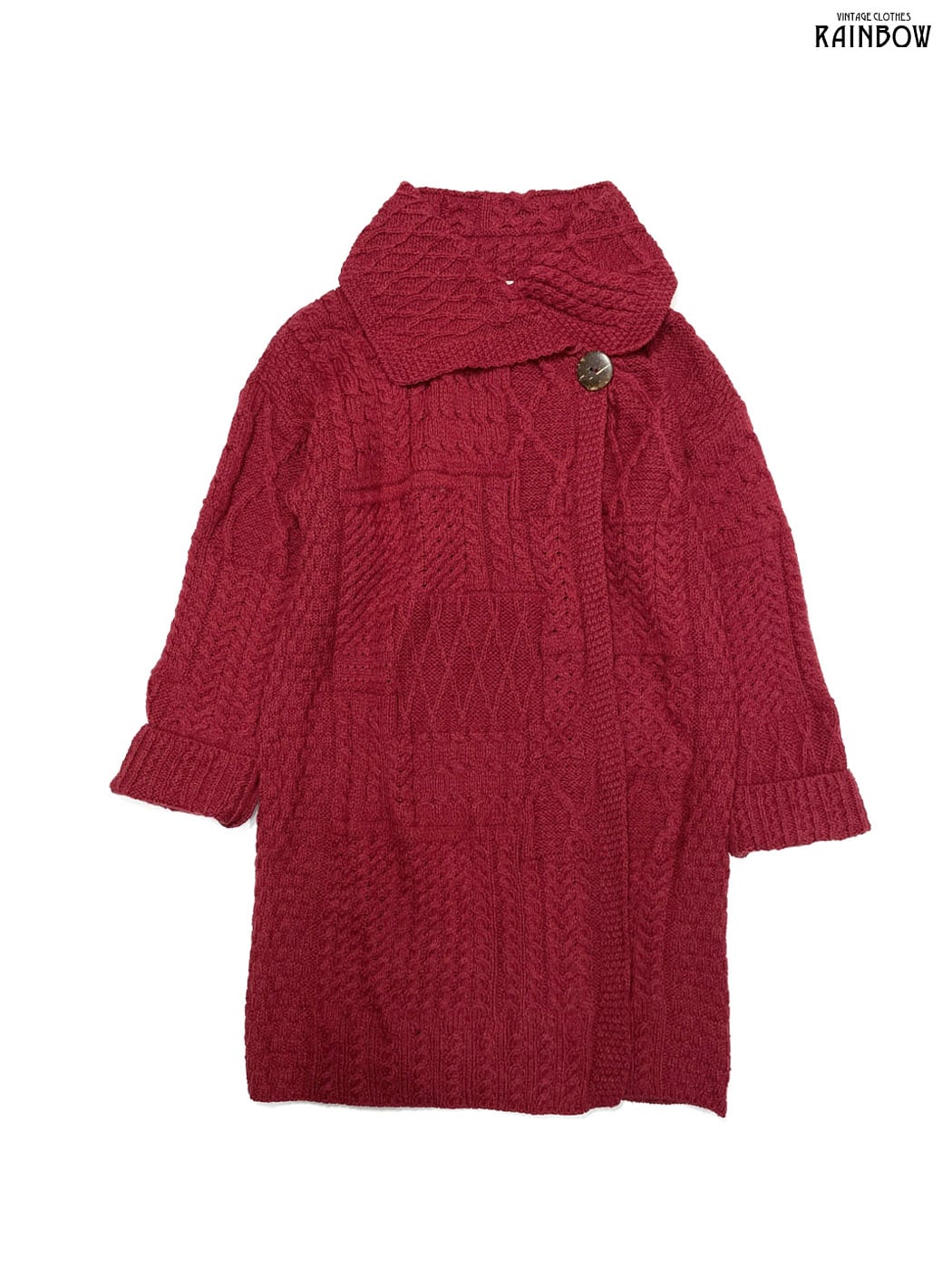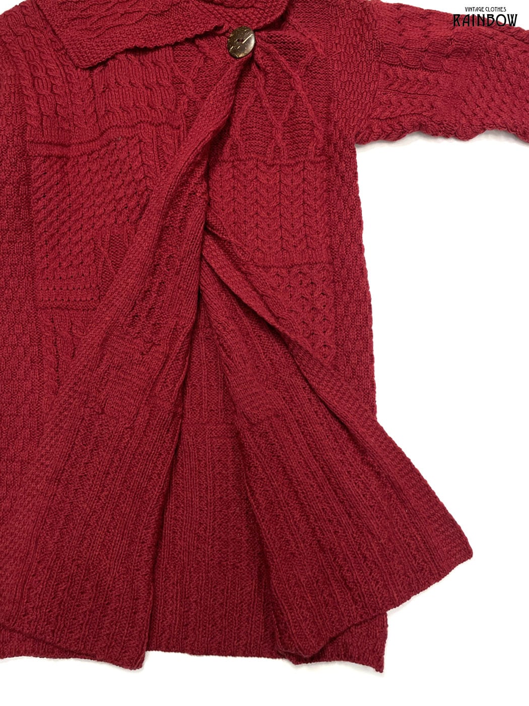 #ニット #ニットアウター #ロングスリーブ #赤 #無地 #前開き アイルランド製 #ガーリー #ウール #メリノウール #ニットアウター