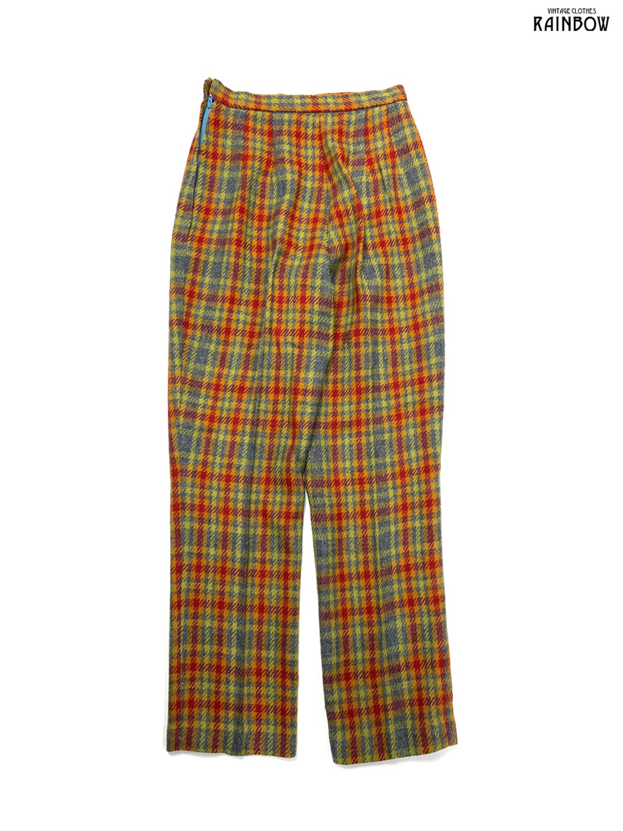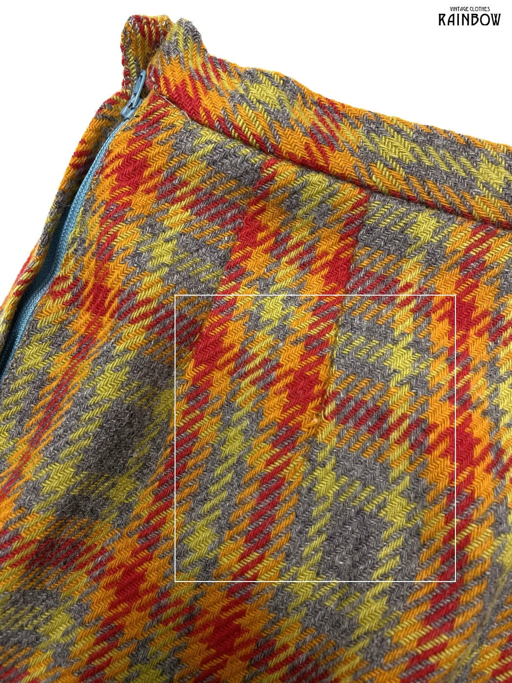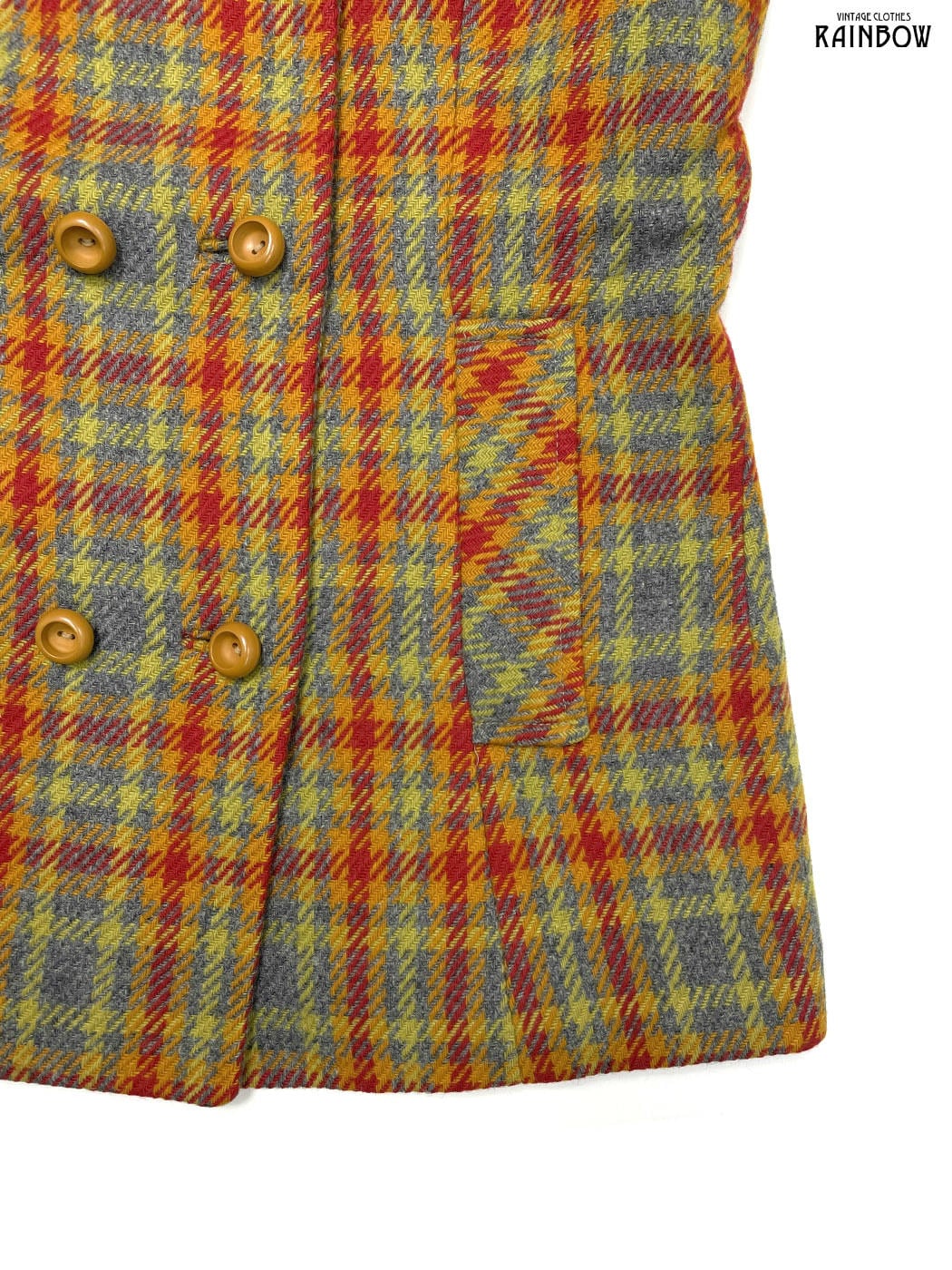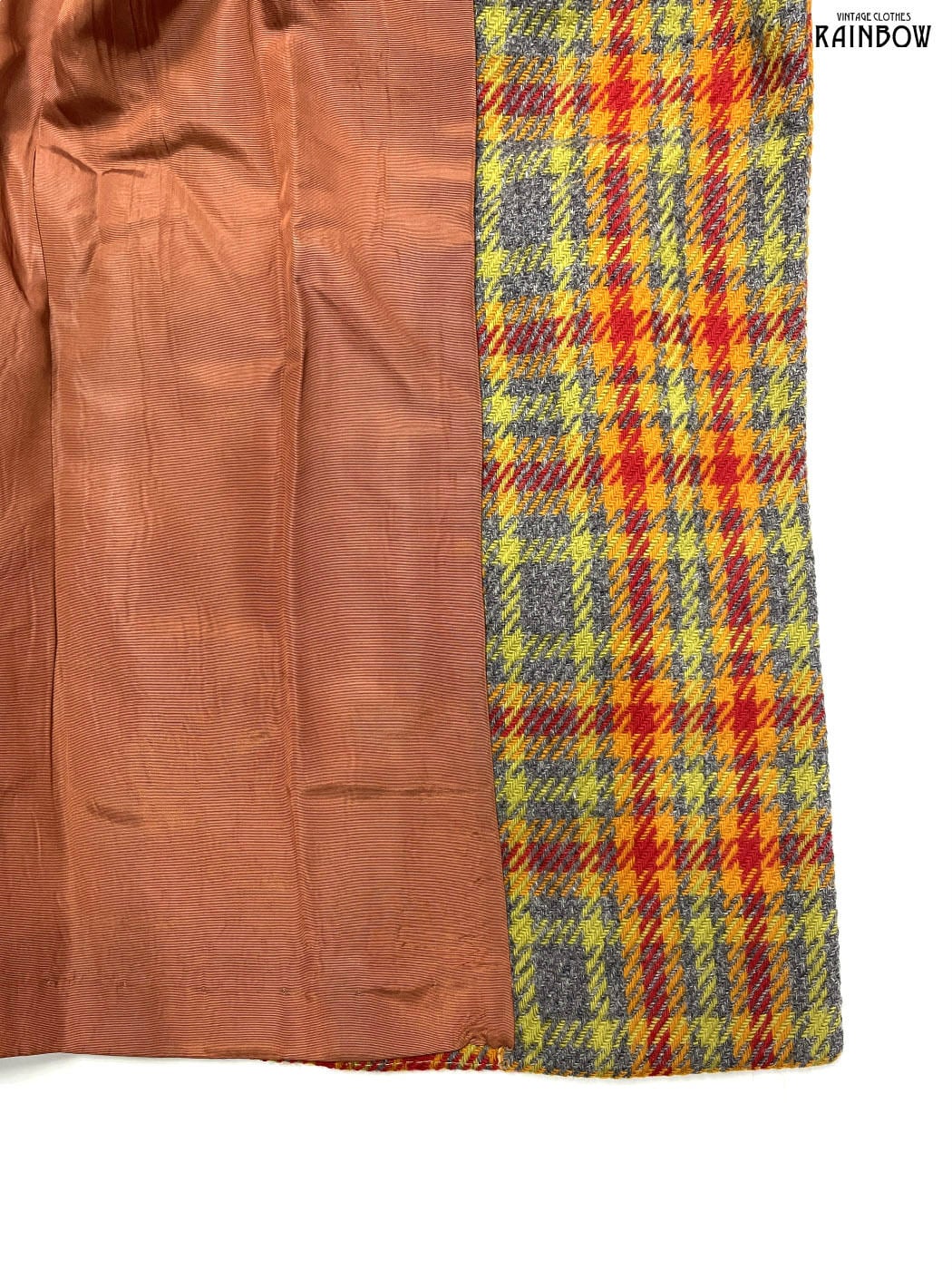 #ワンピース #セットアップ #ロングスリーブ #ロング丈 #黄 #オレンジ #チェック柄 #前開き #TALONジップ #ガーリー #ヴィンテージ #ウール #セットアップ