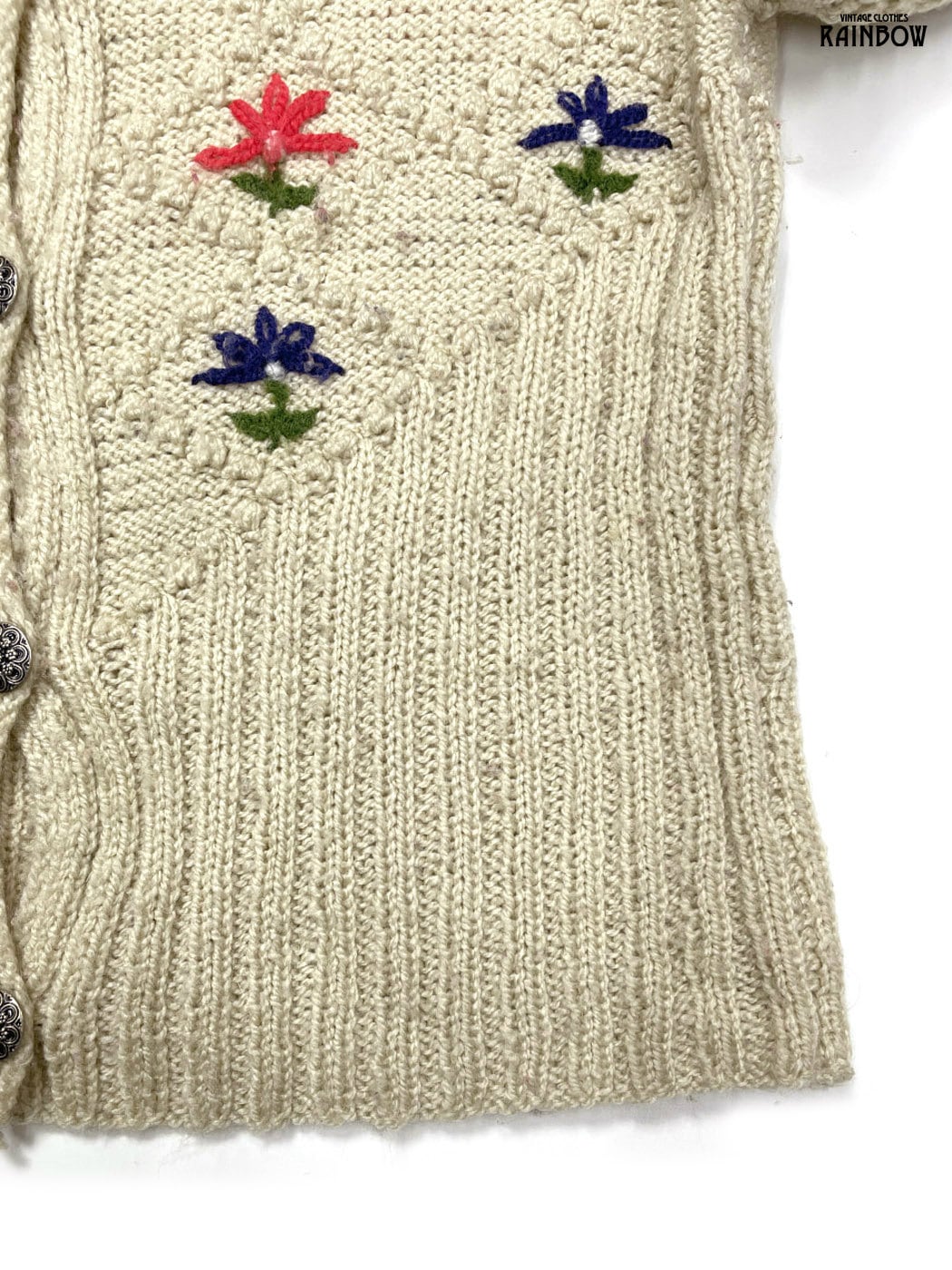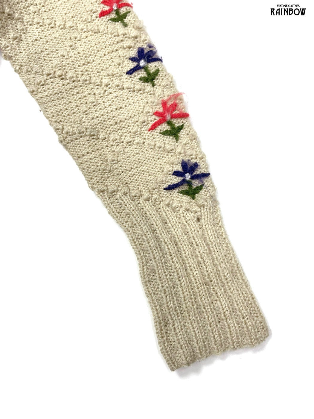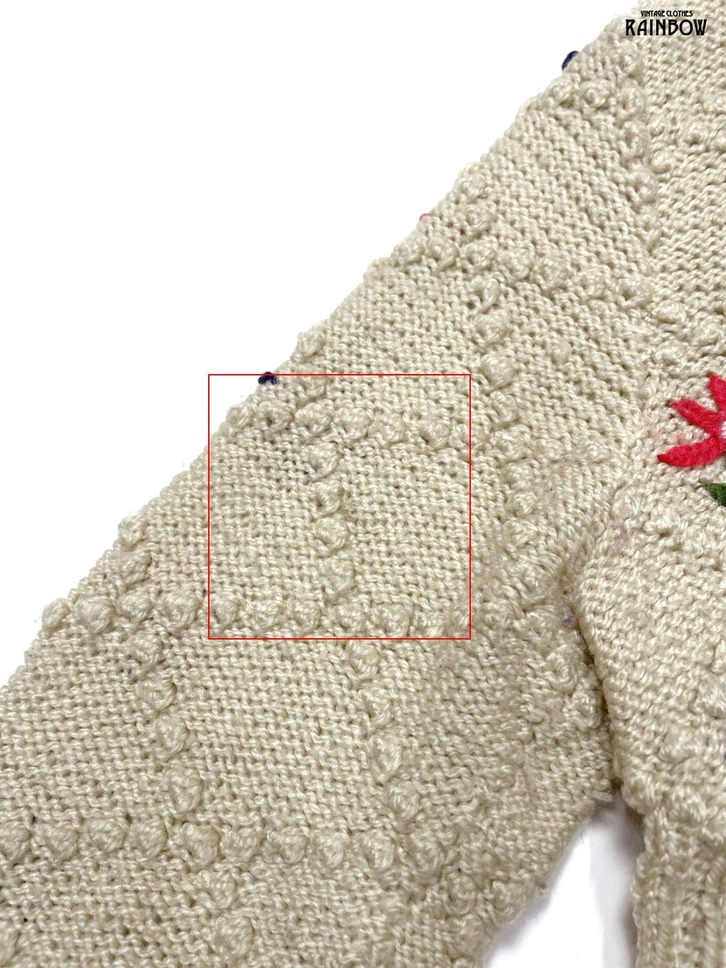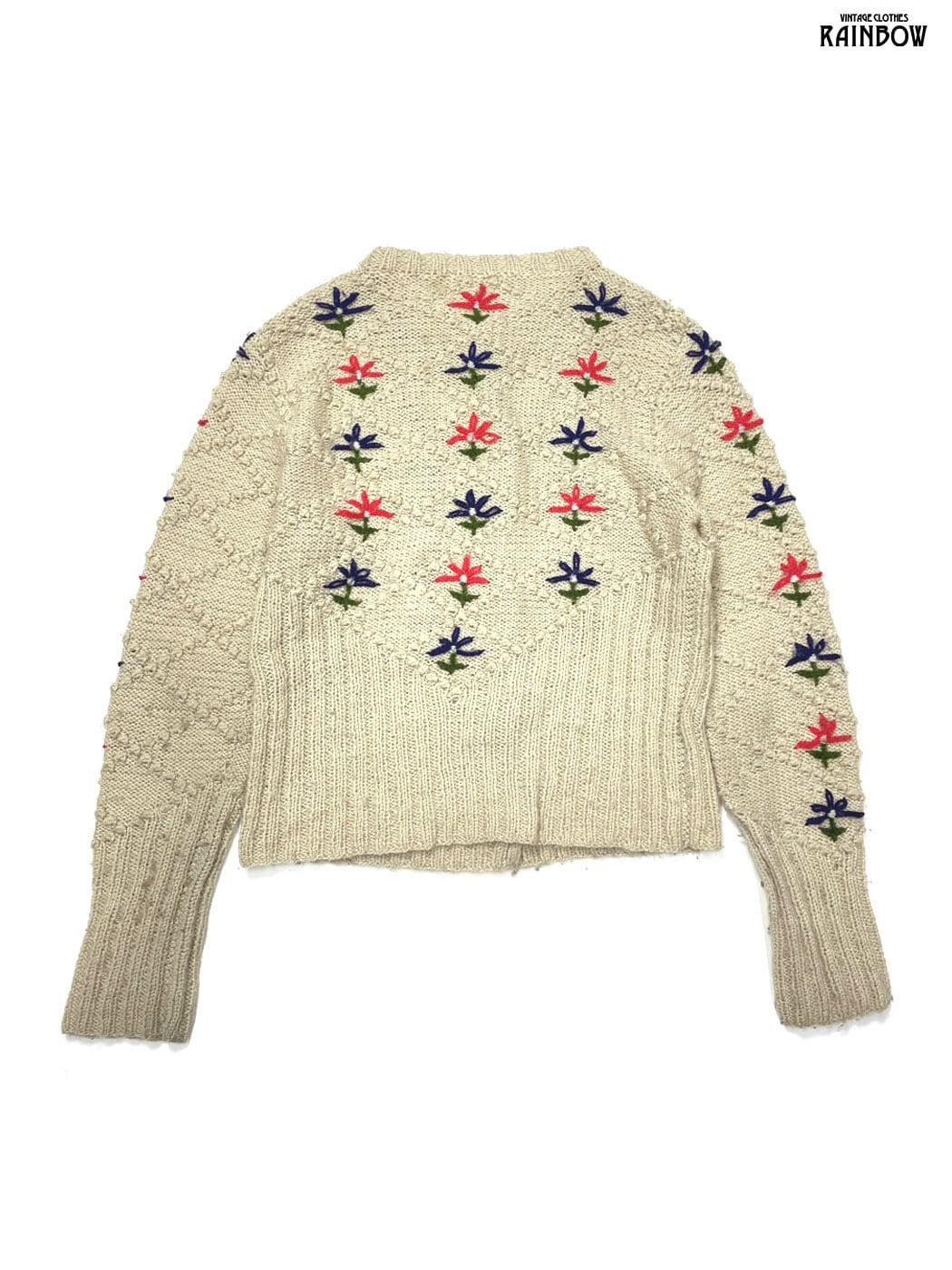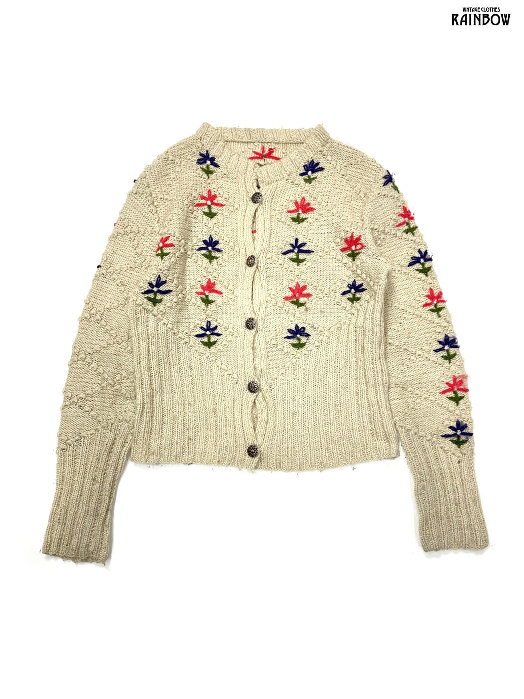 #ニット #カーディガン #ロングスリーブ #ベージュ #花柄 #刺繍 #ガーリー #ニット地 #柄カーディガン