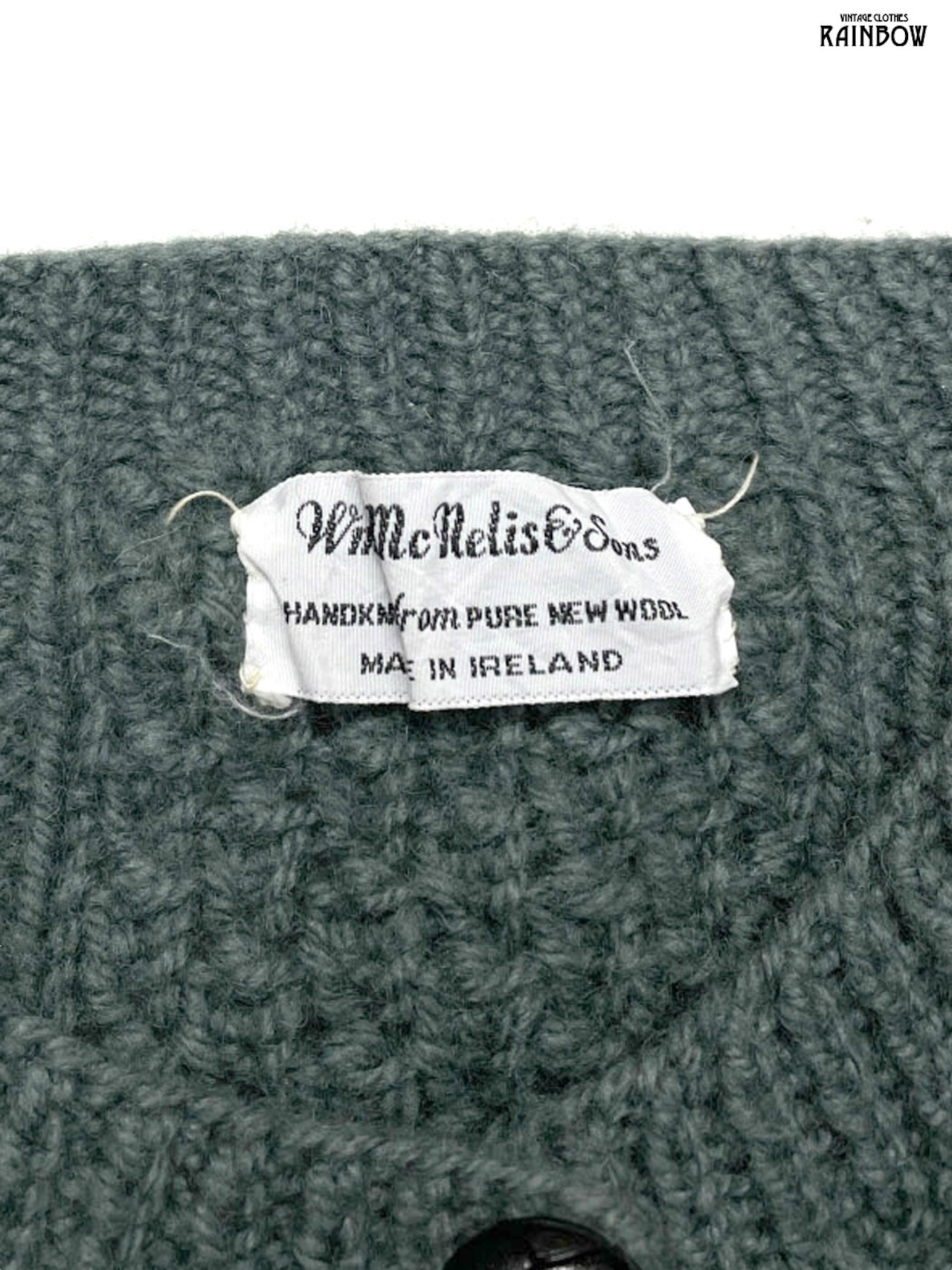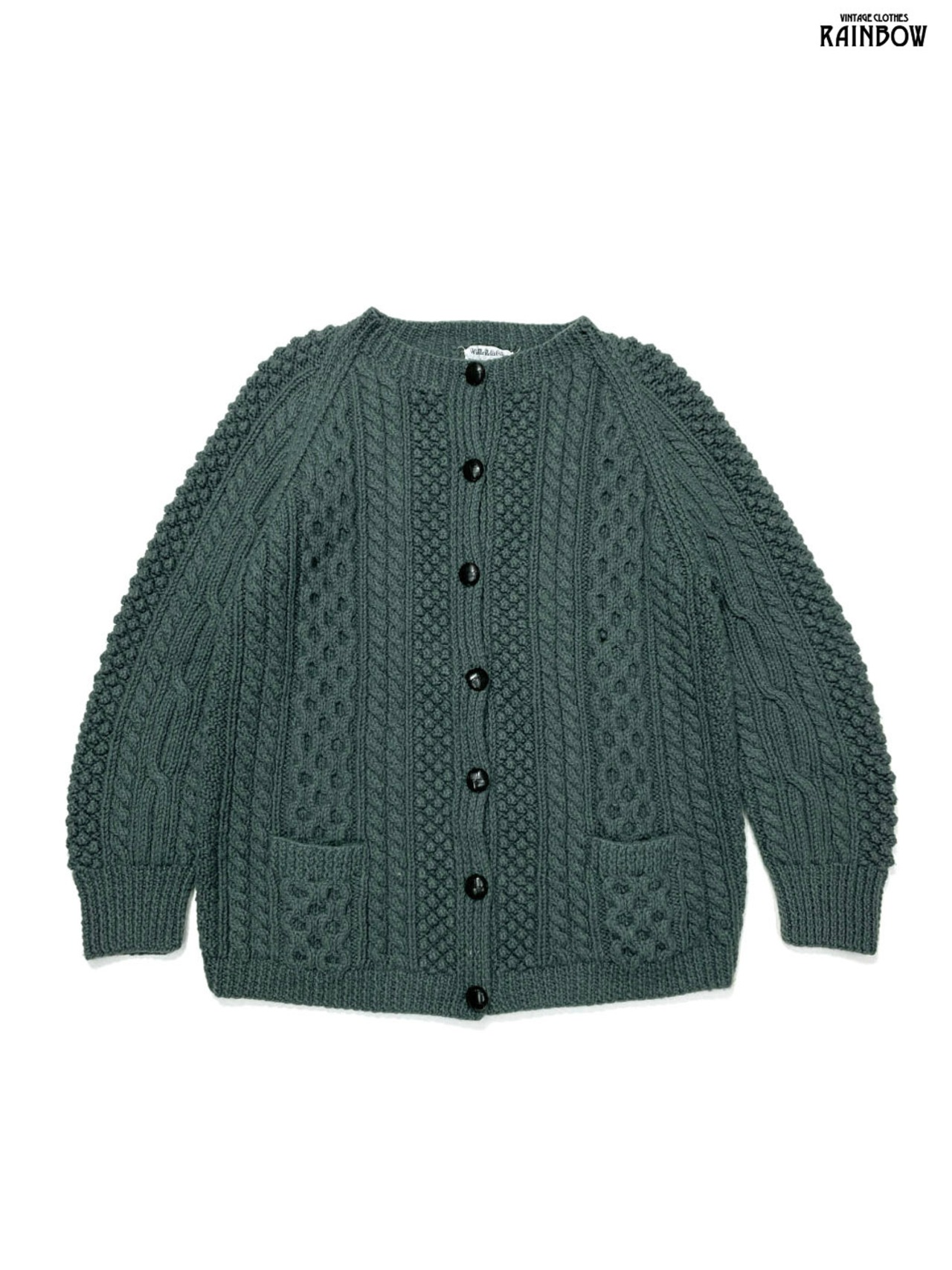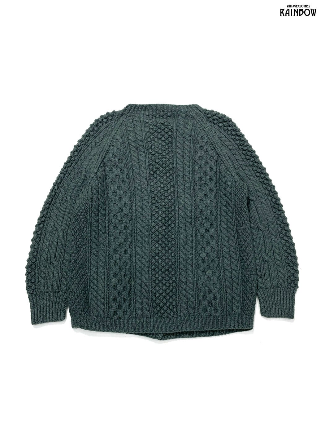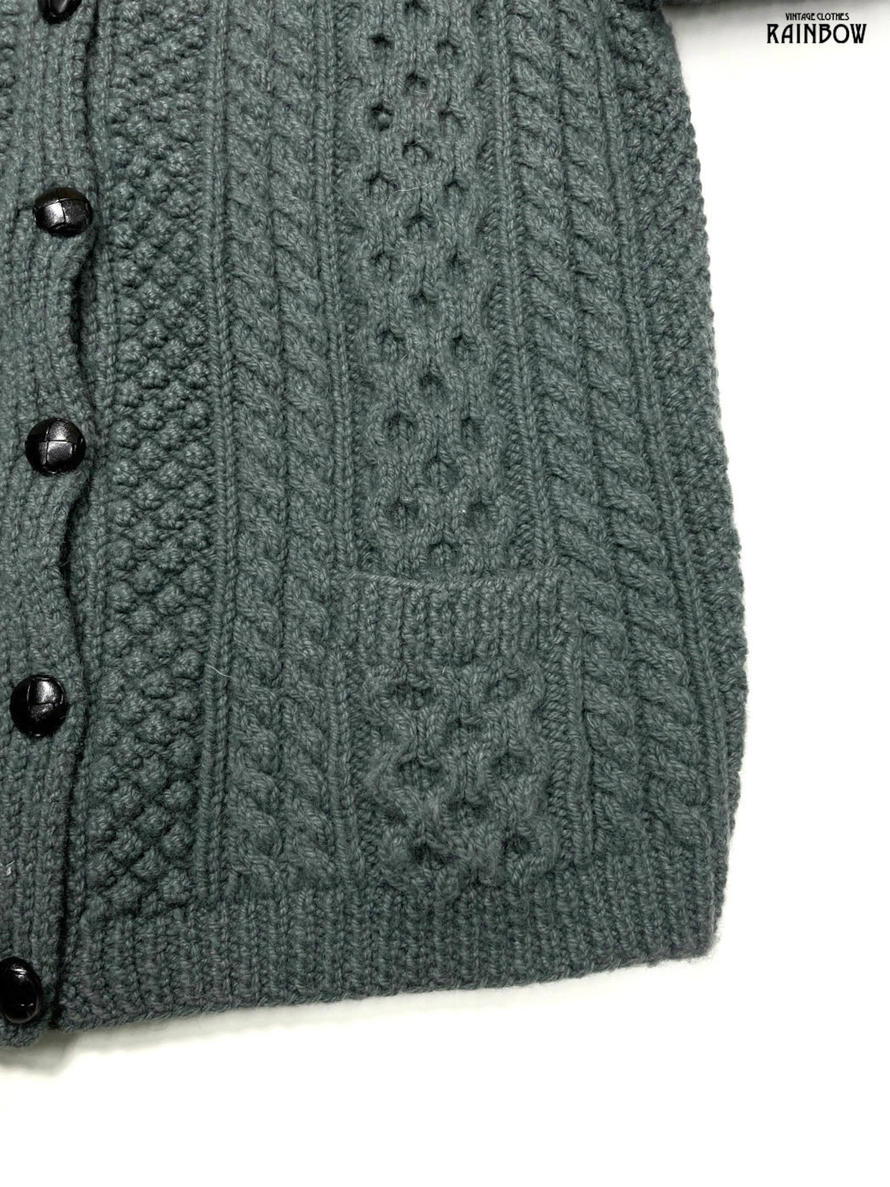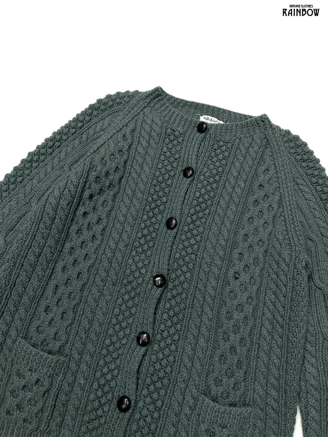 #ニット #カーディガン #ロングスリーブ #グレー #カーキ #無地 #アイルランド製#ケーブル編み #シンプル #ピュアウール #無地カーディガン