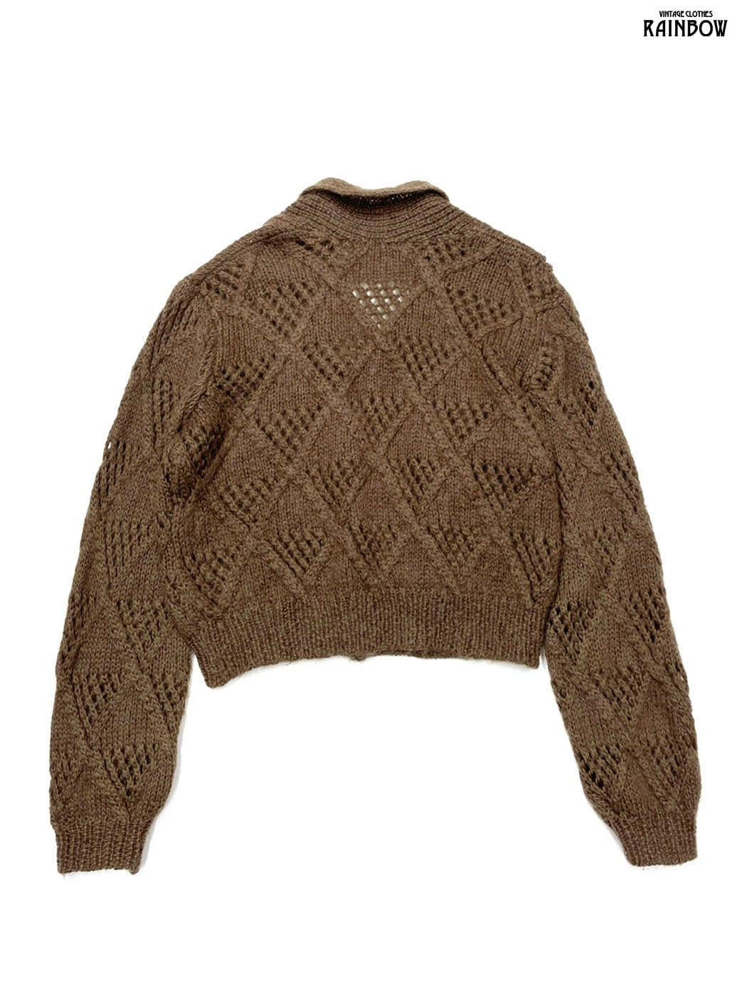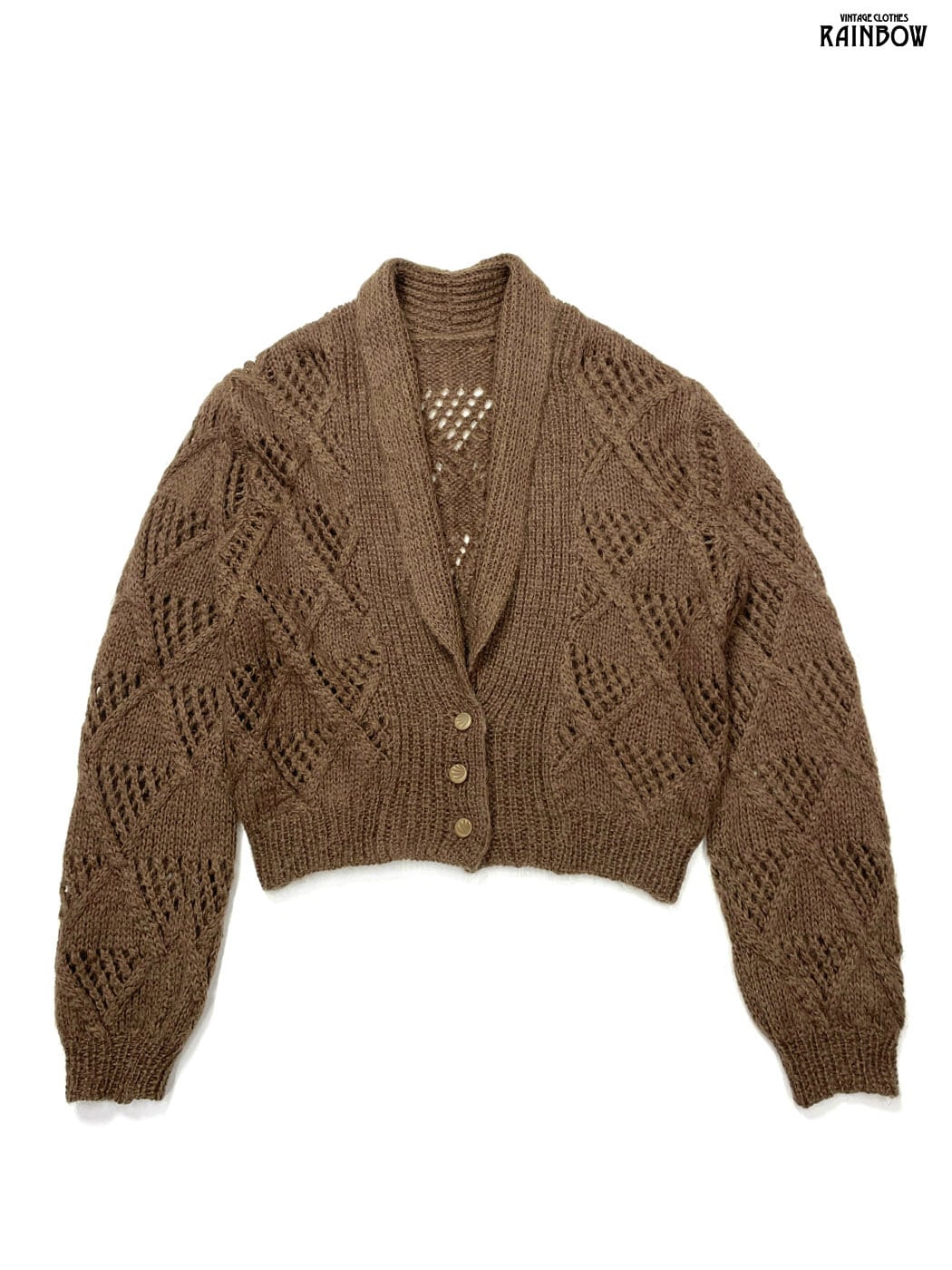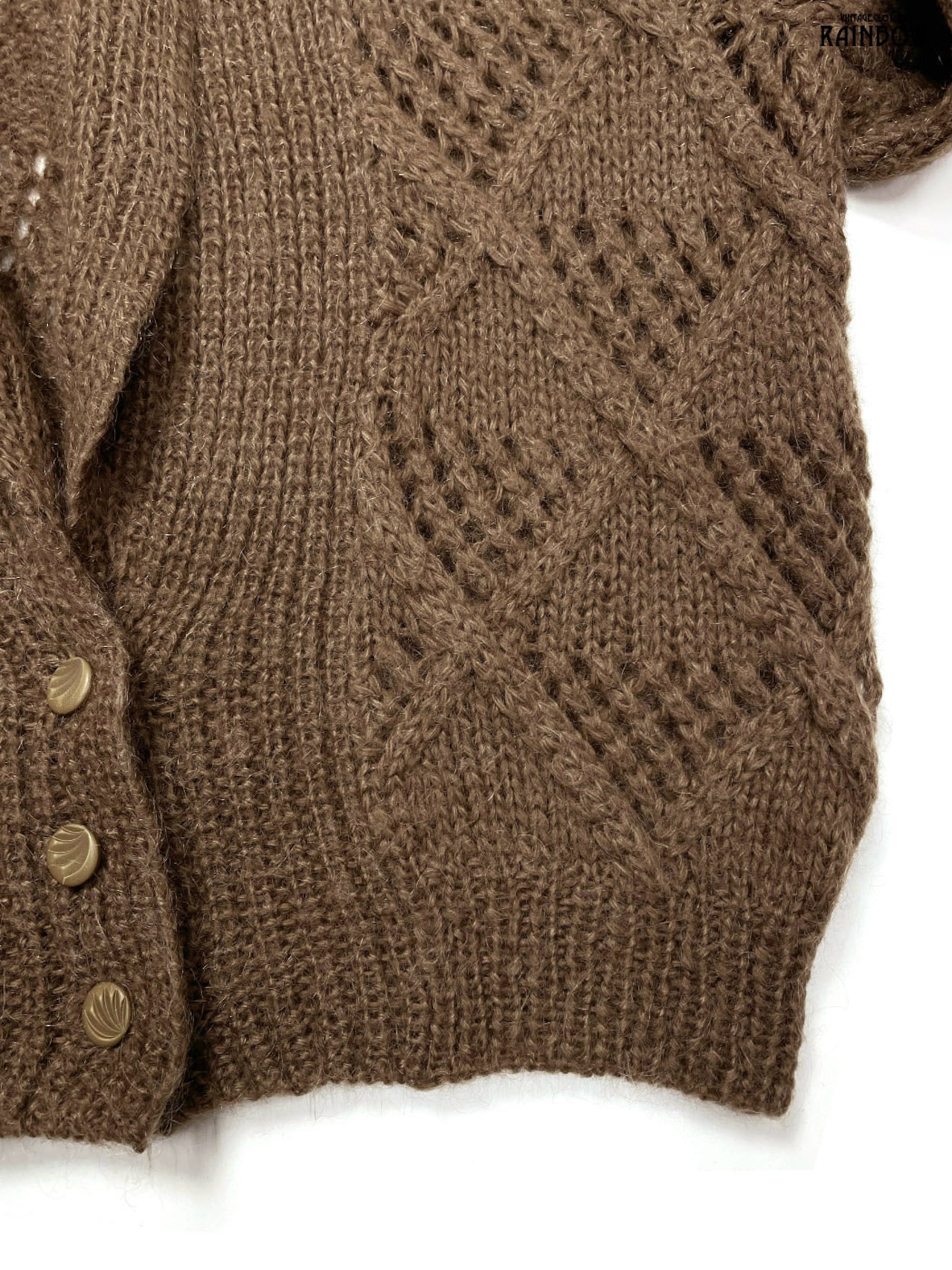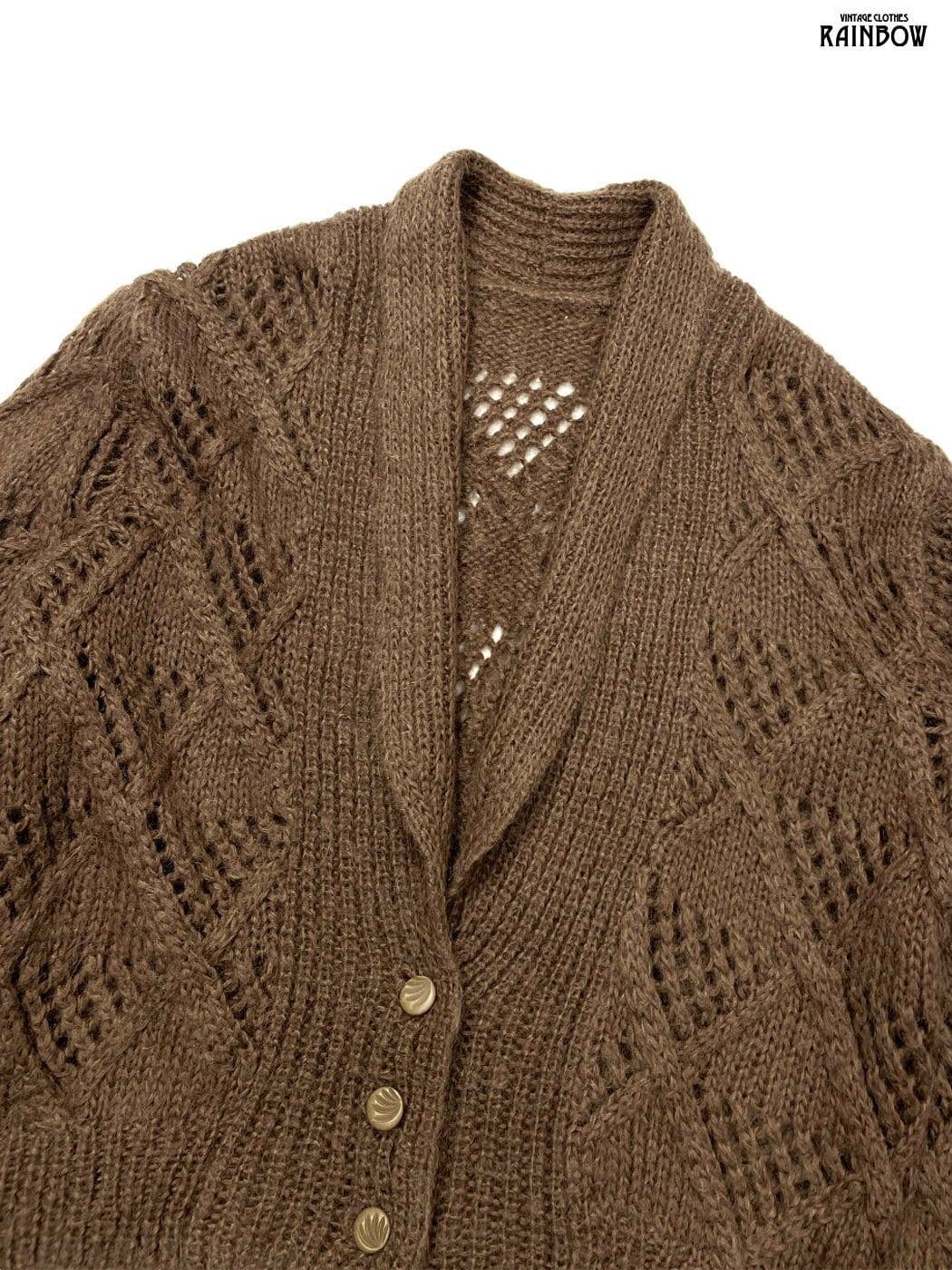 #ニット #カーディガン #ロングスリーブ #茶 #無地 #シンプル #ニット地 #無地カーディガン