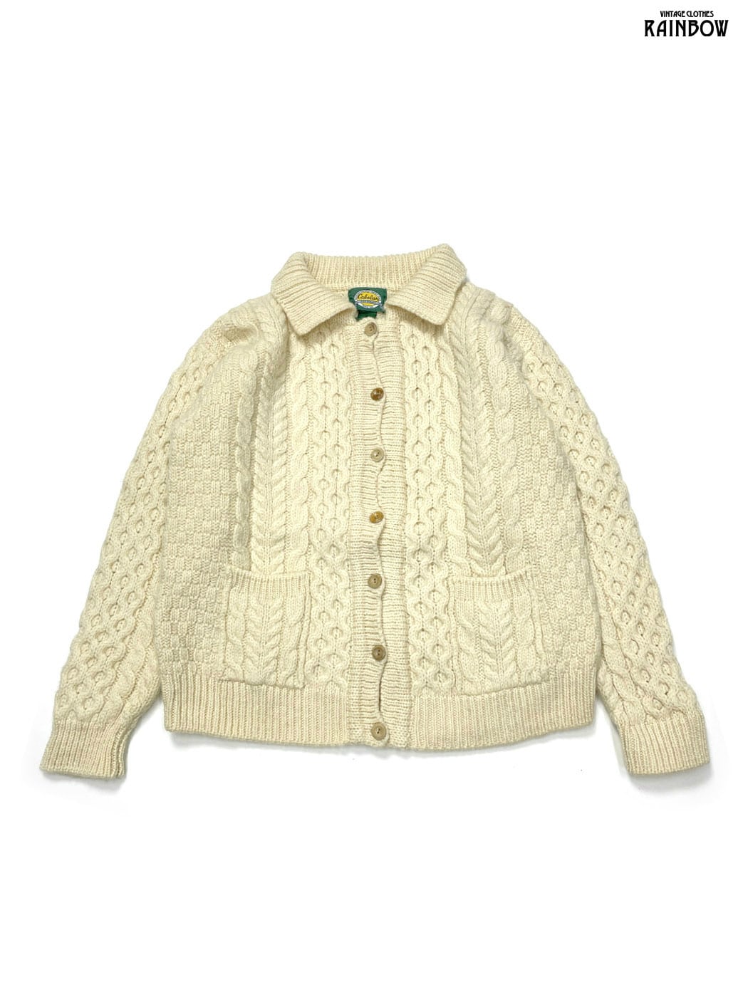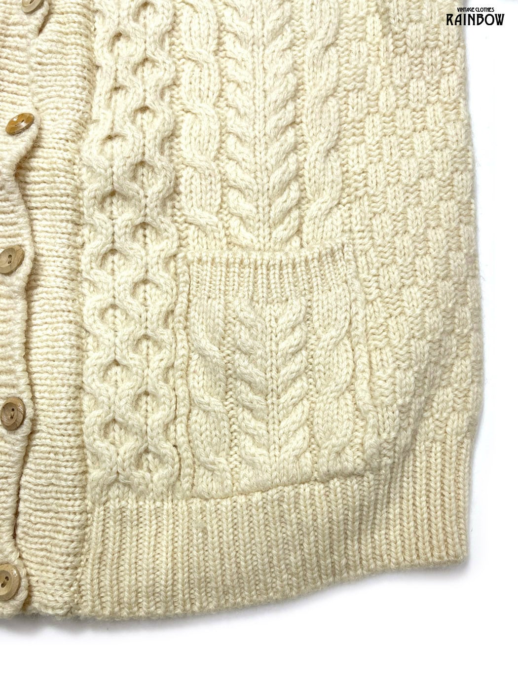 #ニット #カーディガン #ロングスリーブ #生成り #無地 #アイルランド製 #ケーブル編み #ナチュラル #ピュアウール #フィッシャーマンニット