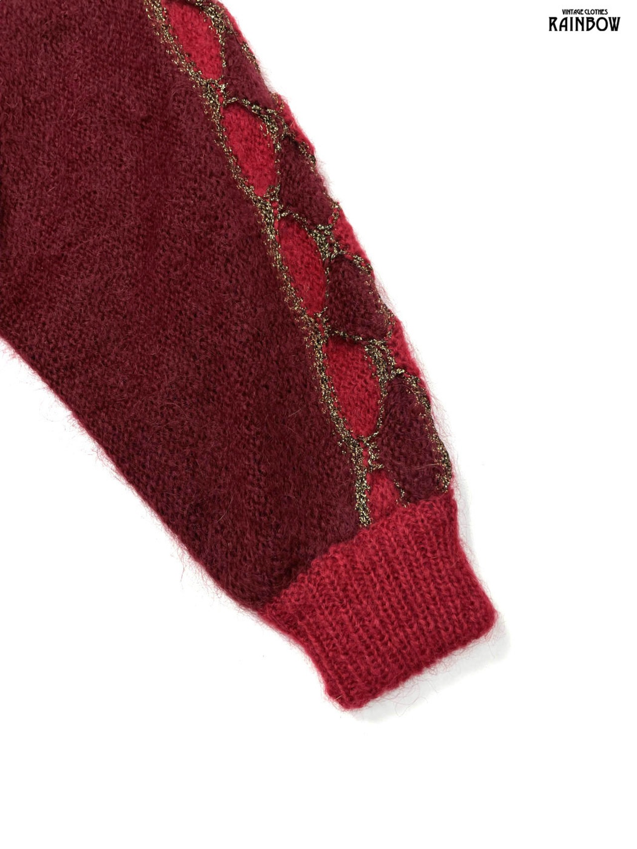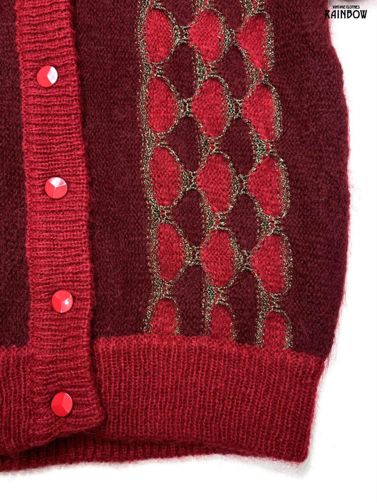 #ニット #カーディガン #ロングスリーブ #赤 #ボルドー #総柄 #ラメ織 #ニット地 #ニットアウター