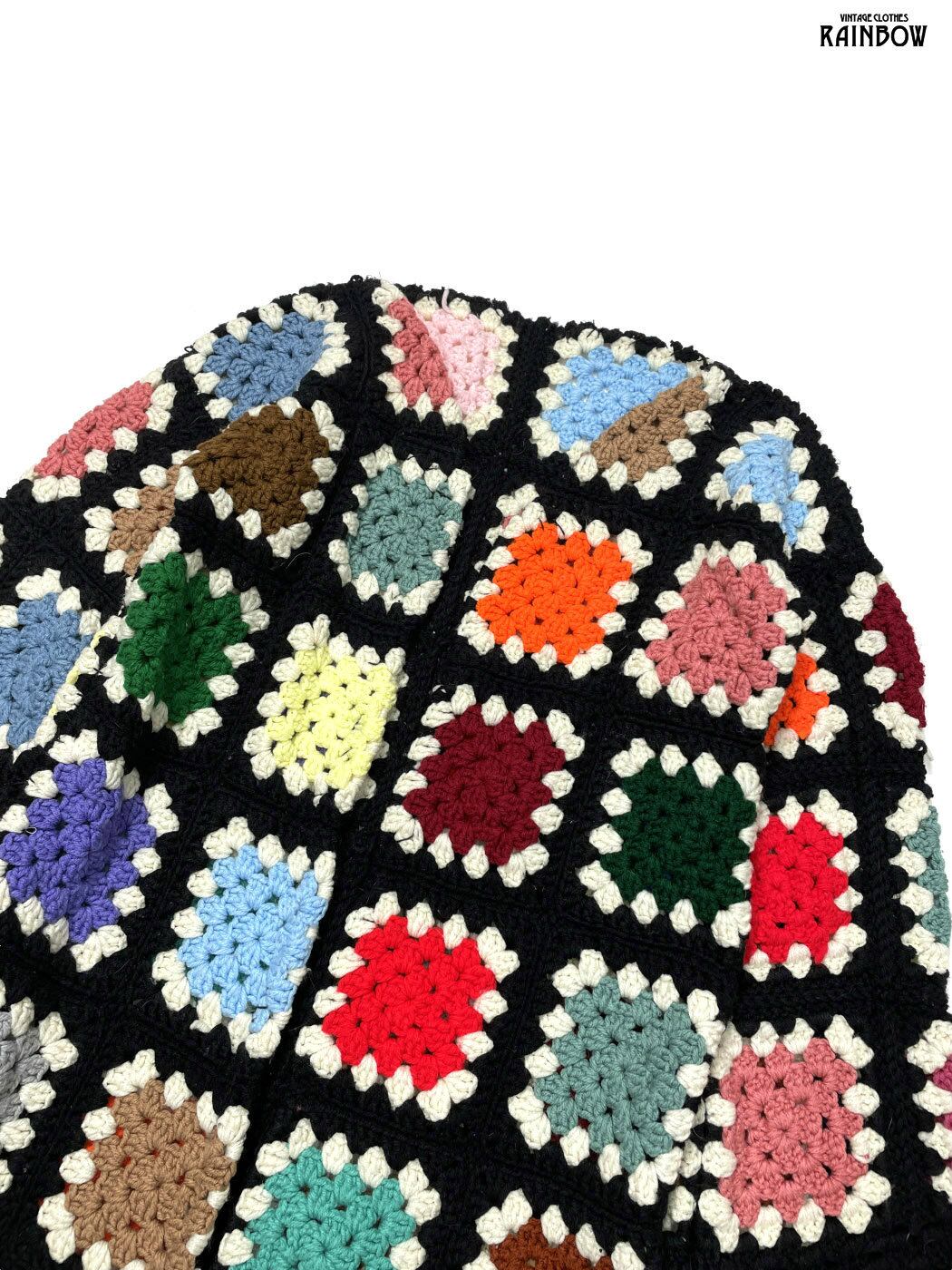 #ニット #ニットアウター #ロングスリーブ #黒 #カラフル #総柄 #カギ編み #クラシック #ニット地 #ニットアウター