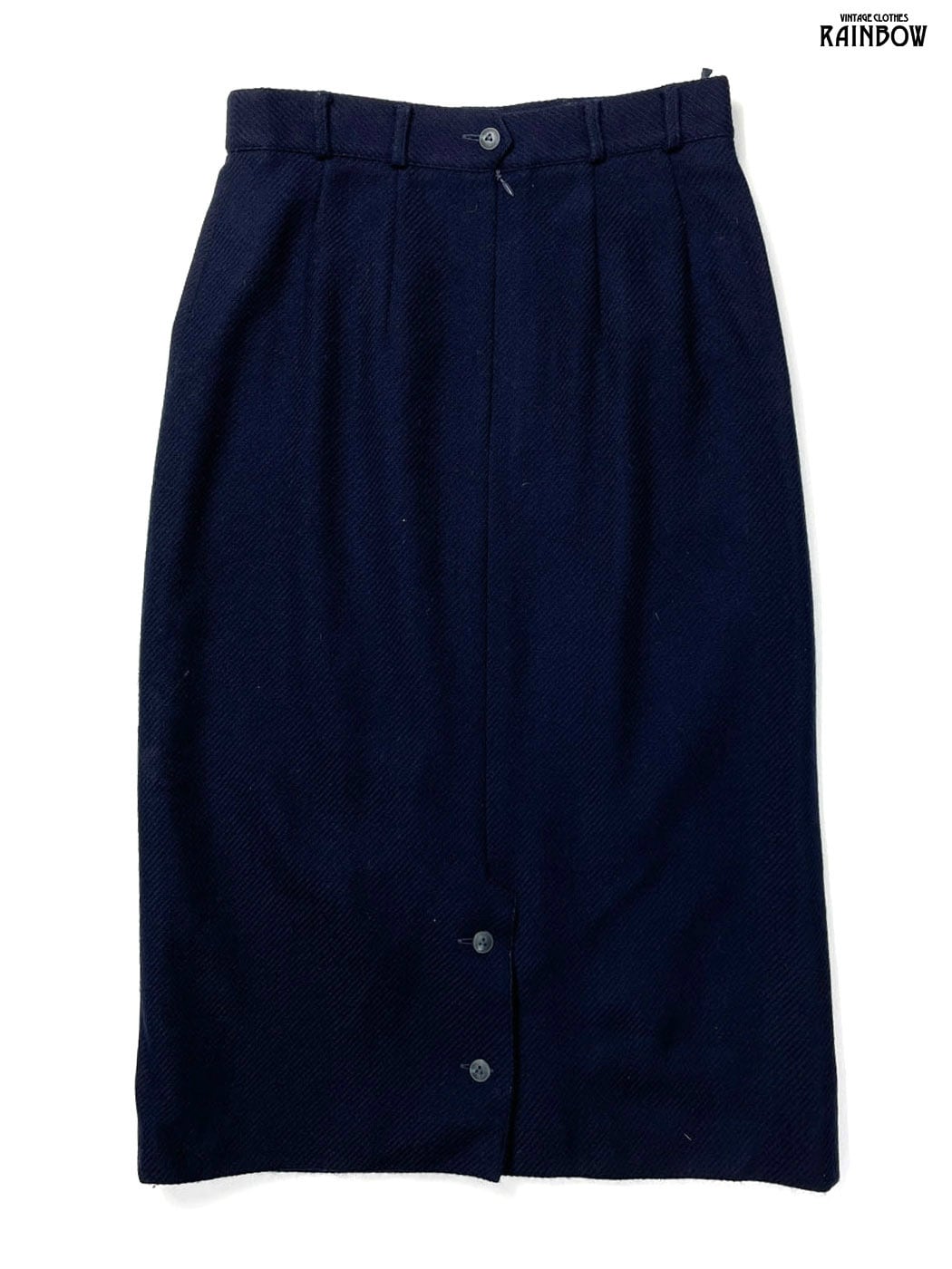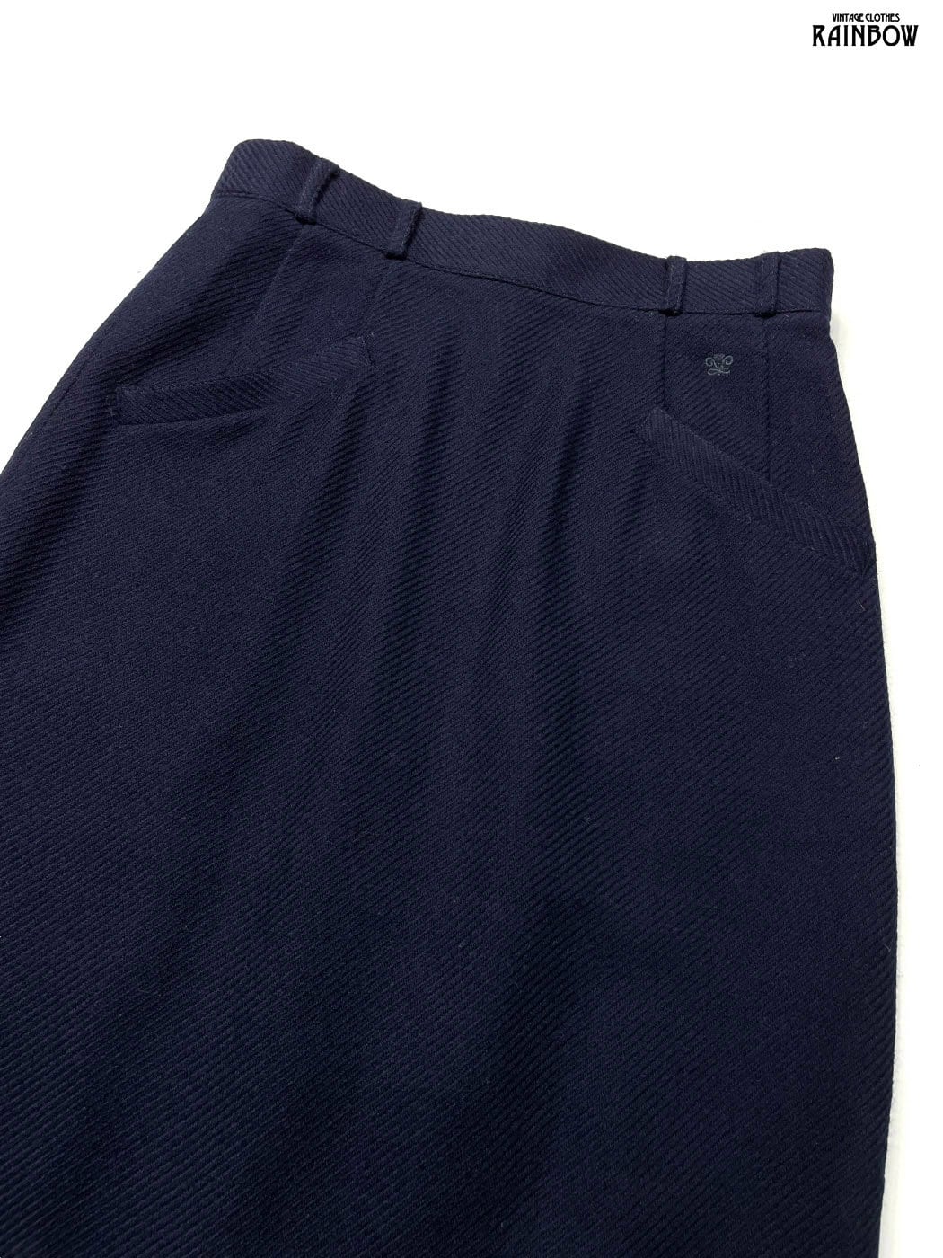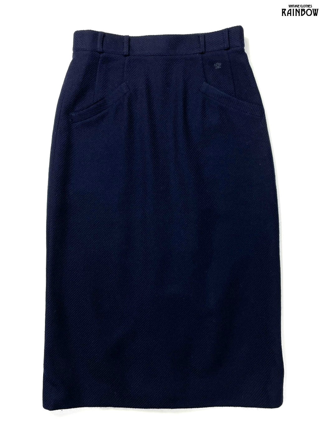 #スカート #膝丈 #タイト #紺 #無地 #刺繍 #スイス製 #シンプル #ウール #秋冬無地スカート