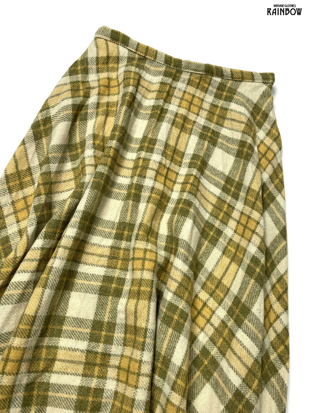 #スカート #ロング丈 #フレア #黄 #チェック柄 #TALONジップ #ウール #秋冬チェック柄スカート