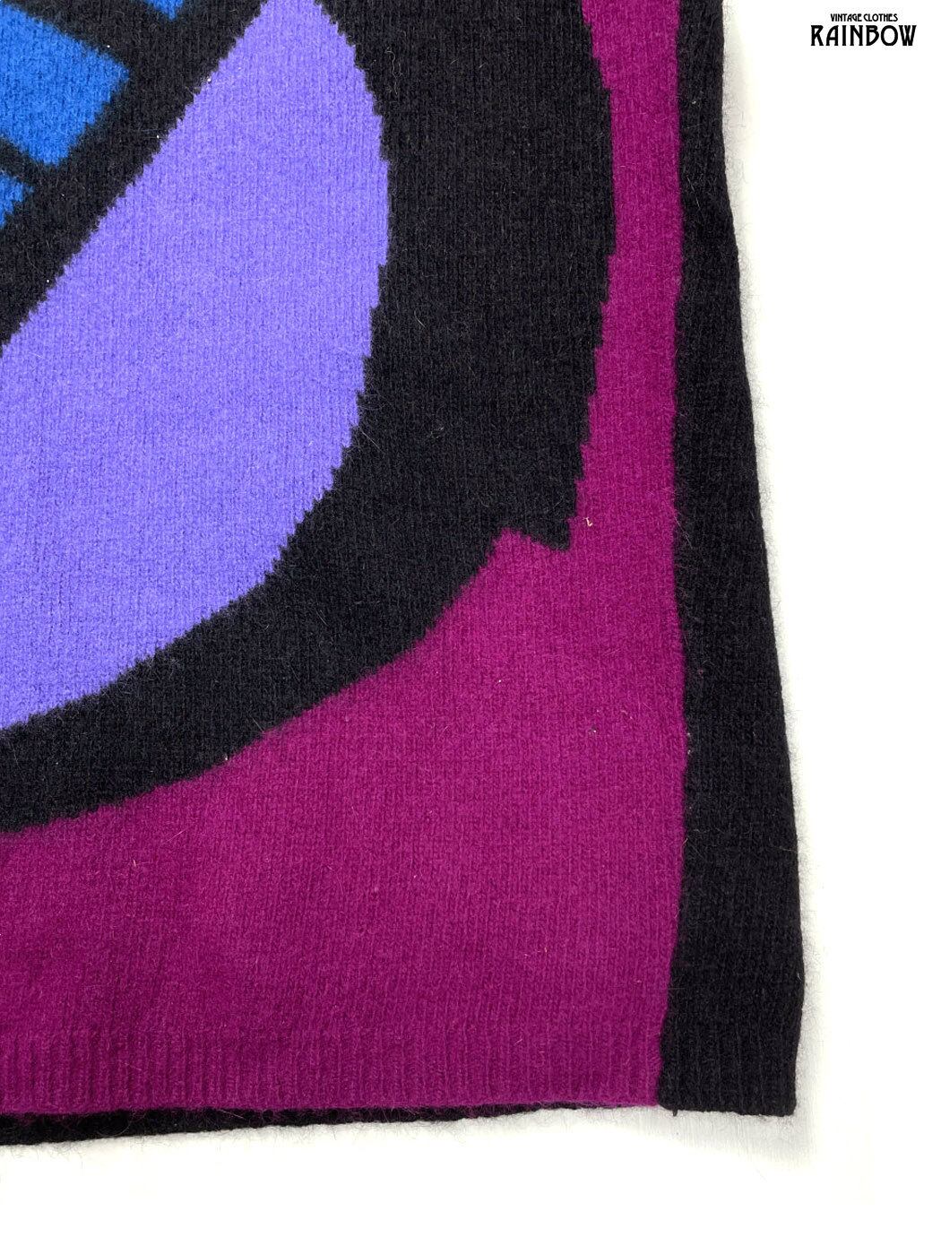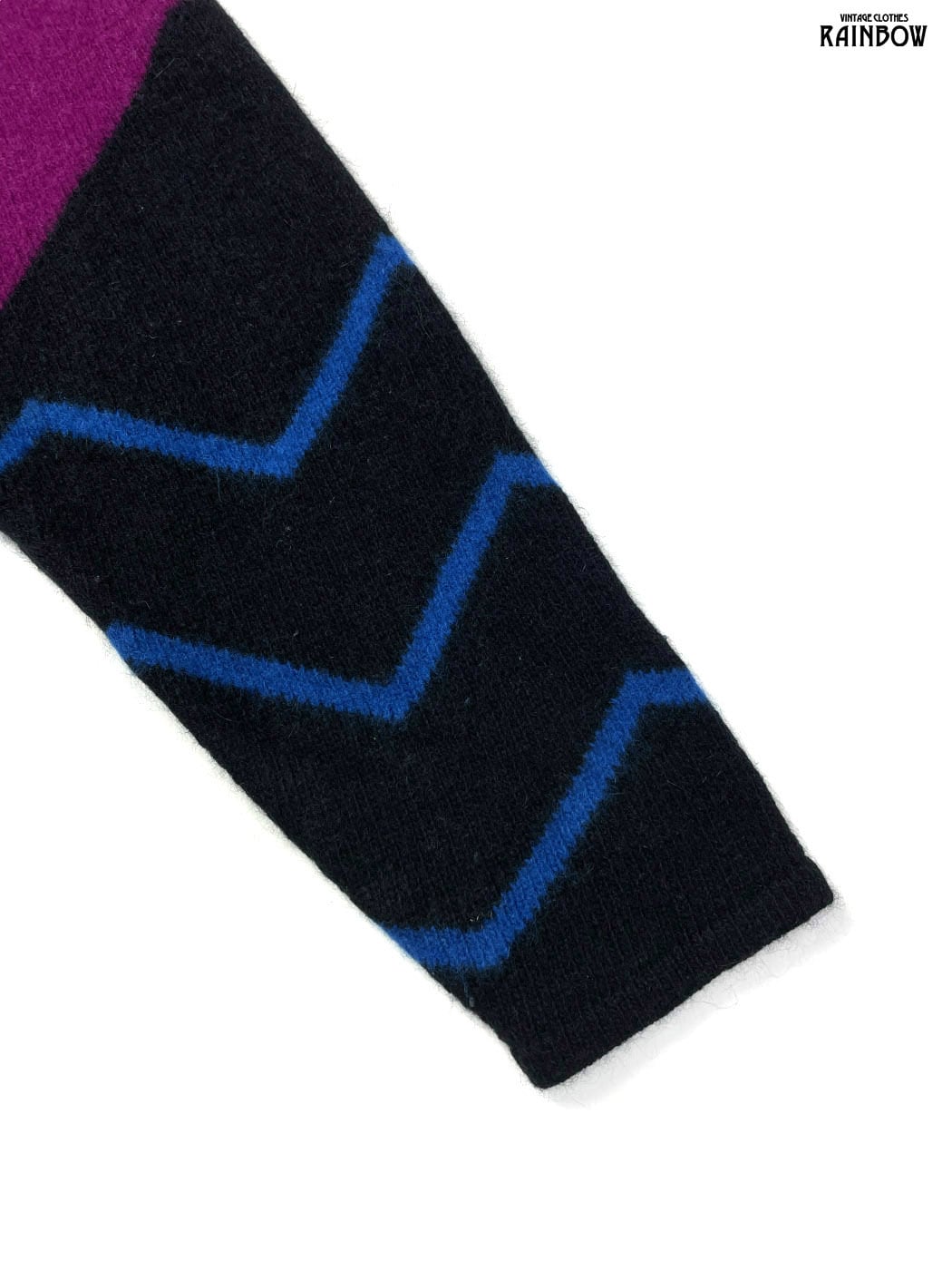 #ニット #セーター #ロングスリーブ #黒 #紫 #総柄 #ラムウール #柄セーター