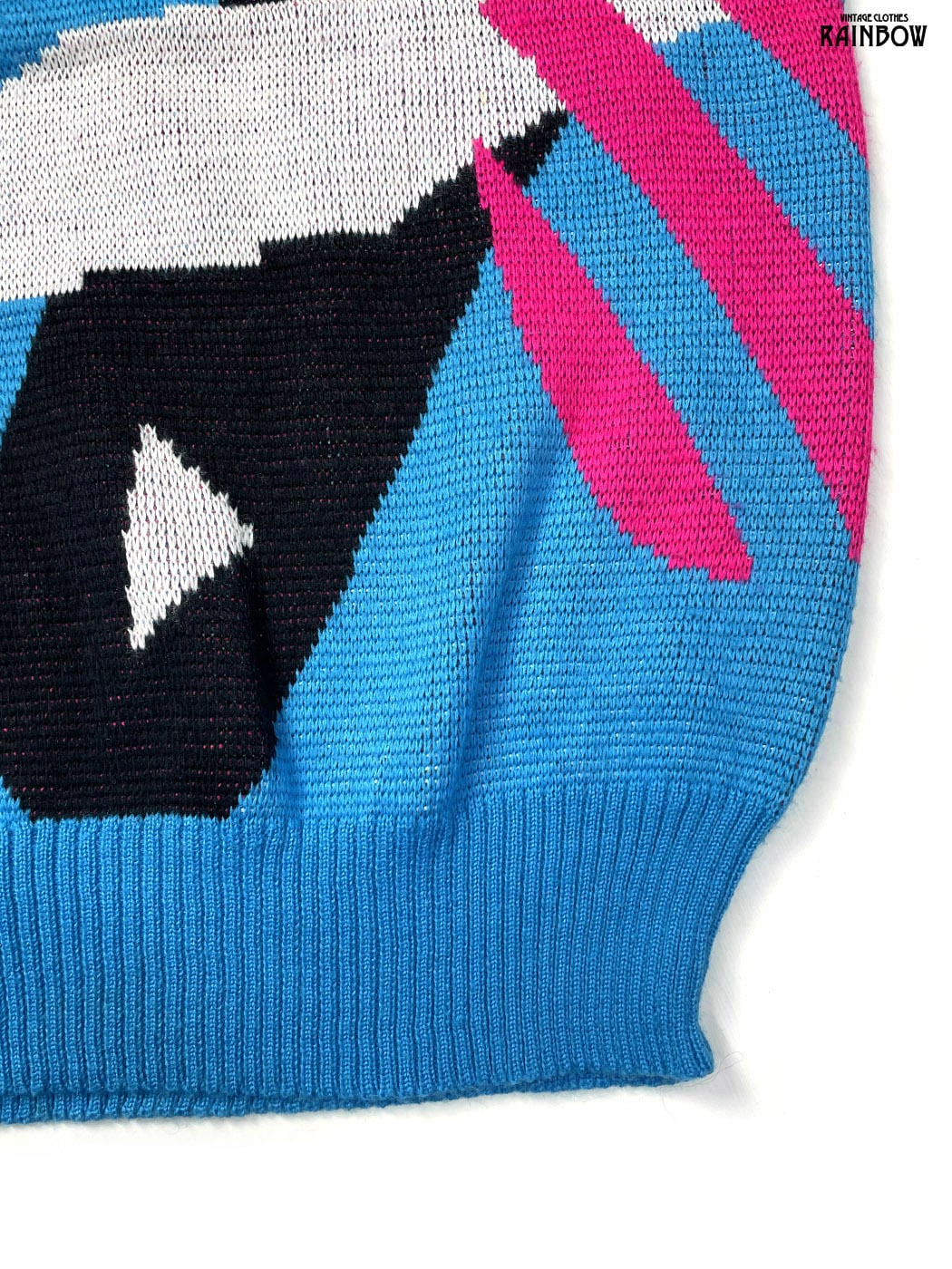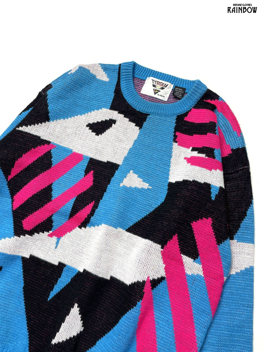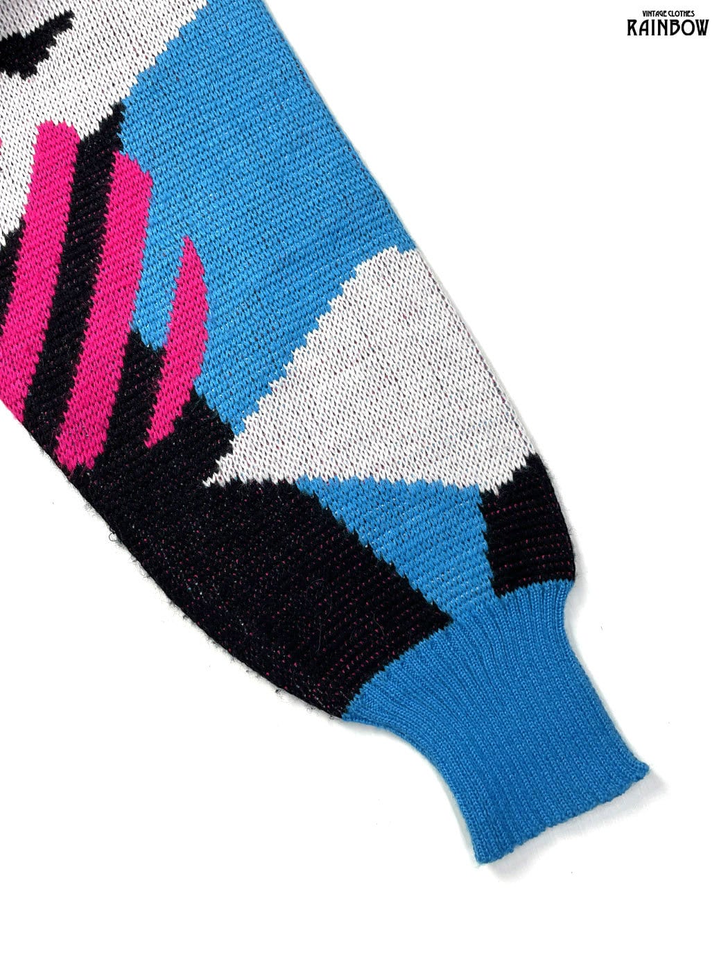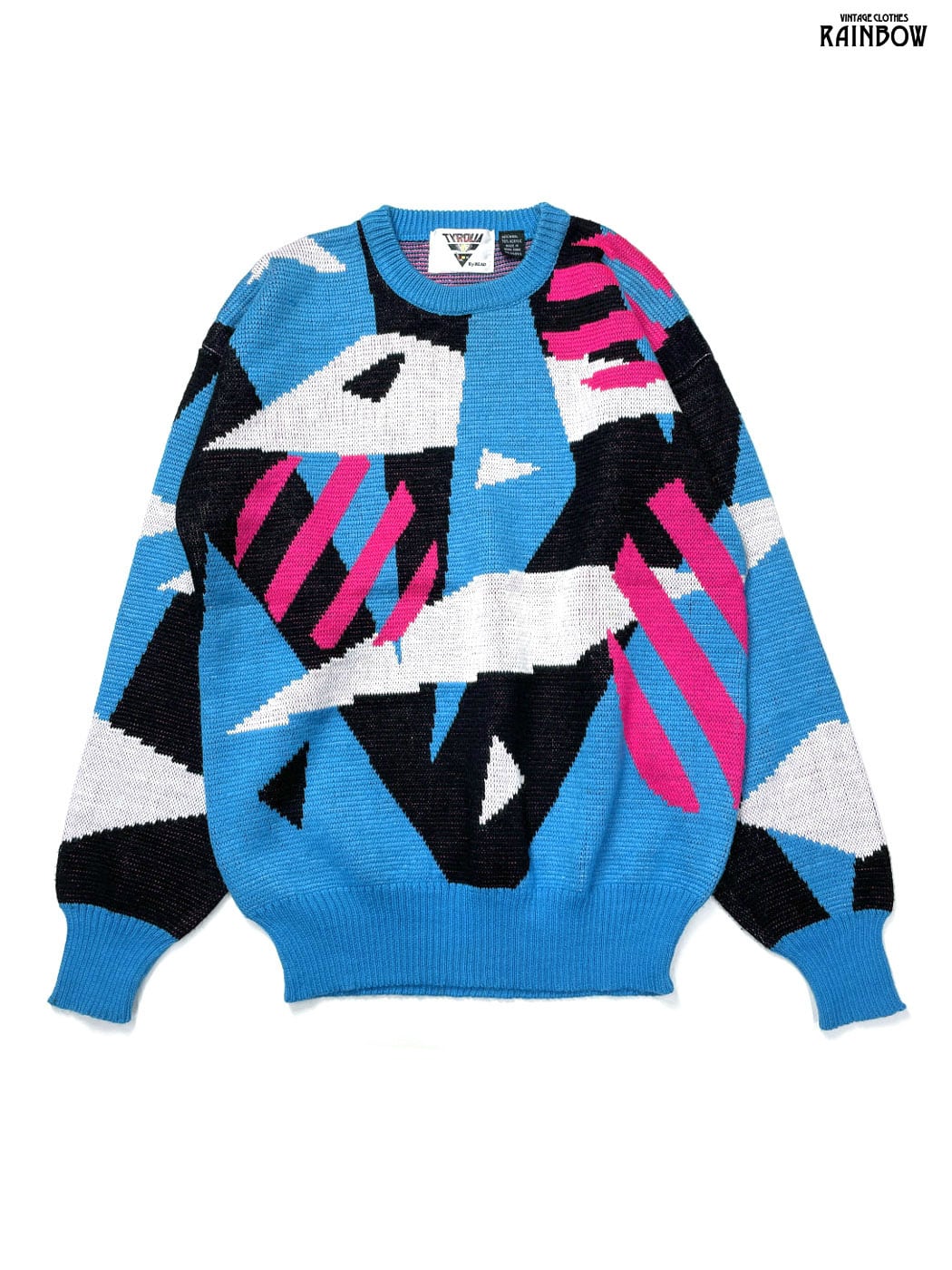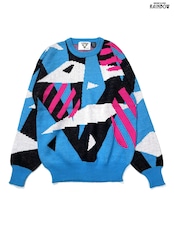 #ニット #セーター #ロングスリーブ #青 #総柄 #ニット地 #柄セーター