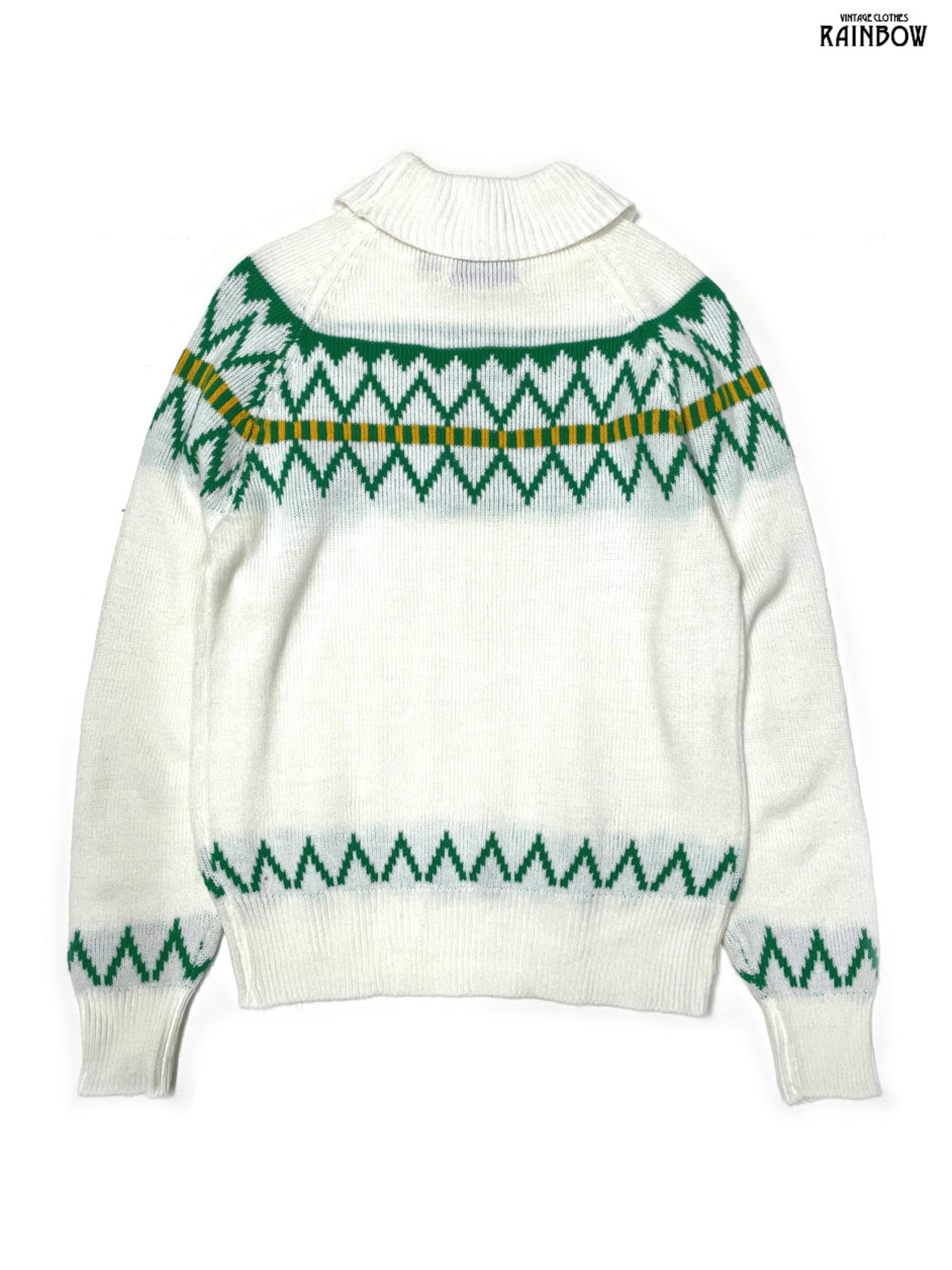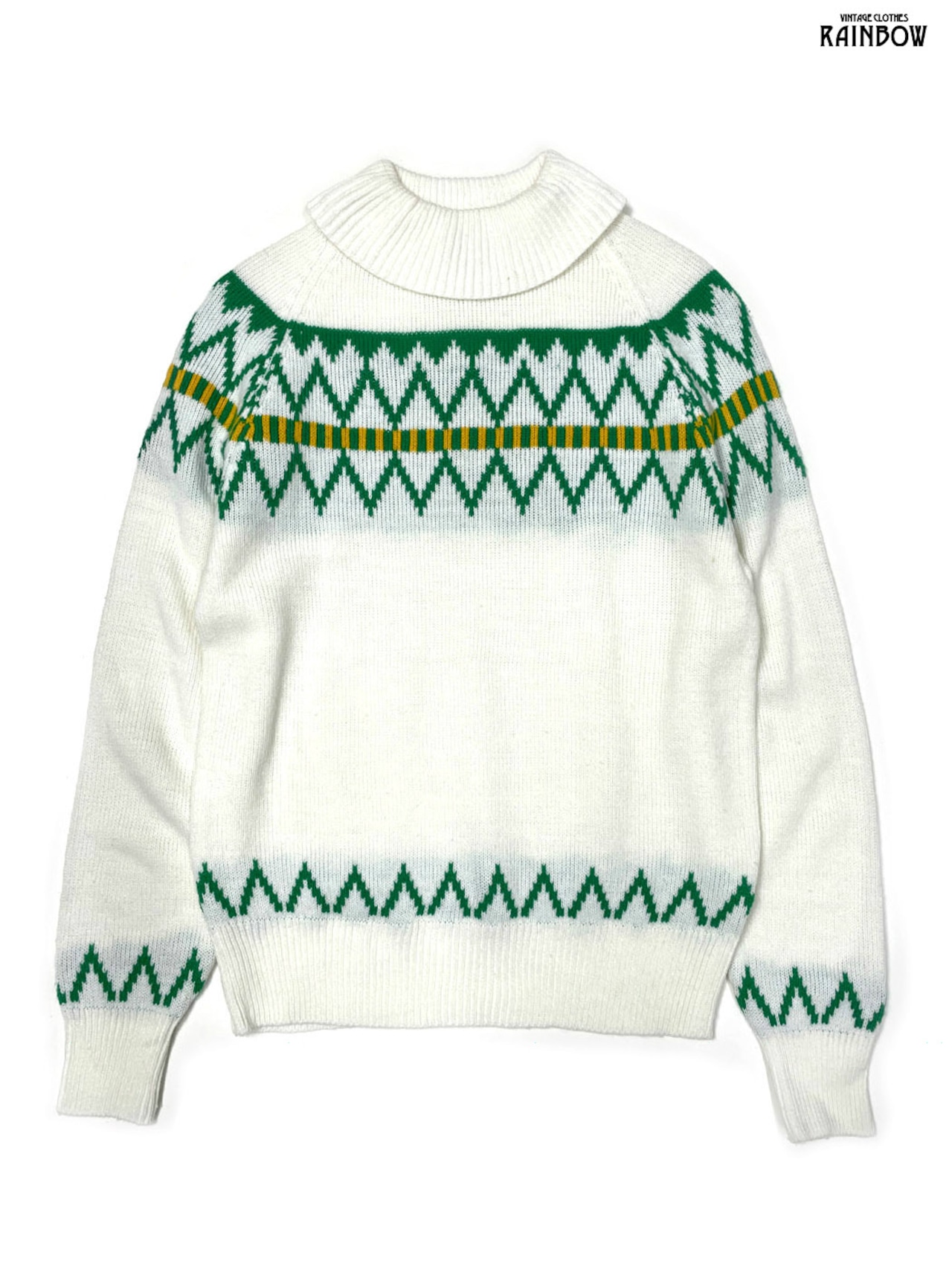 #ニット #セーター #ロングスリーブ #白 #総柄 #タートルネック #ニット地 #柄セーター