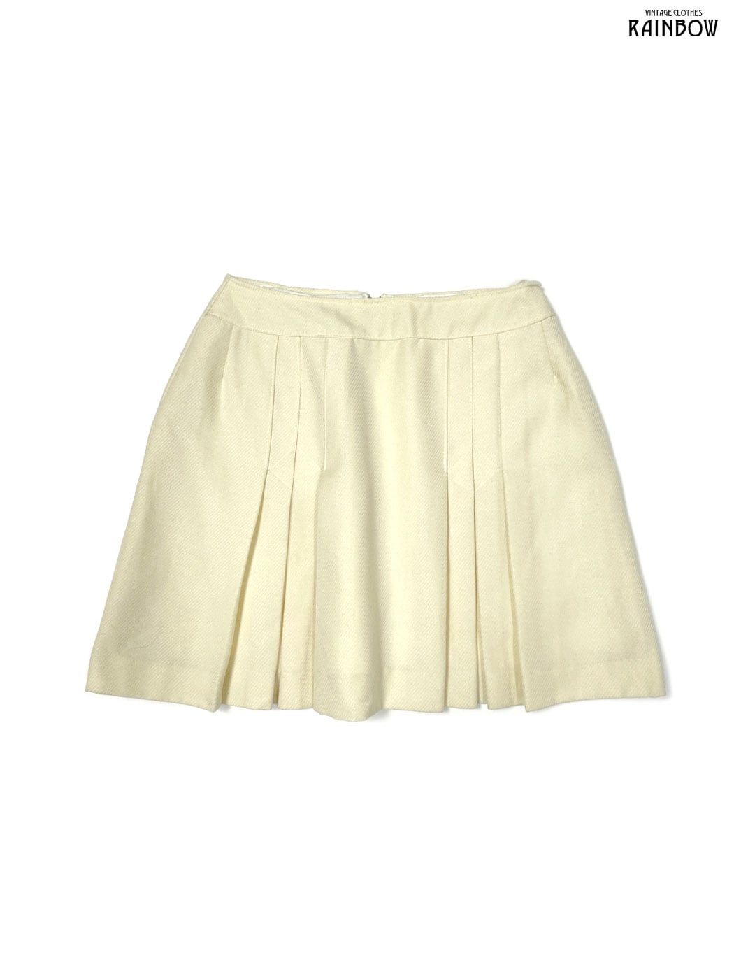 #スカート #ミニ丈 #プリーツ #黄 #生成り #無地 #ガーリー #ナチュラル #ウール #秋冬無地スカート
