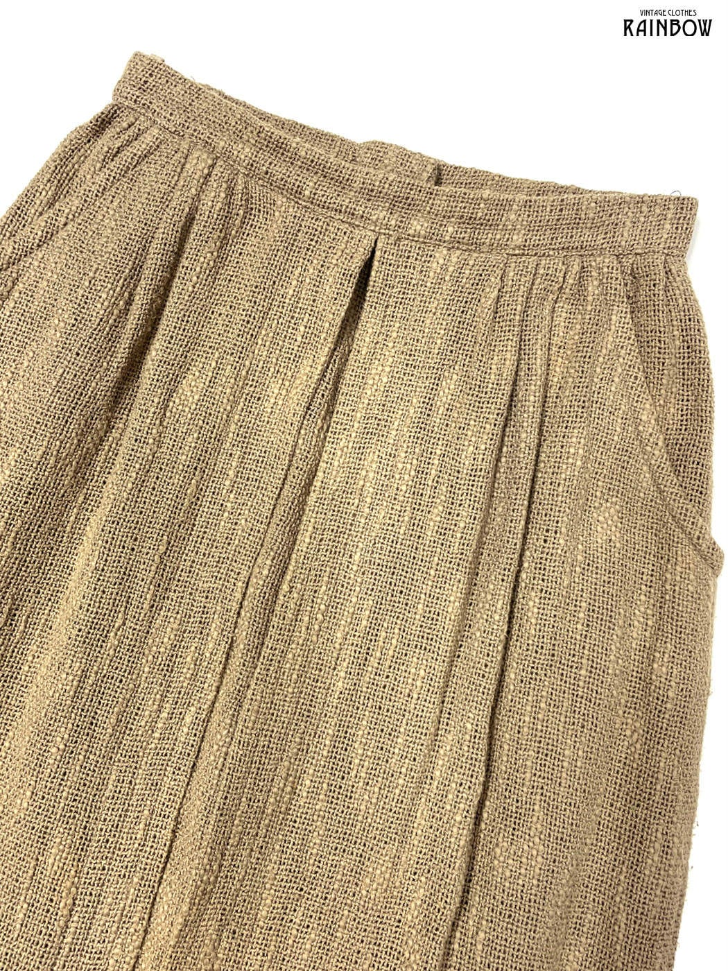 #スカート #膝丈 #ストレート #タイト #ベージュ #無地 #フランス製 #スリット #ナチュラル #コットン #無地スカート
