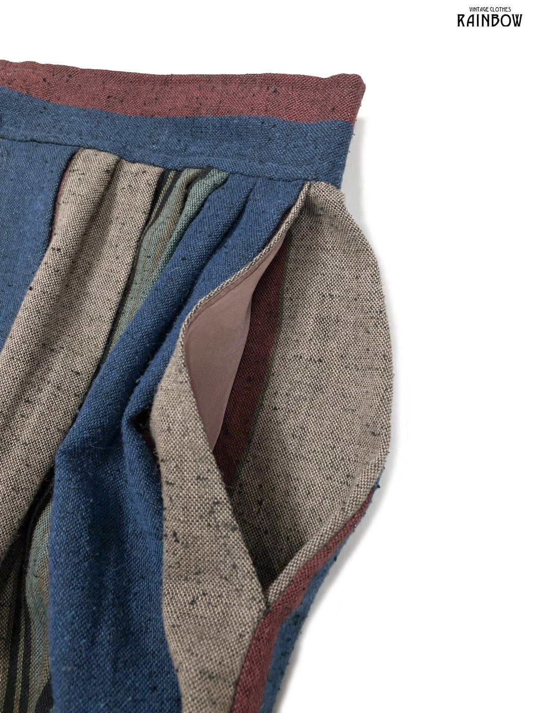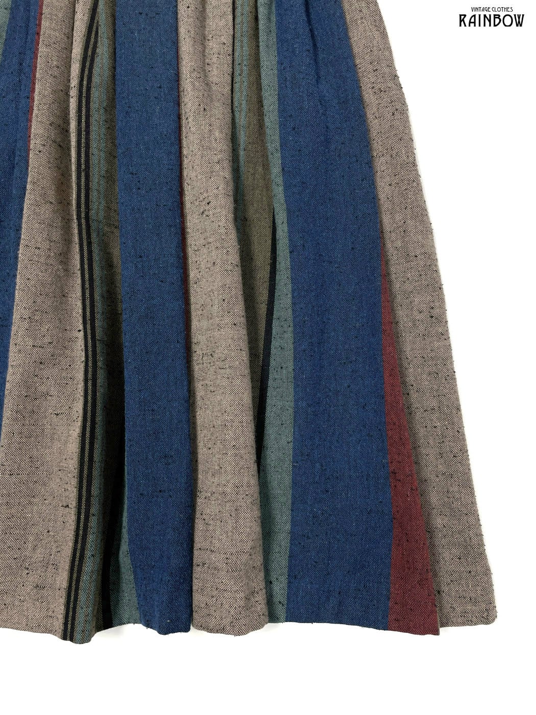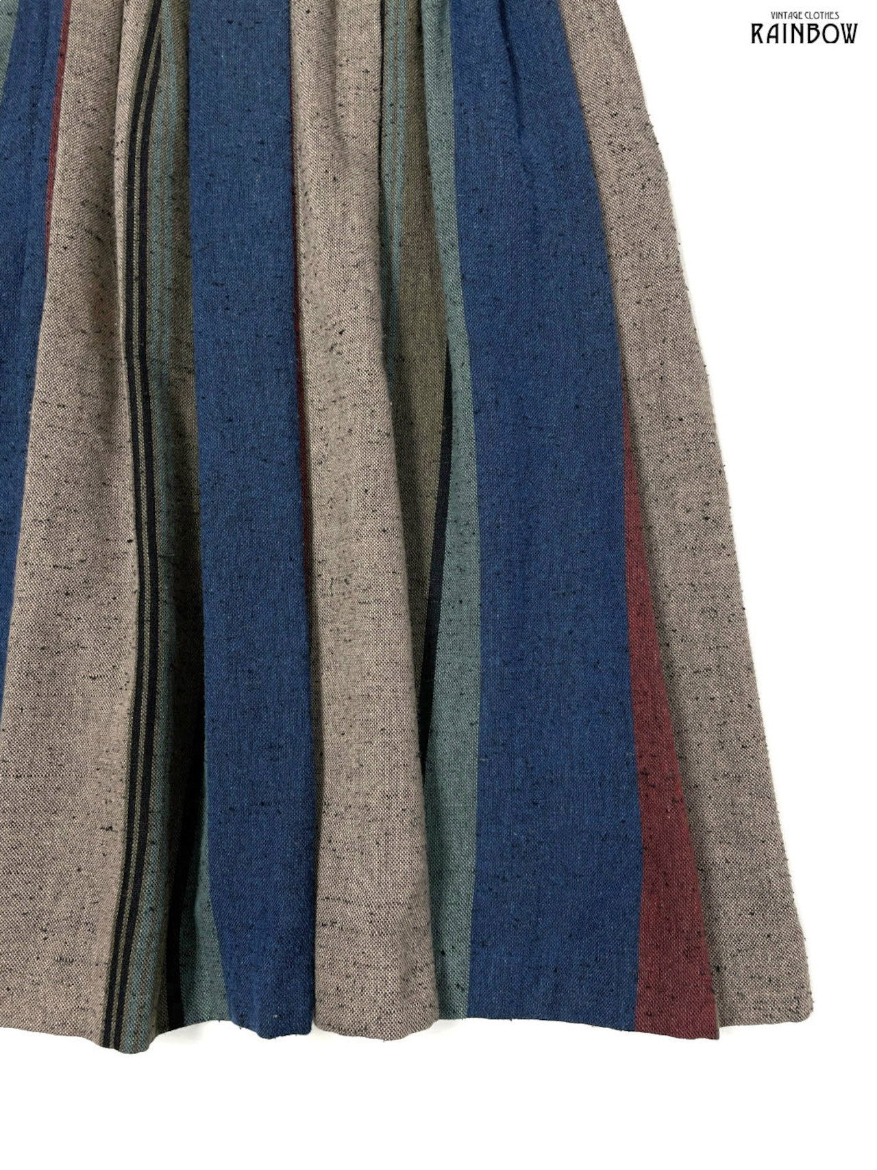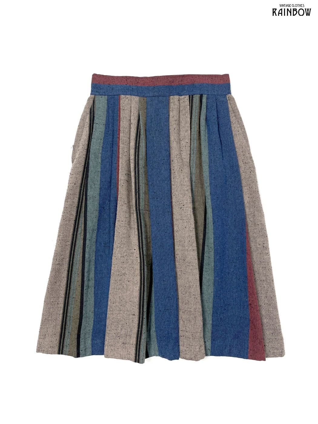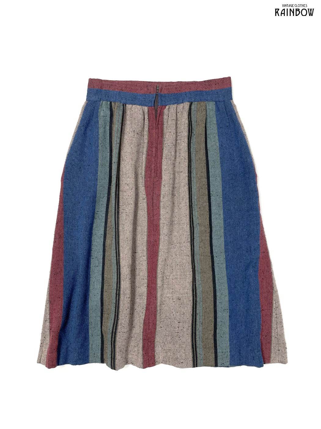 #スカート #膝丈 #フレア #赤 #青 #ベージュ #ストライプ柄 #アメリカ製 #ユニオンメイド #クラシック #ウール #柄スカート