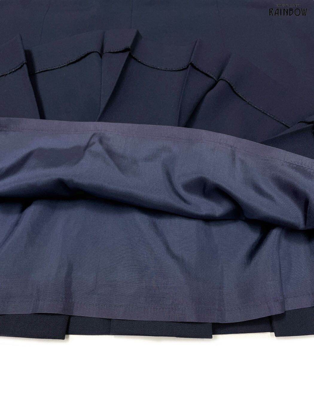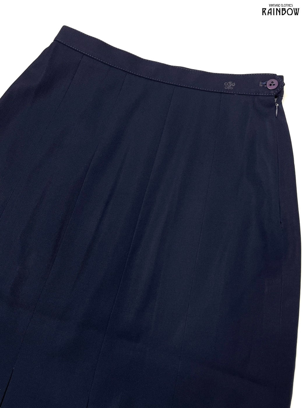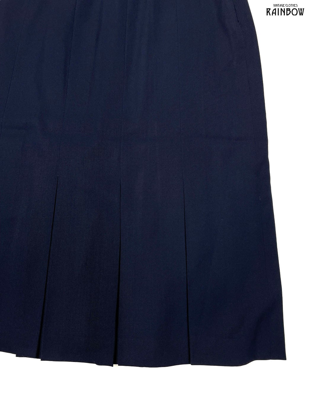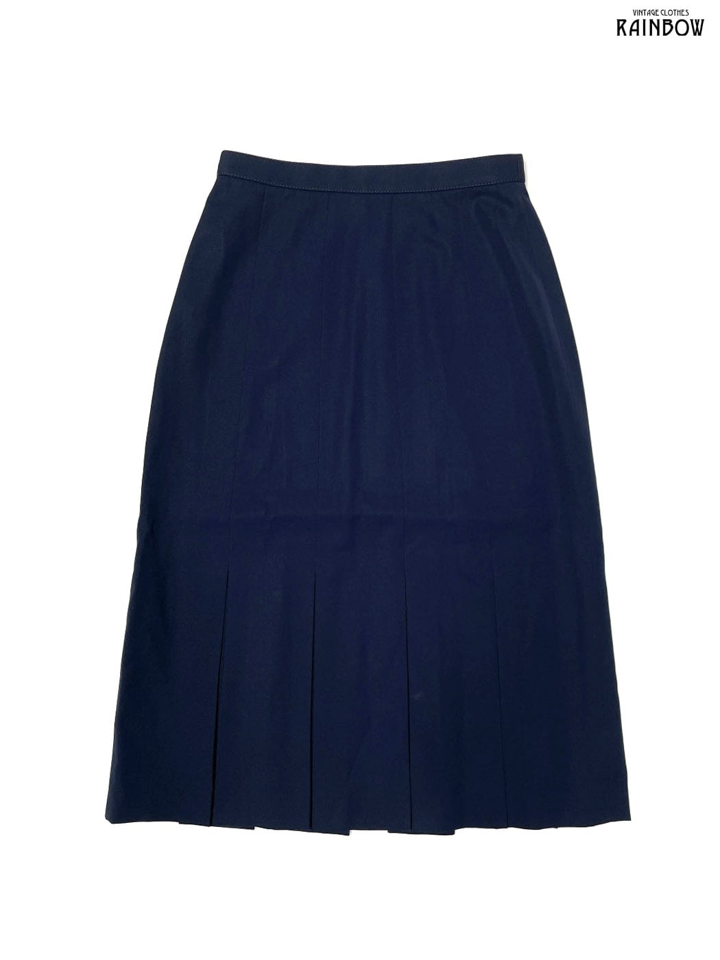#スカート #膝丈 #プリーツ #ストレート #紺 #無地 #ワンポイント #刺繍 #スイス製 #シック #ウール #無地スカート