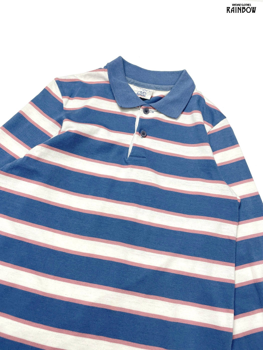 #トップス #ポロシャツ #ロングスリーブ #青 #ボーダー柄 #カナダ製 #カットソー地 #長袖ポロシャツ