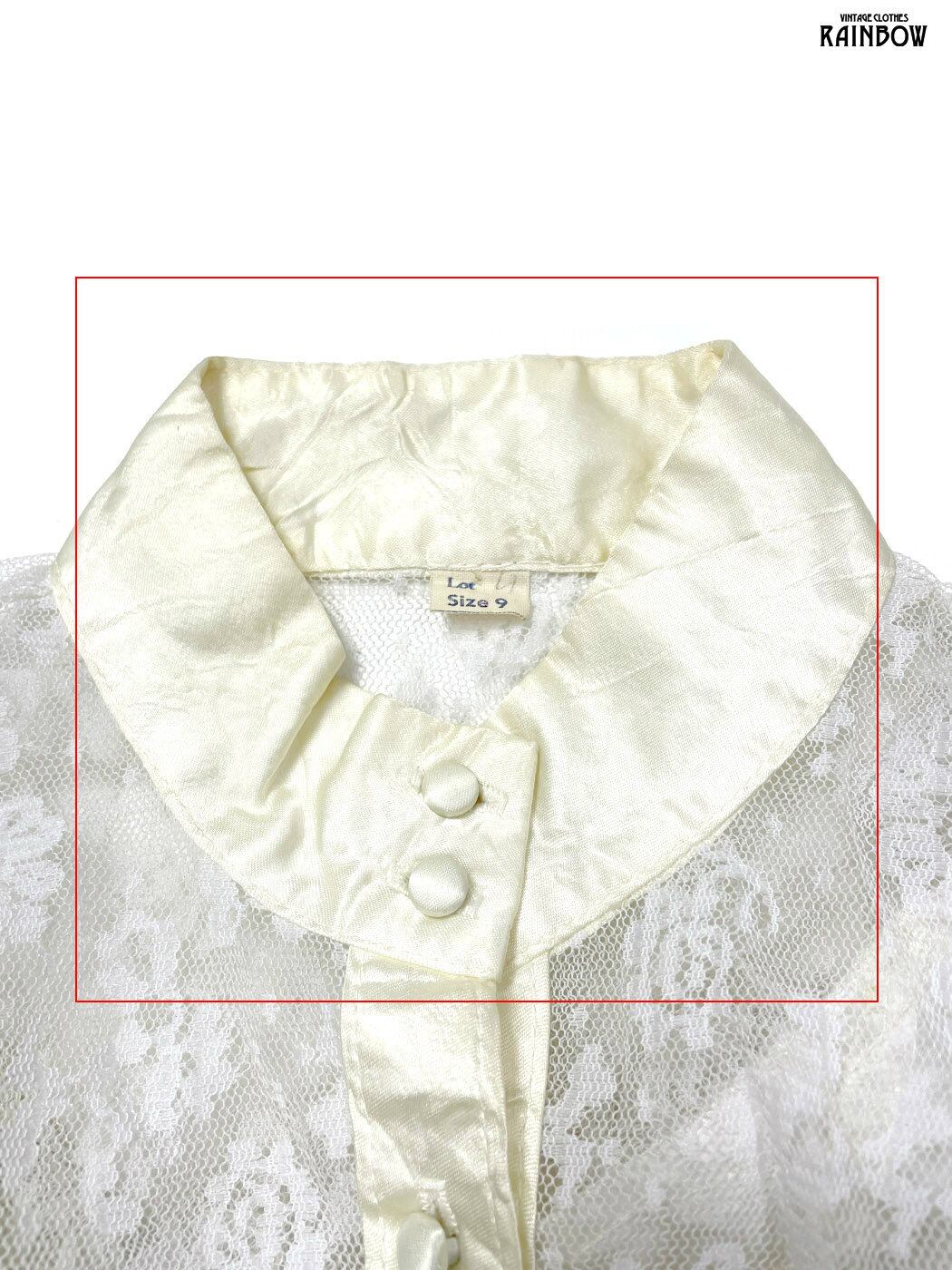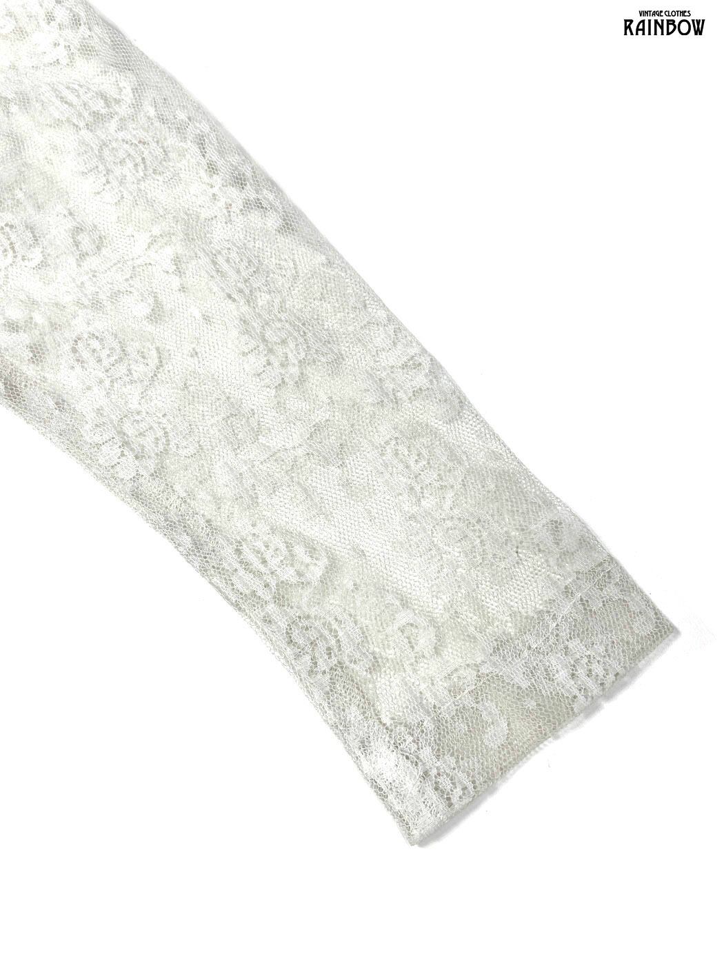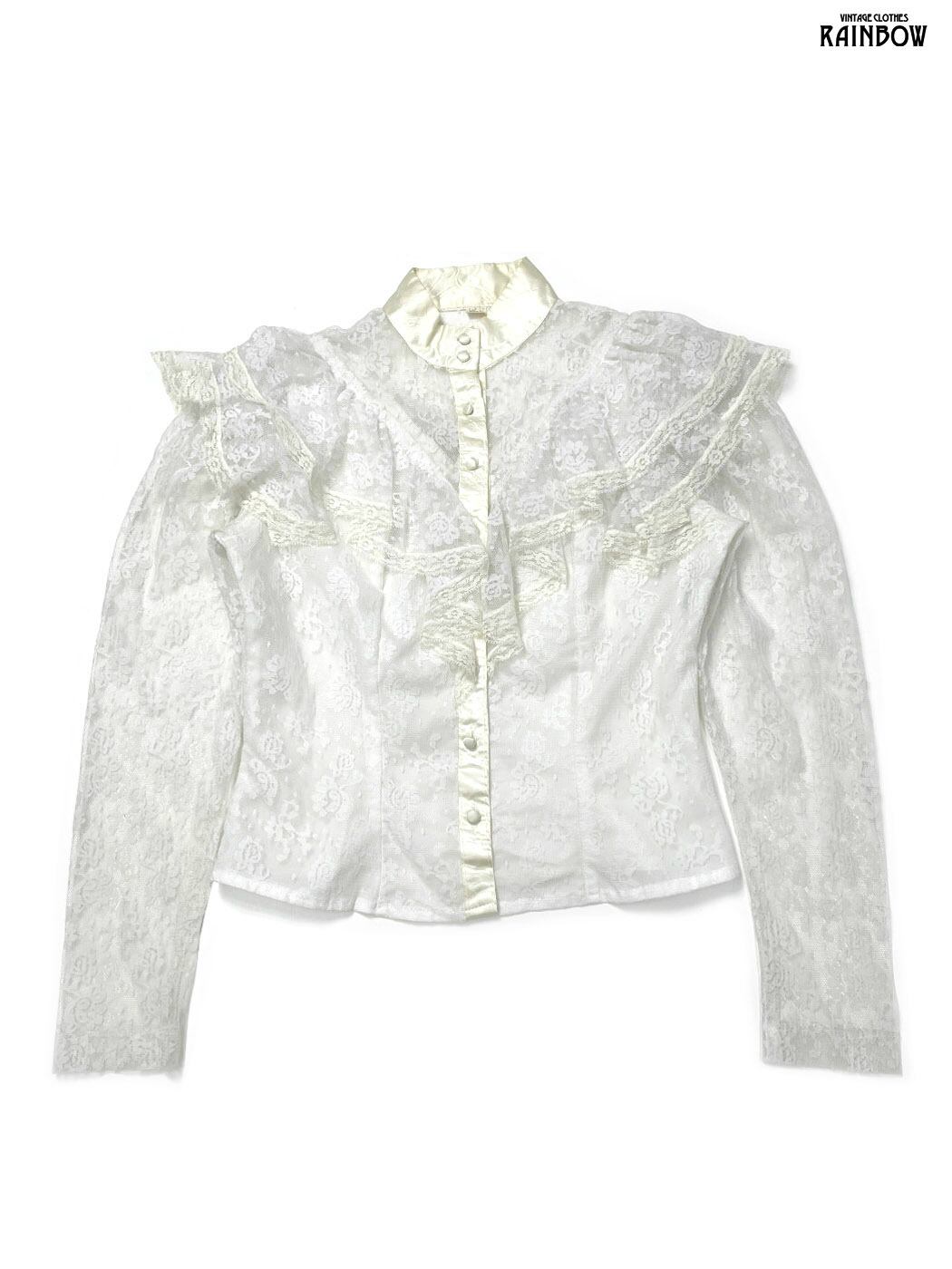 古着 無地 総レース 長袖 ブラウス 白 (ttu2601011)