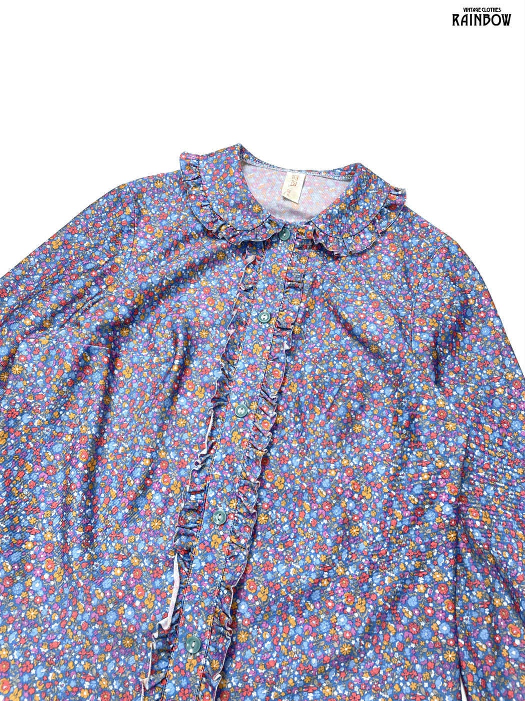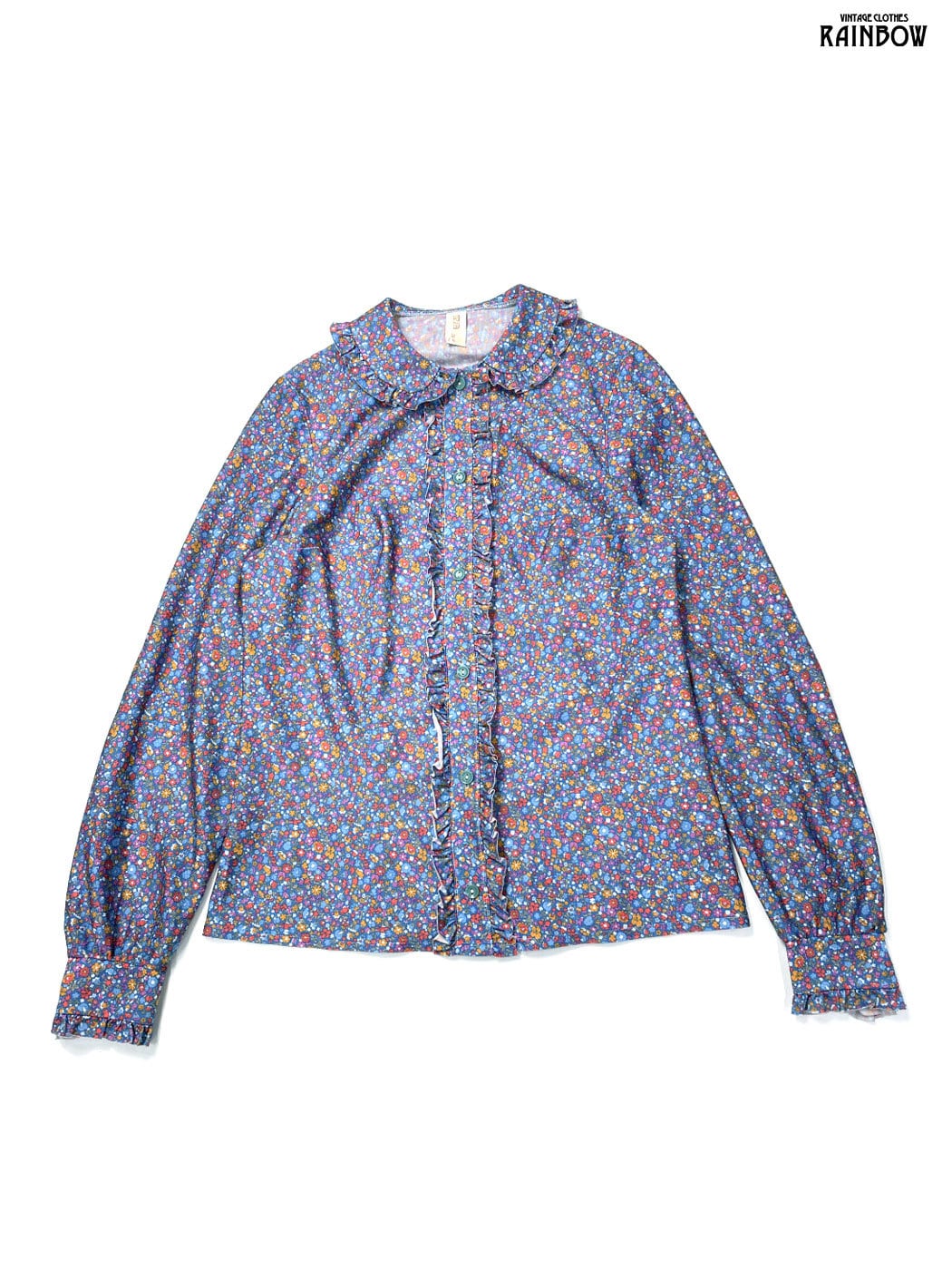 #ブラウス #bブラウス #ロングスリーブ #青 #紫 #花柄 #フリル #柄シャツ
