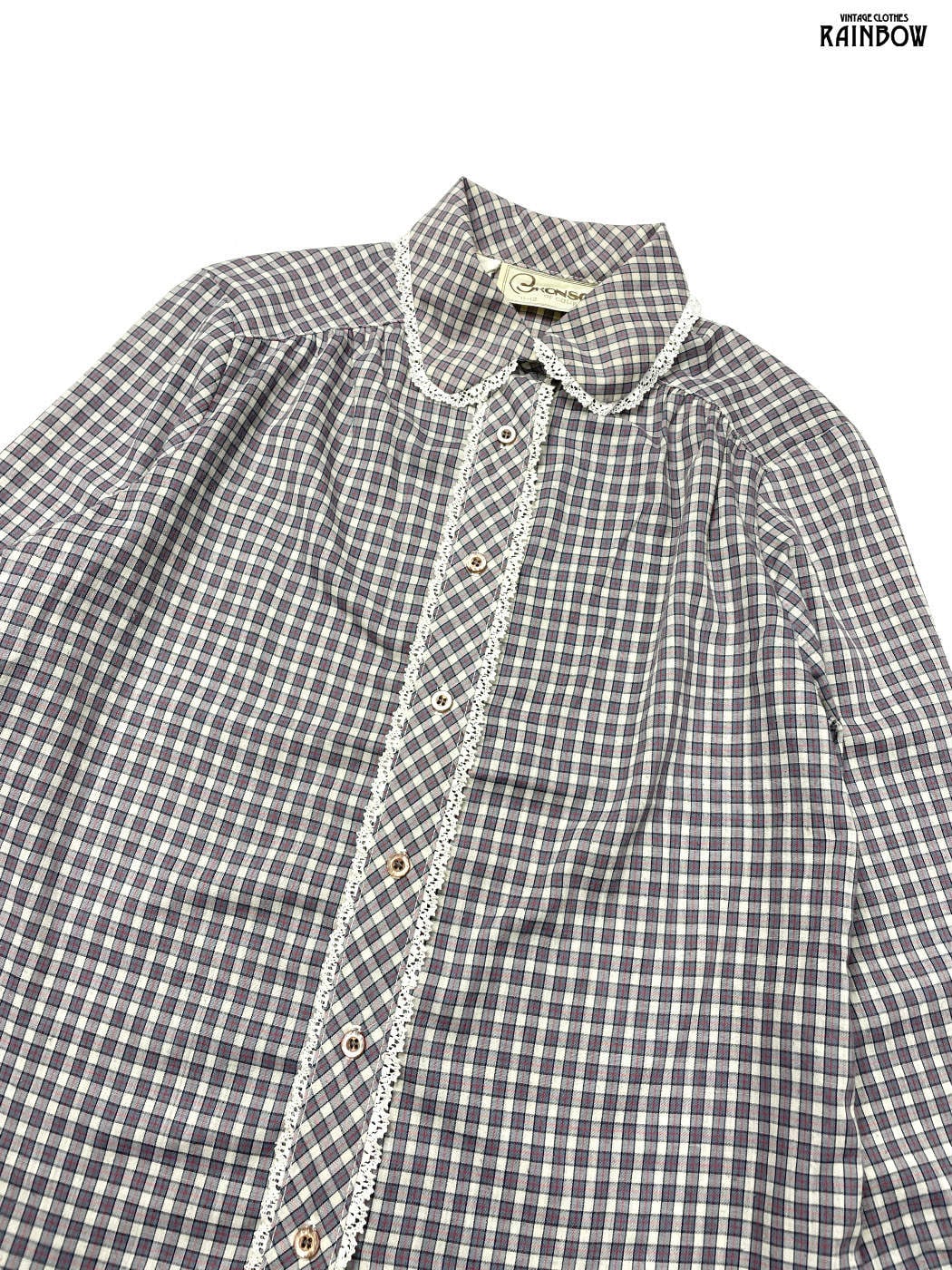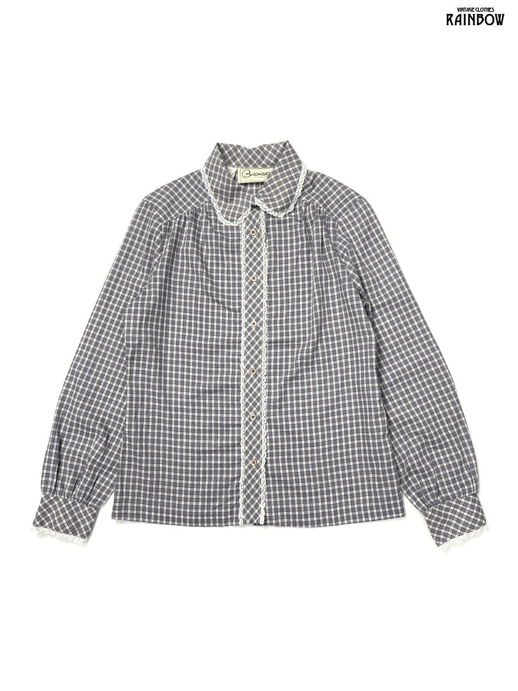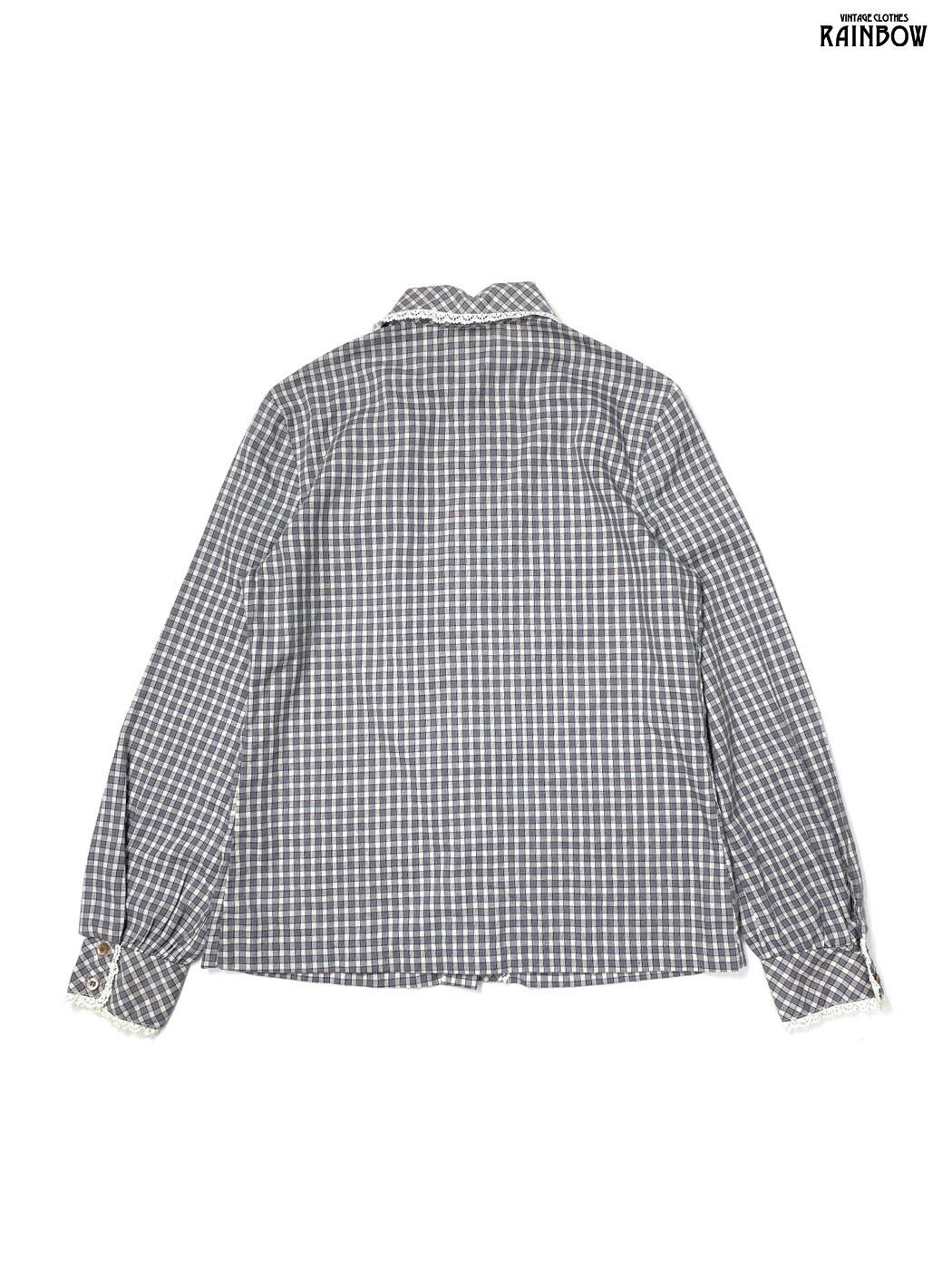 #ブラウス #bブラウス #ロングスリーブ #グレー #チェック柄 #レース #ガーリー #コットン #レースシャツ