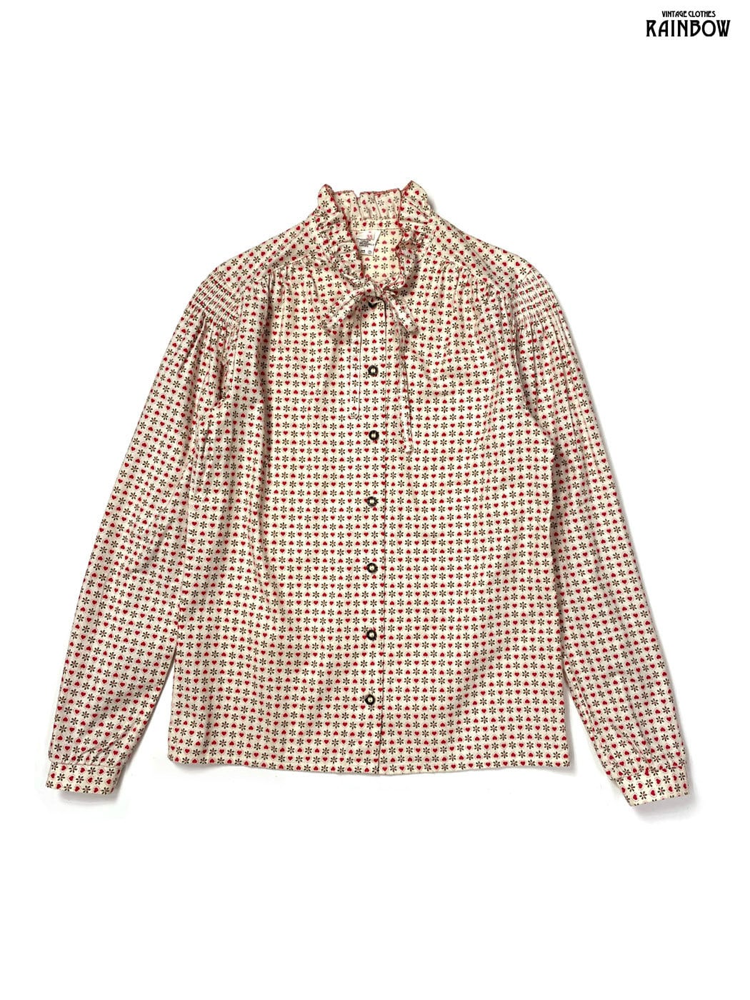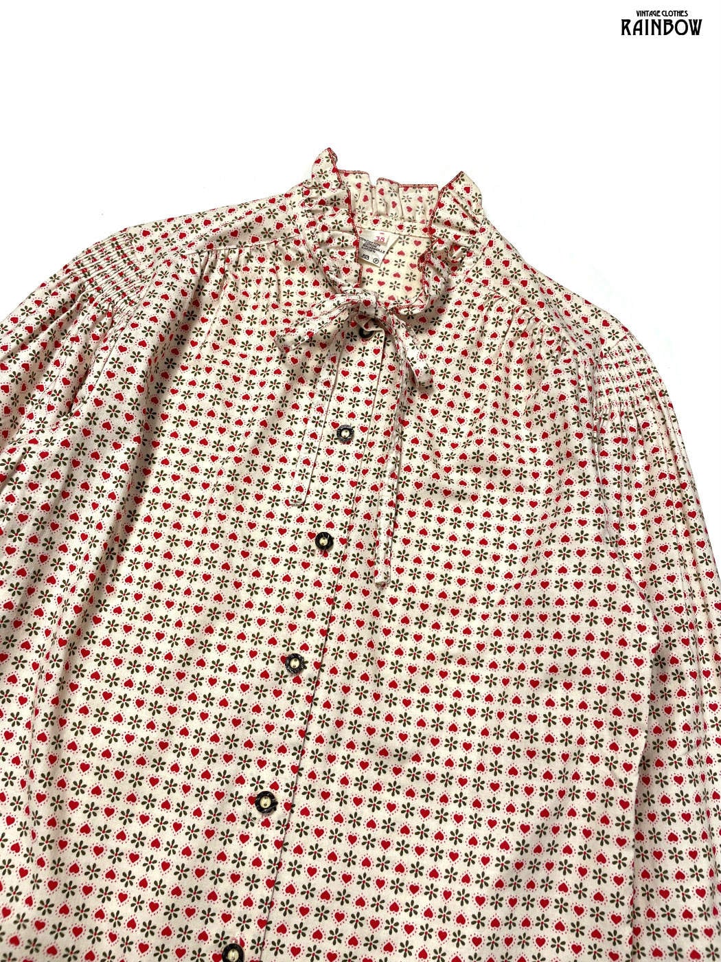 #ブラウス #bブラウス #ロングスリーブ #赤 #花柄 #ハート柄 #フリル #リボン #ガーリー #コットン #柄シャツ