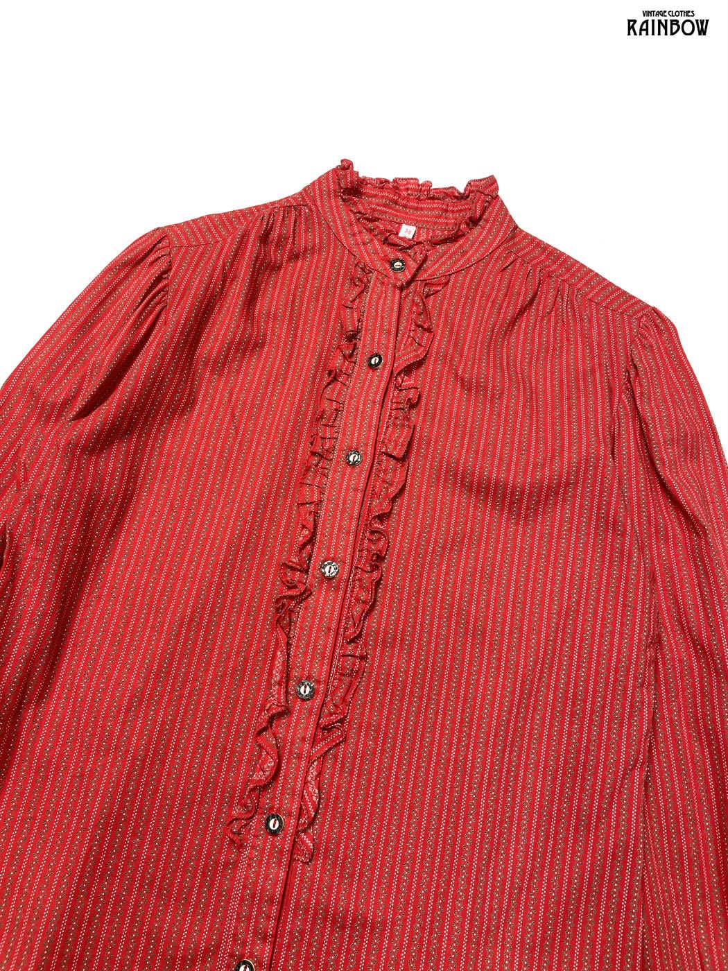 #ブラウス #bブラウス #ロングスリーブ #赤 #総柄 #フリル #ガーリー #コットン #柄シャツ