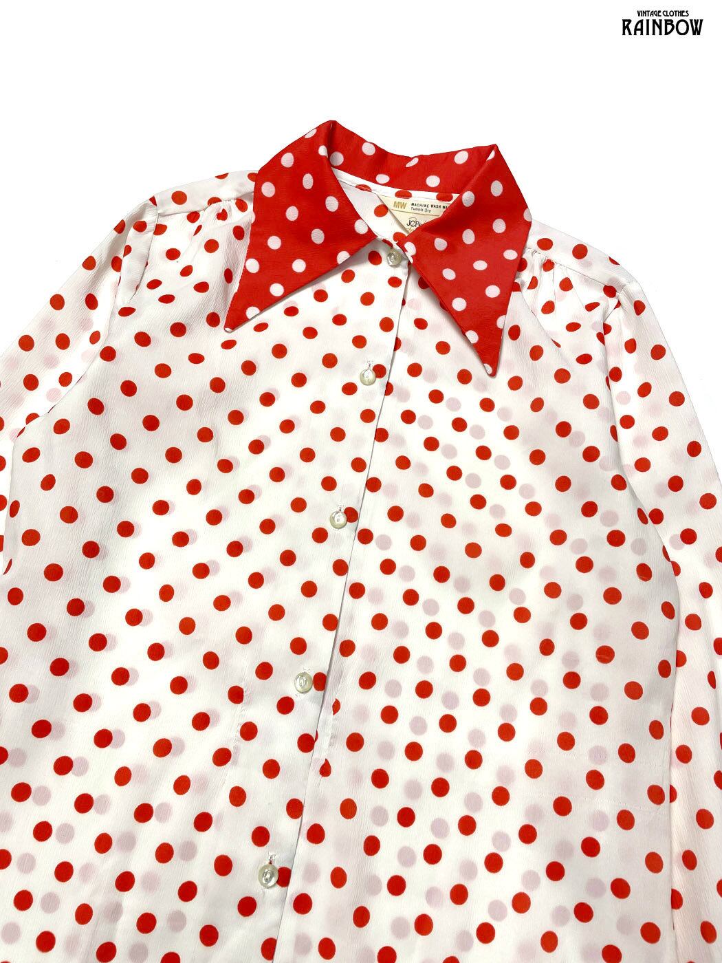 #ブラウス #シャツ #ロングスリーブ #赤 #ドット柄 #ガーリー #柄シャツ