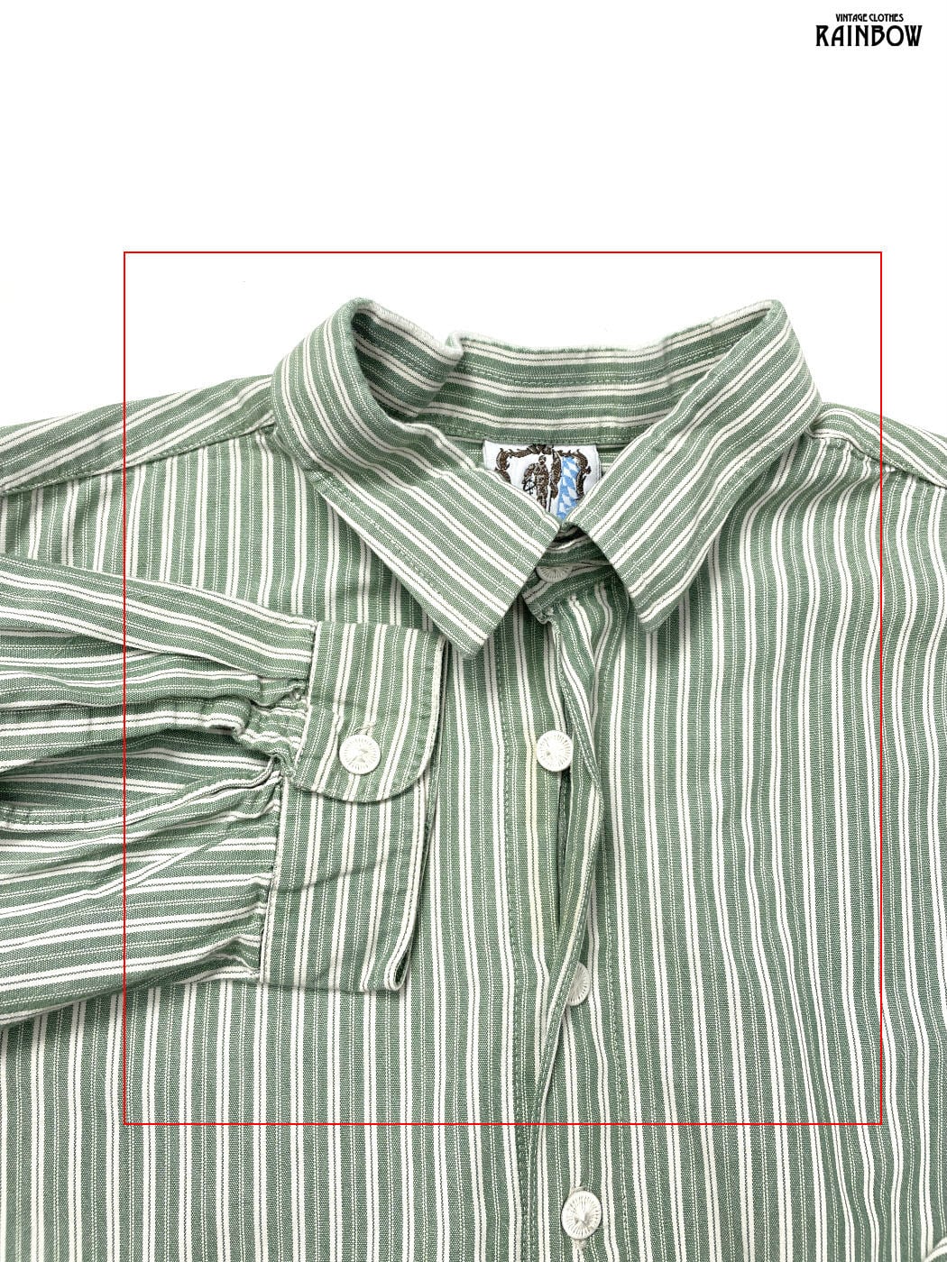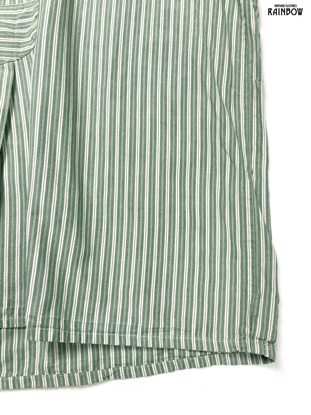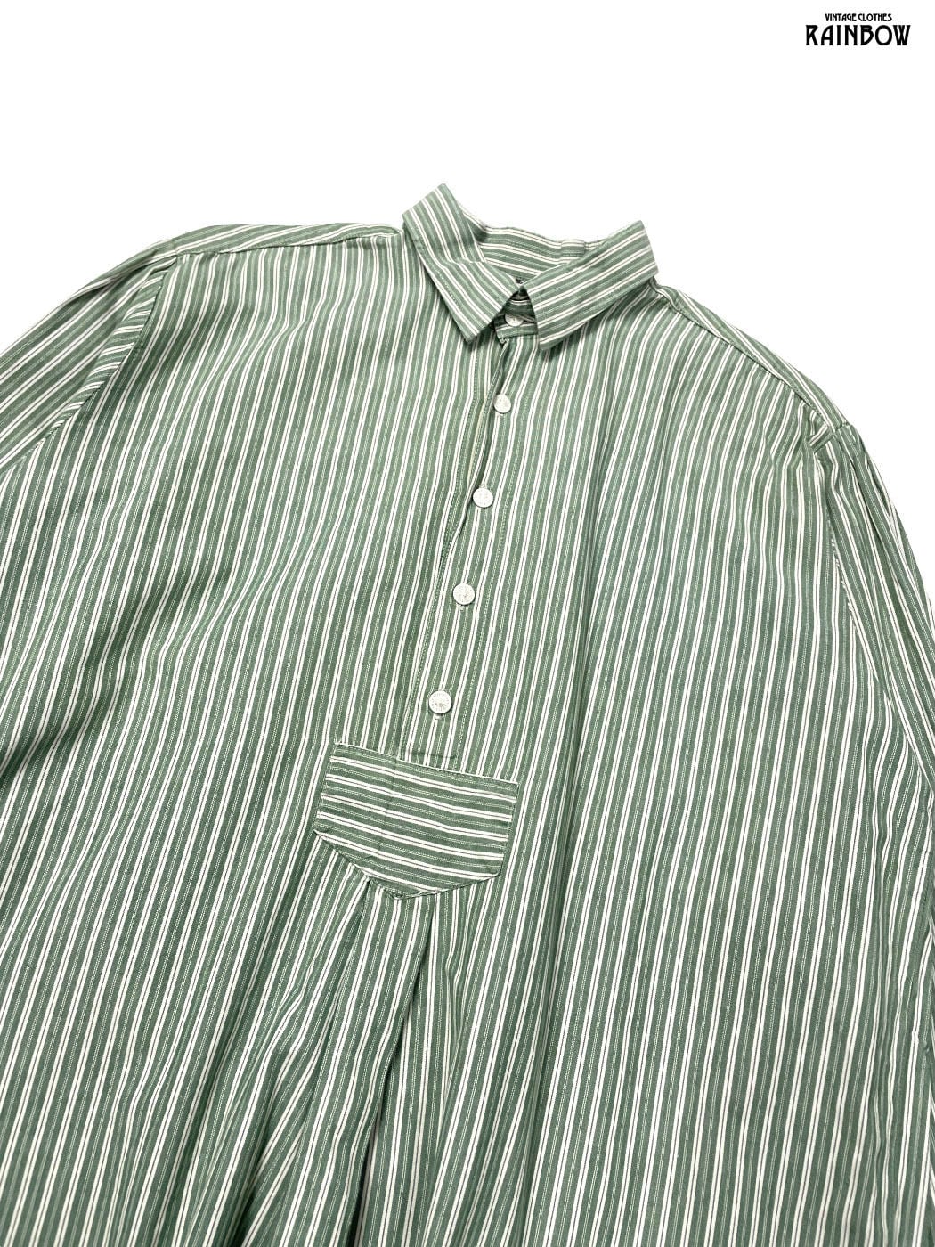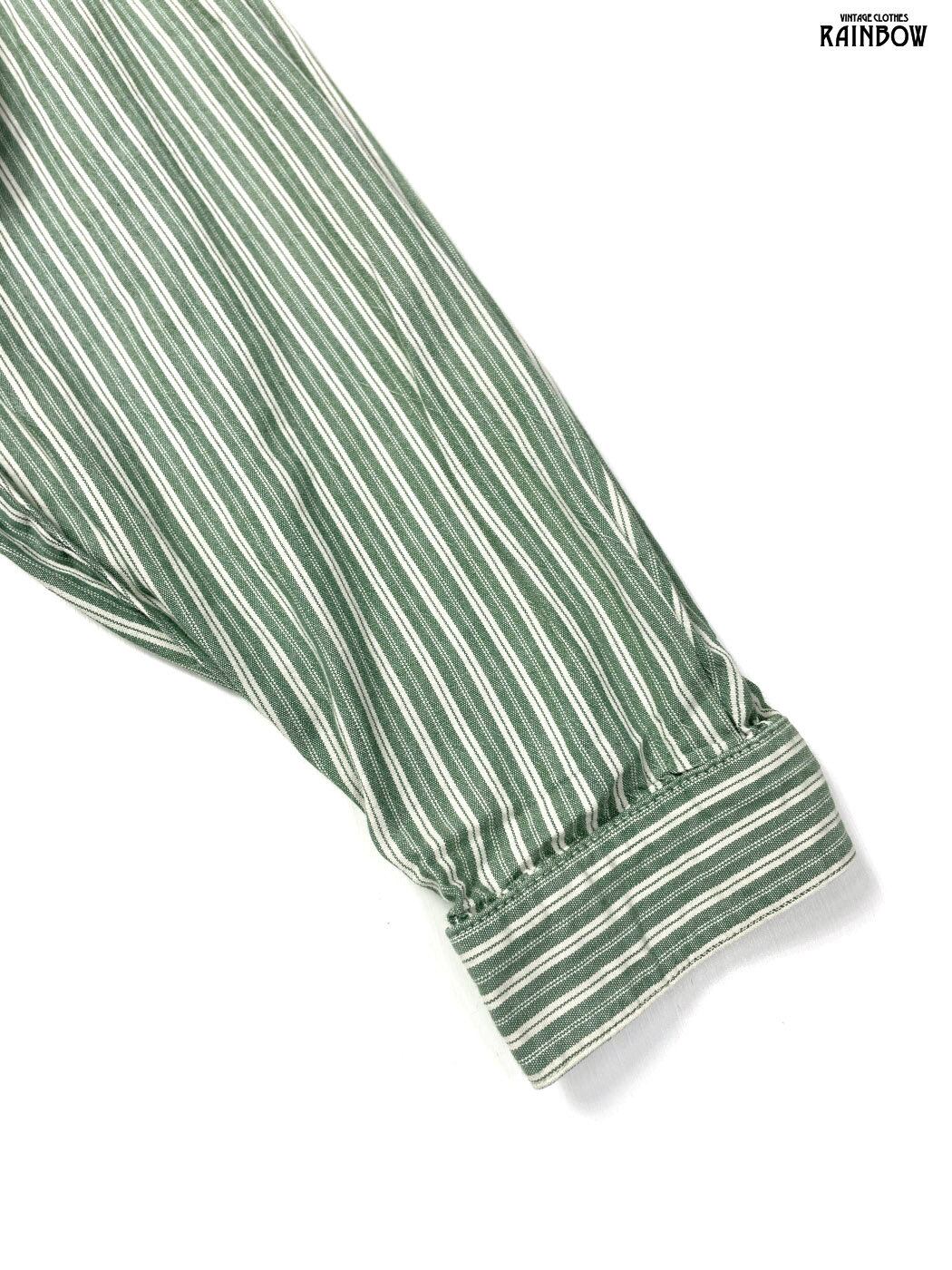 #ブラウス #シャツ #ロングスリーブ #緑 #ストライプ柄 #コットン #ストライプ柄シャツ