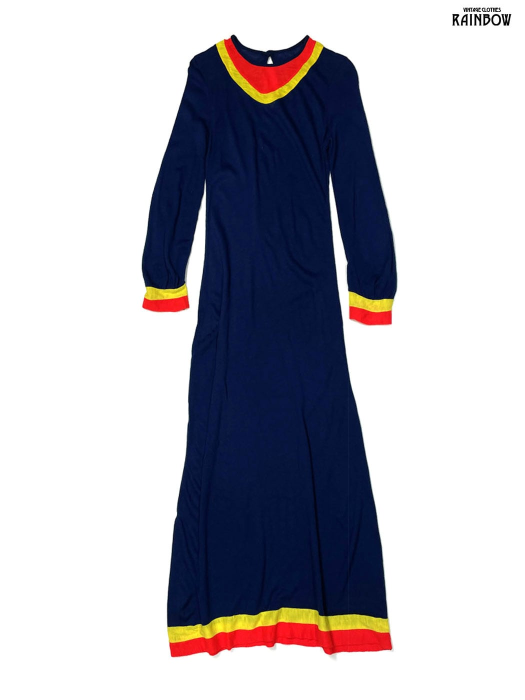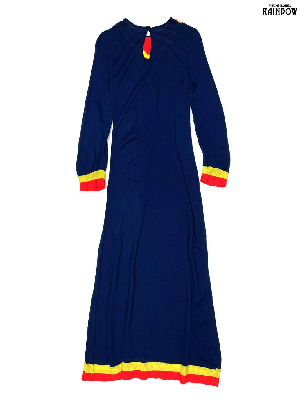 古着 無地 ウール ロング丈 長袖 ワンピース 紺 (otu2601001)